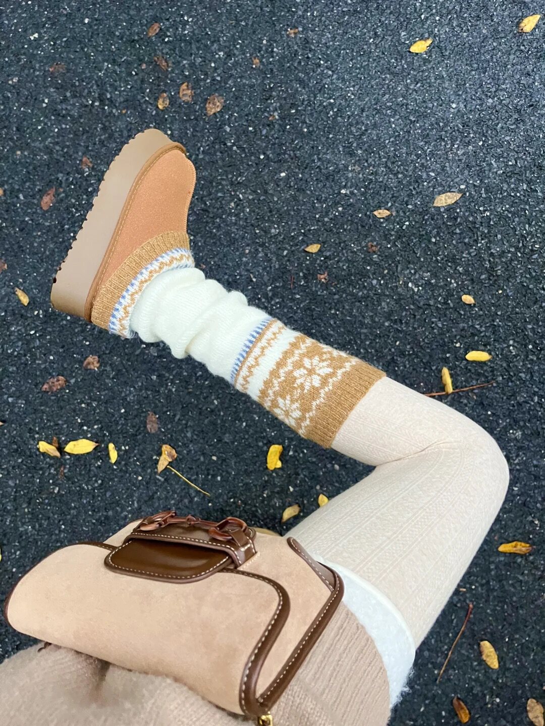Fair Isle Retro Wool Leg Warmers Autumn and Winter Nordic Style Snowflake Slouch Socks Thick Knit Leg Warmers Warm Calf Socks