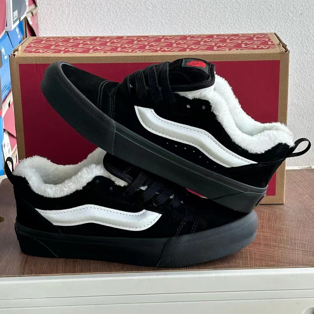 Kun skool classic black and white velvet thickened warm bread shoes suede couple men's shoes women's shoes