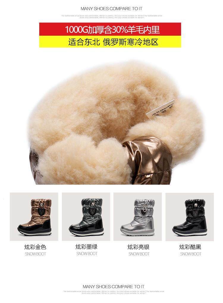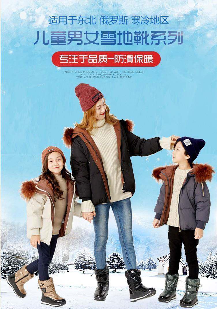 Minus 40 Degrees Northeast Children's Snow Boots for Boys and Girls, Wool Thickened, Non-Slip, Cold-Resistant, Warm, Large Size Parent-Child Cotton Shoes