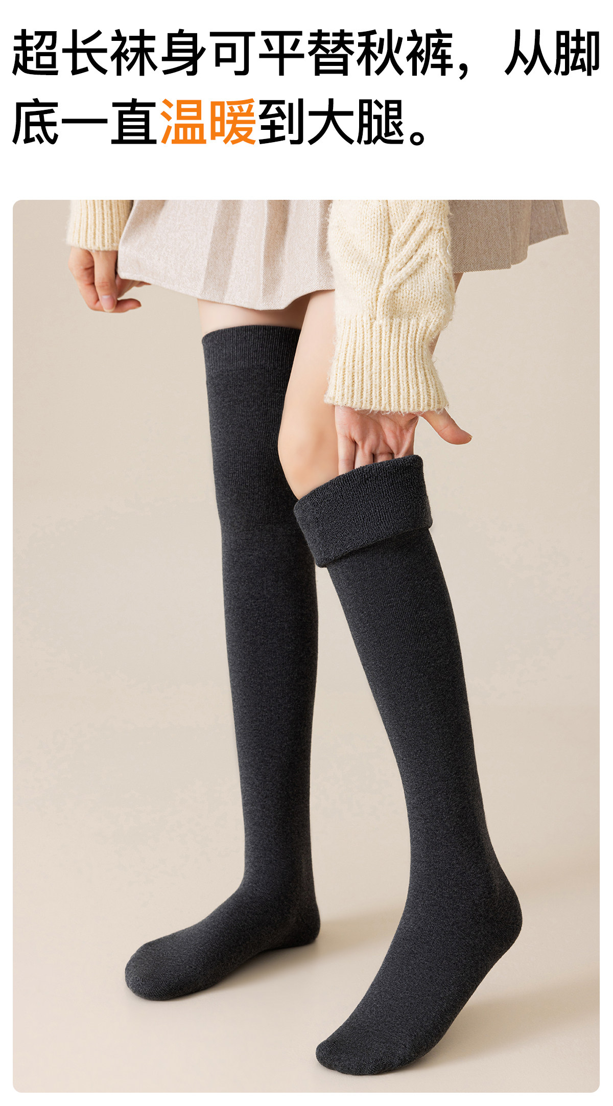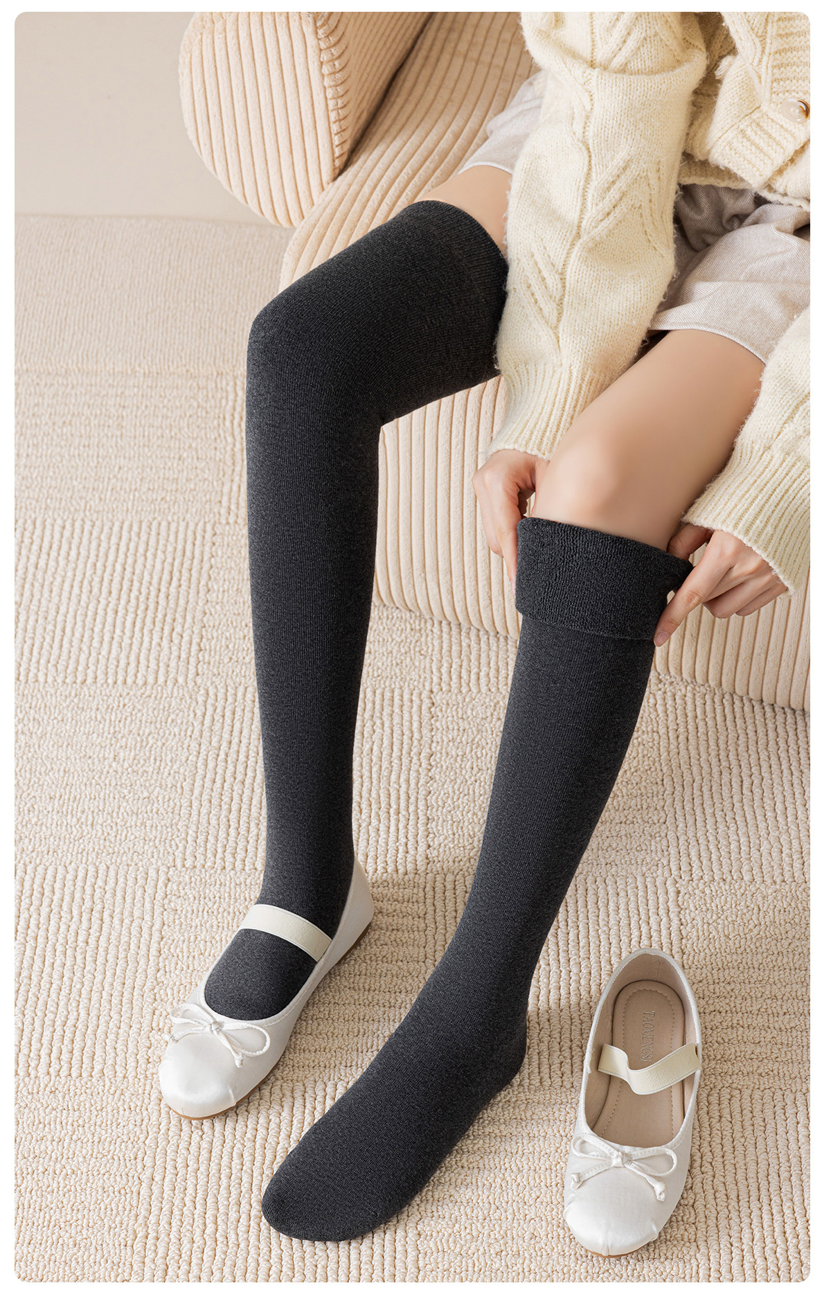 100% Pure Cotton Over-The-Knee Long Socks for Women, Autumn and Winter, with Fleece Lining, Thickened Thigh-High Socks, Anti-Slip, 2025 New Model