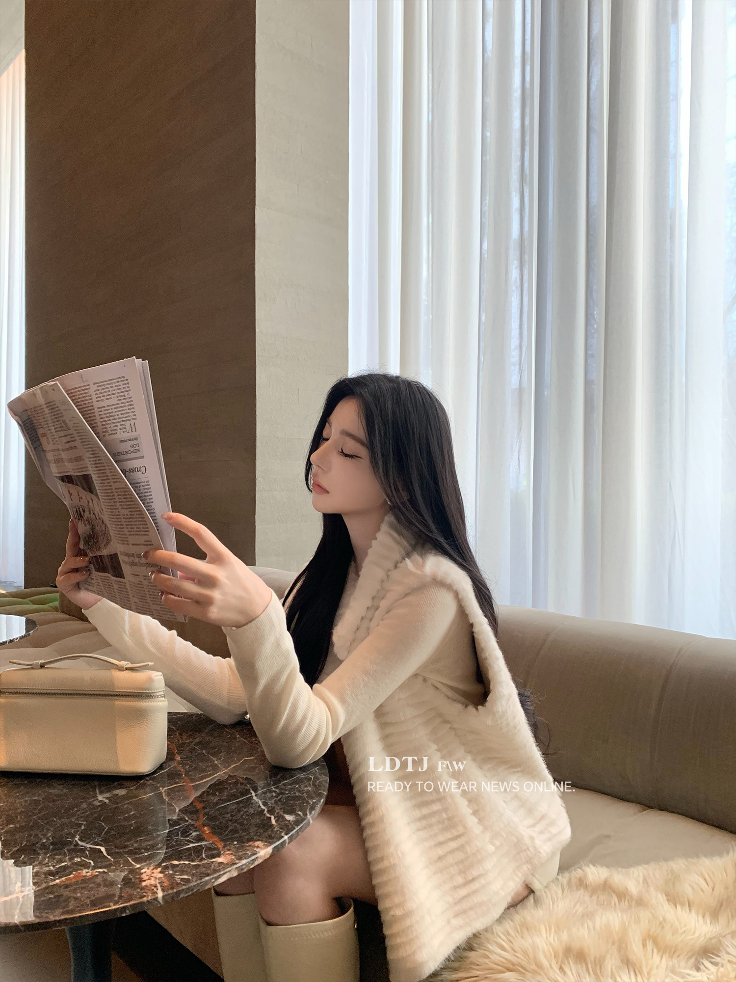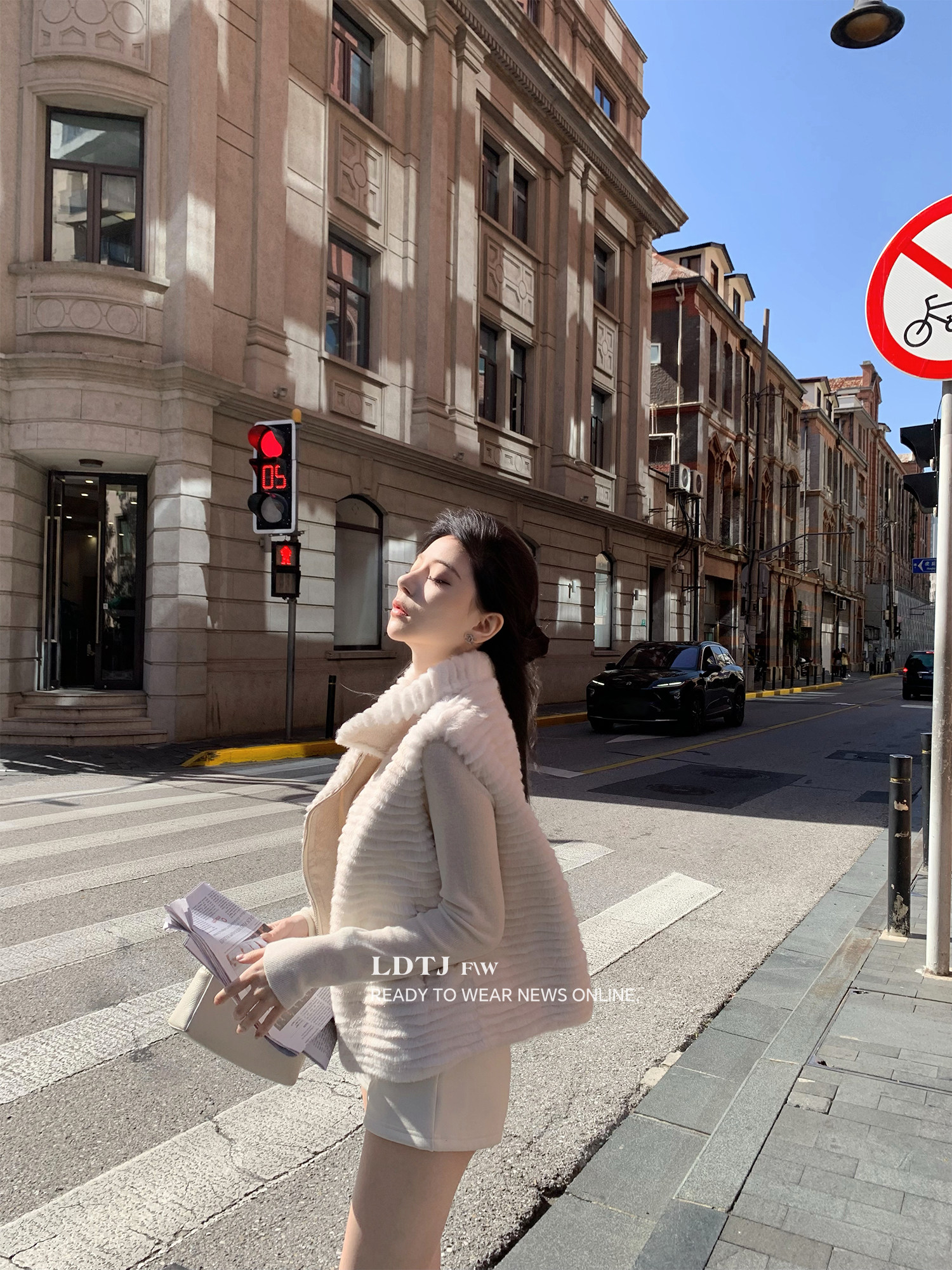 Ldtj High-End "Hazy Winter" Korean-Style Stand-Collar Eco-Friendly Faux Fur Vest with a High-End Feel, Slimming Fur Coat