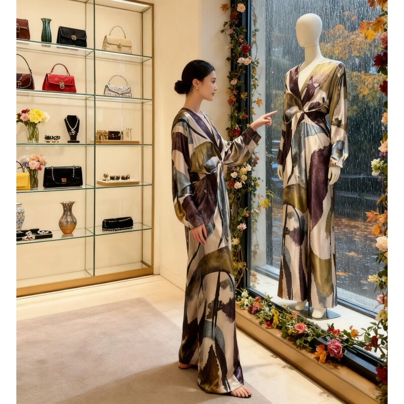 2025 Winter Resort Style Printed Dress, Feminine and Sexy V-neck Waist Long Dress, Popular This Year