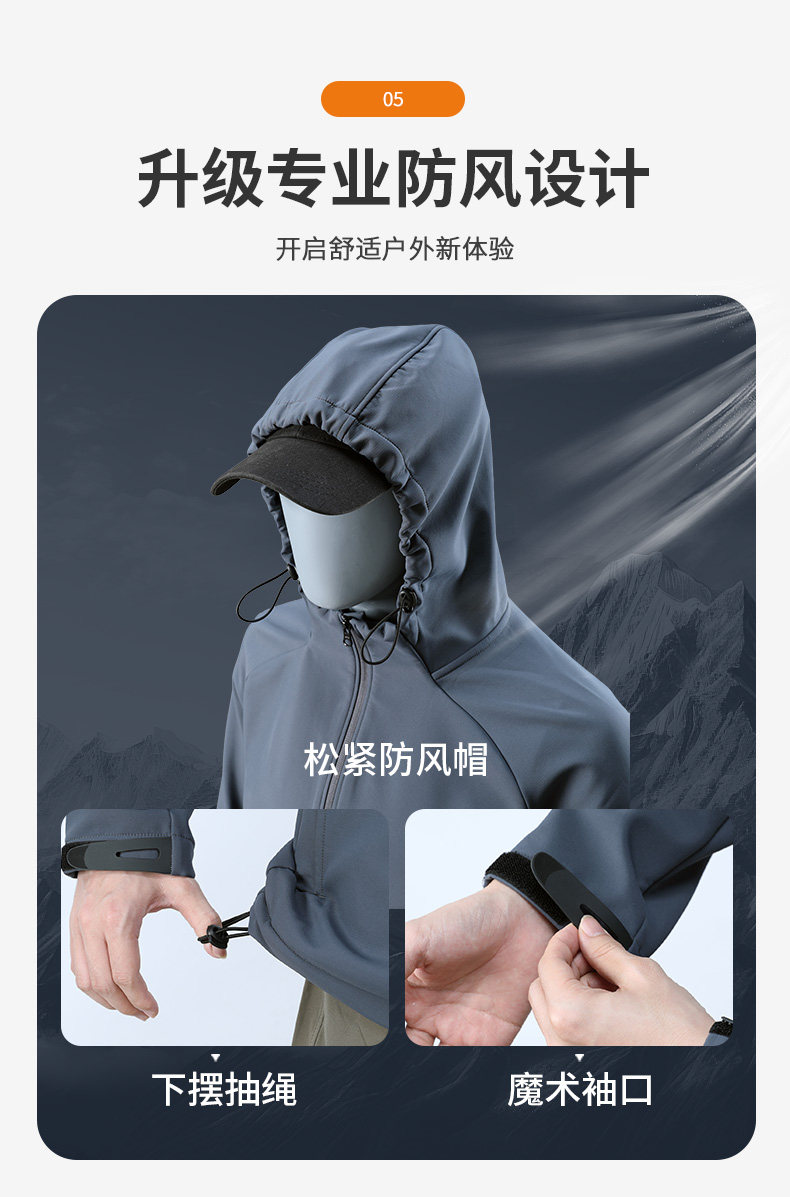Winter soft shell jacket for men with velvet, warm, windproof and water repellent new style jacket for sports, outdoor, hiking, running and leisure