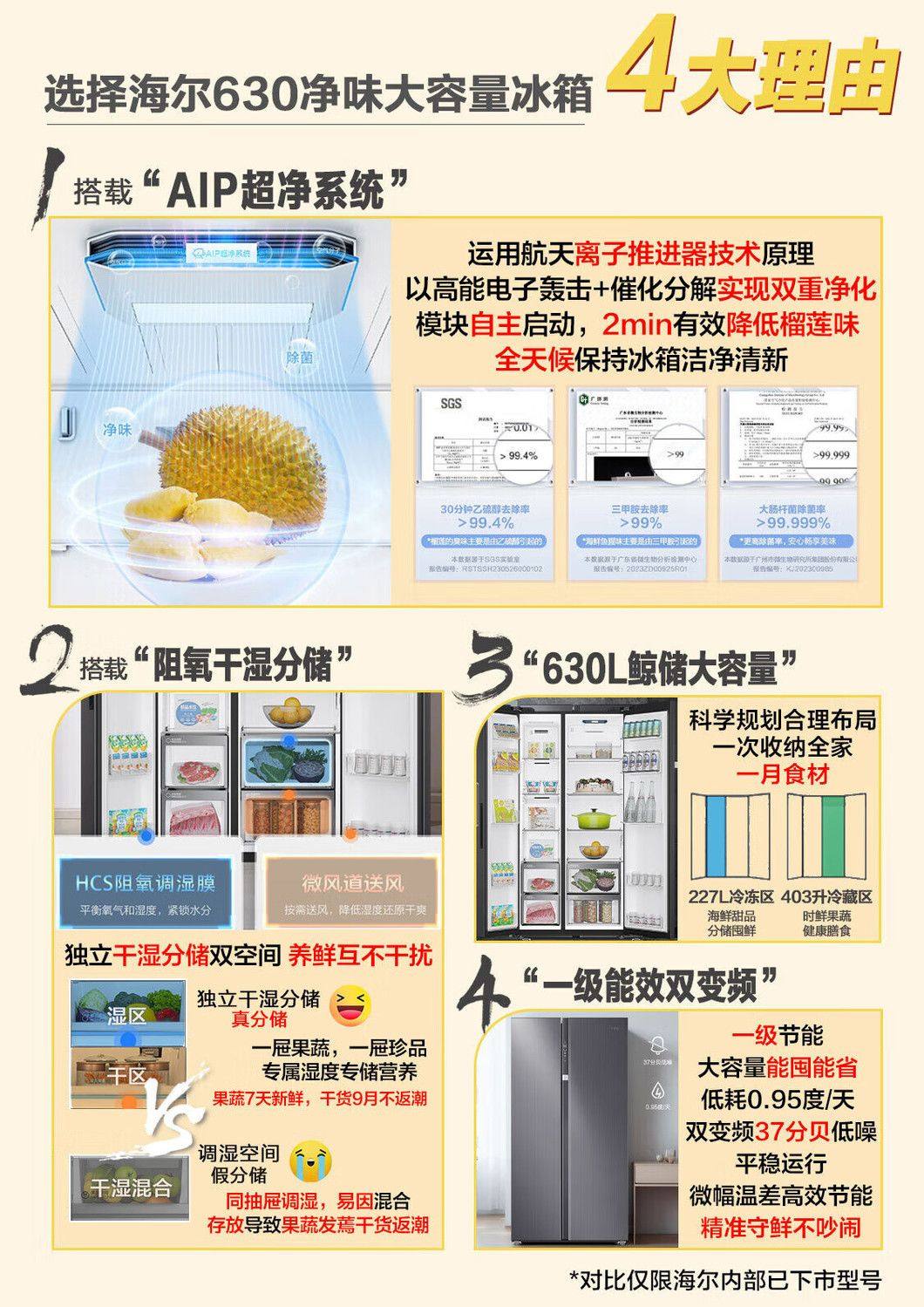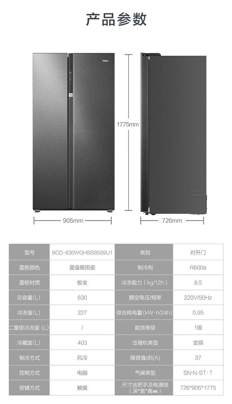 Haier refrigerator double-door side-by-side first-level energy efficiency AIP ultra-clean system frost-free BCD-630WGHSS95S9U1
