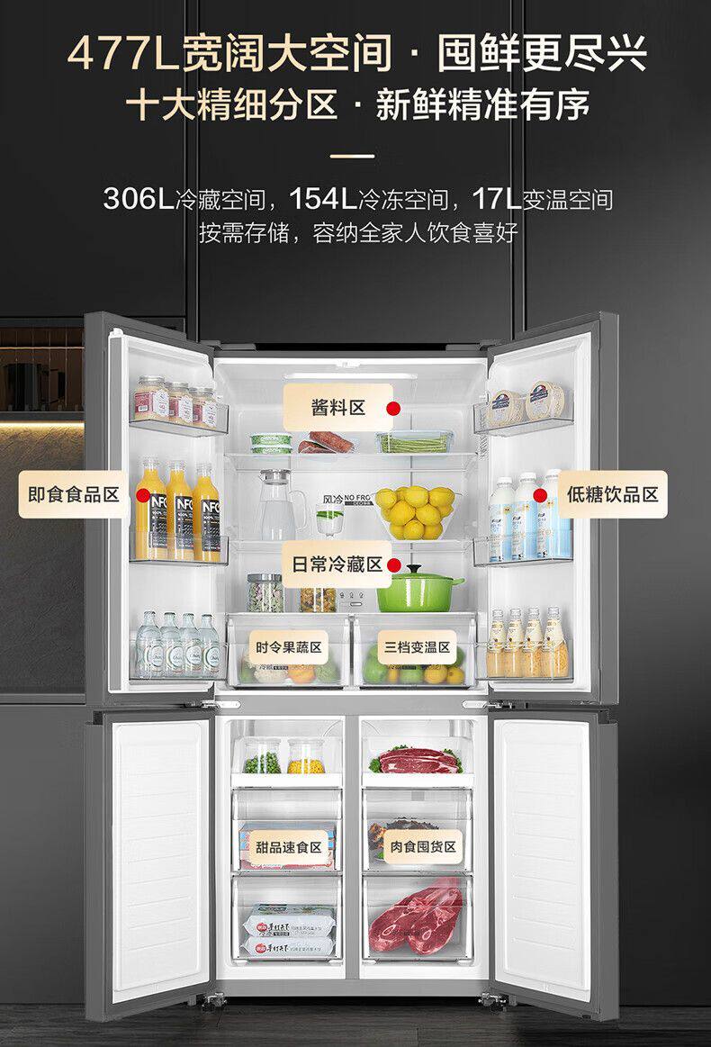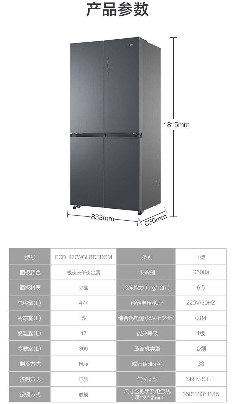 Haier Refrigerator Cross-Door Four-Door Household Frost-Free First-Class Energy Efficiency Preservation Bcd-477Wghtdedgm