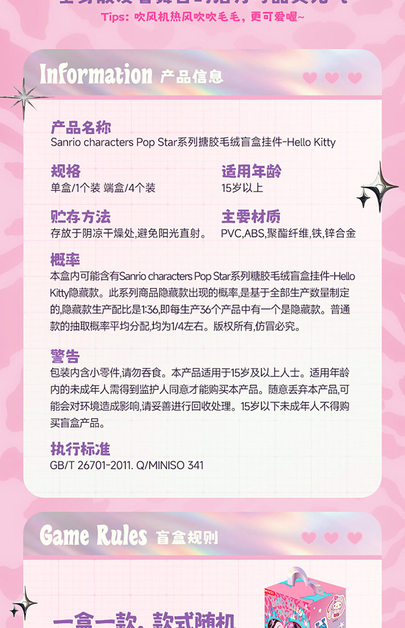 Sanrio Hello Kitty Pop Star Series Vinyl Plush Pendant Blind Box Doll Gift