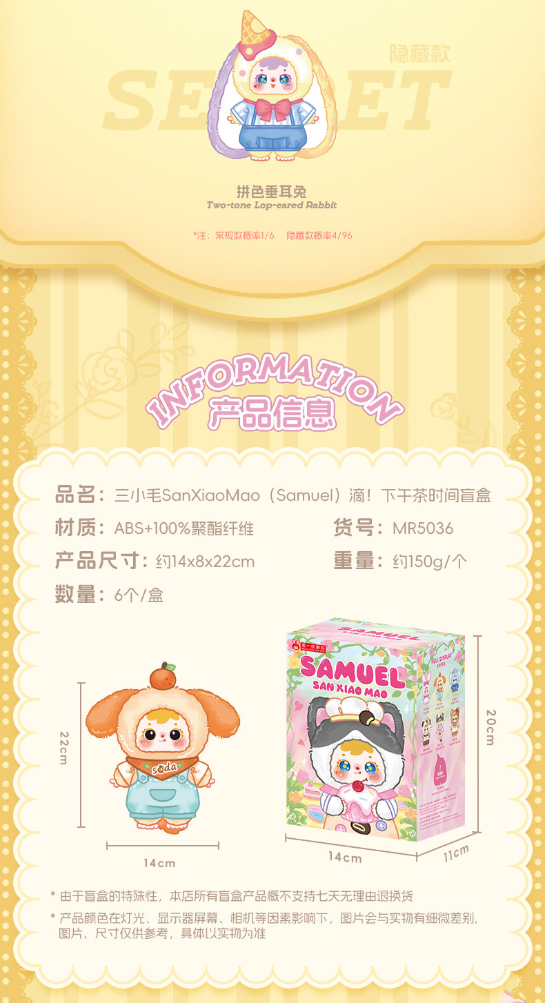 Samuel Three Little Guys Afternoon Tea Time Series Plush Pendant Blind Box Doll Girl's Gift Keychain