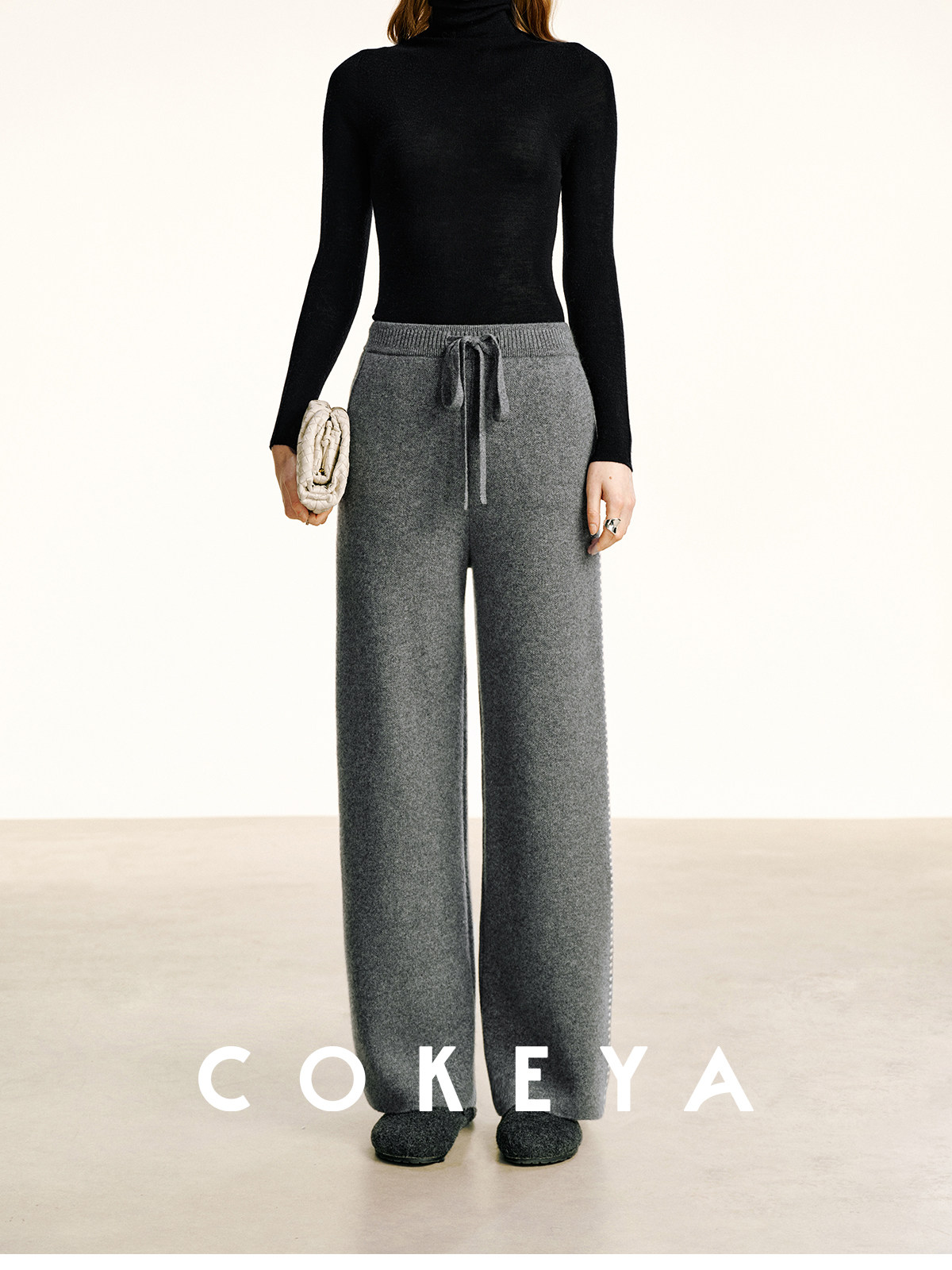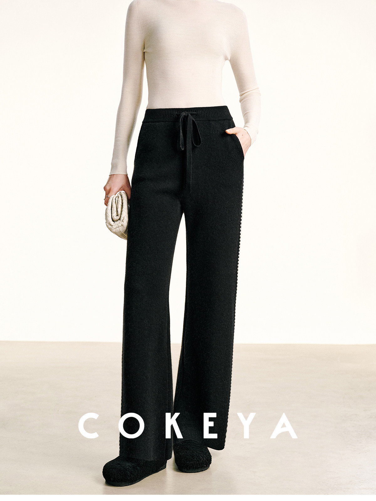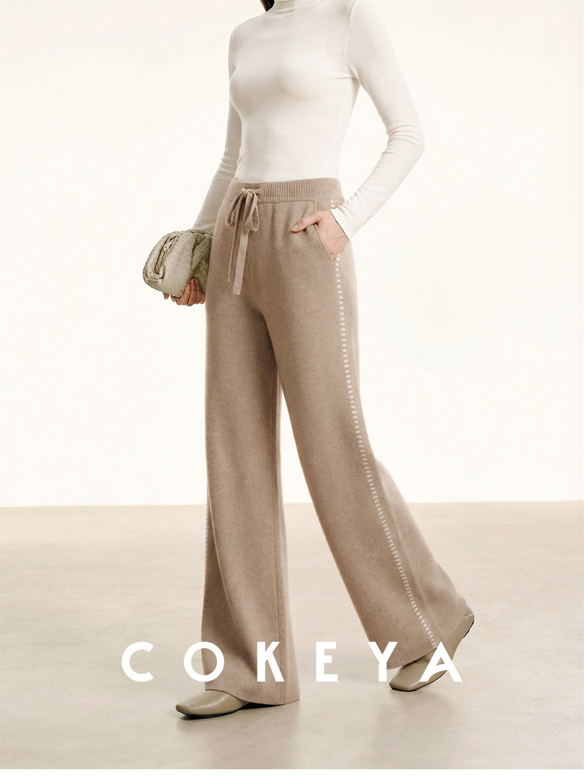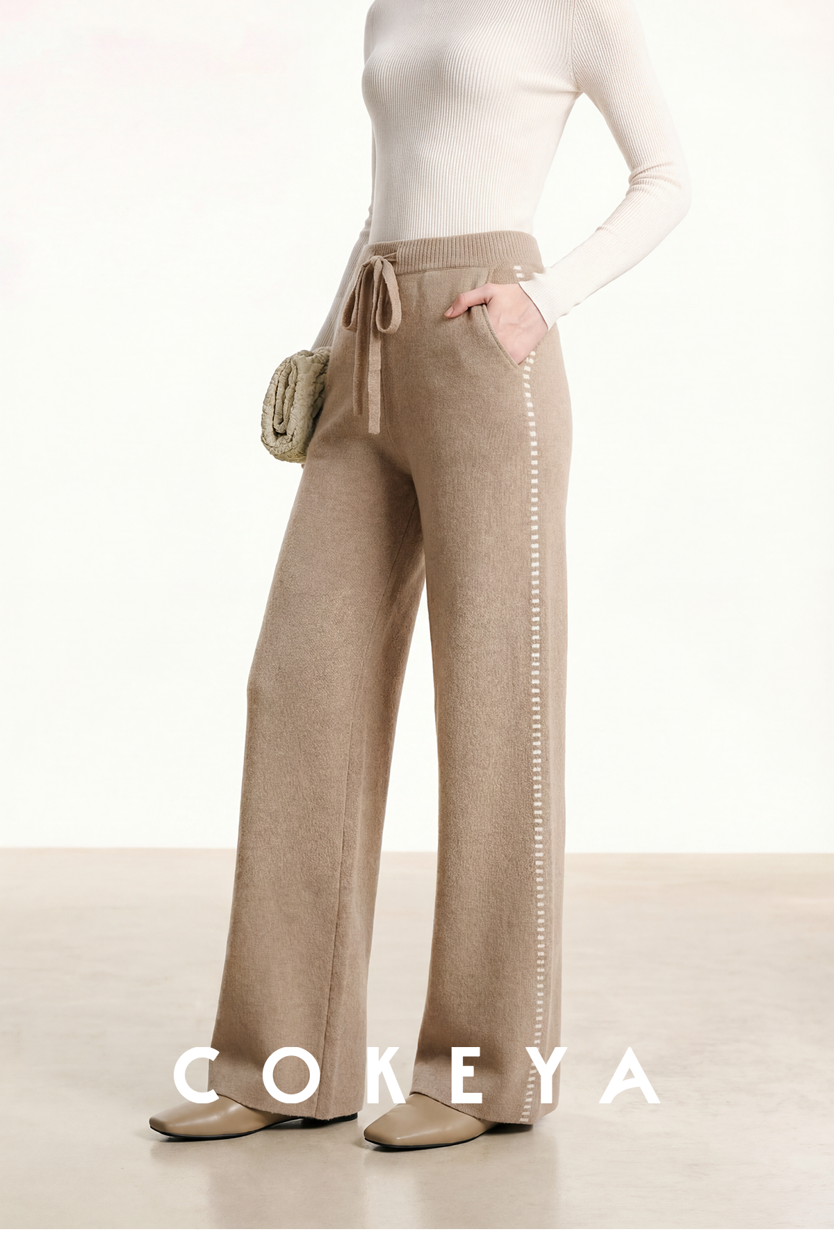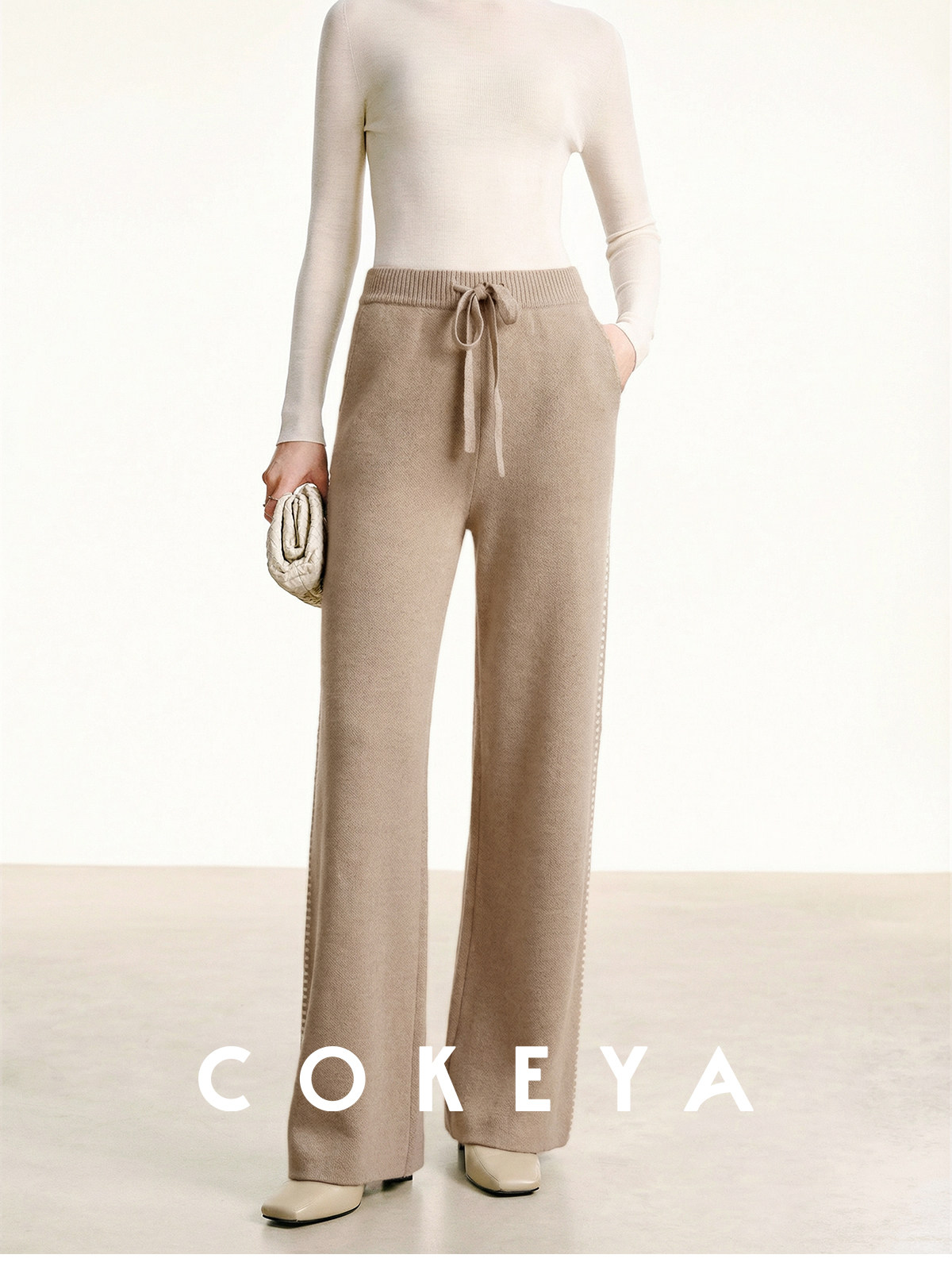 Cokeya/"Warm Pants"~26-Count Cashmere High-Waisted Thickened Knit Wide-Leg Straight Casual Pants for Women in Spring