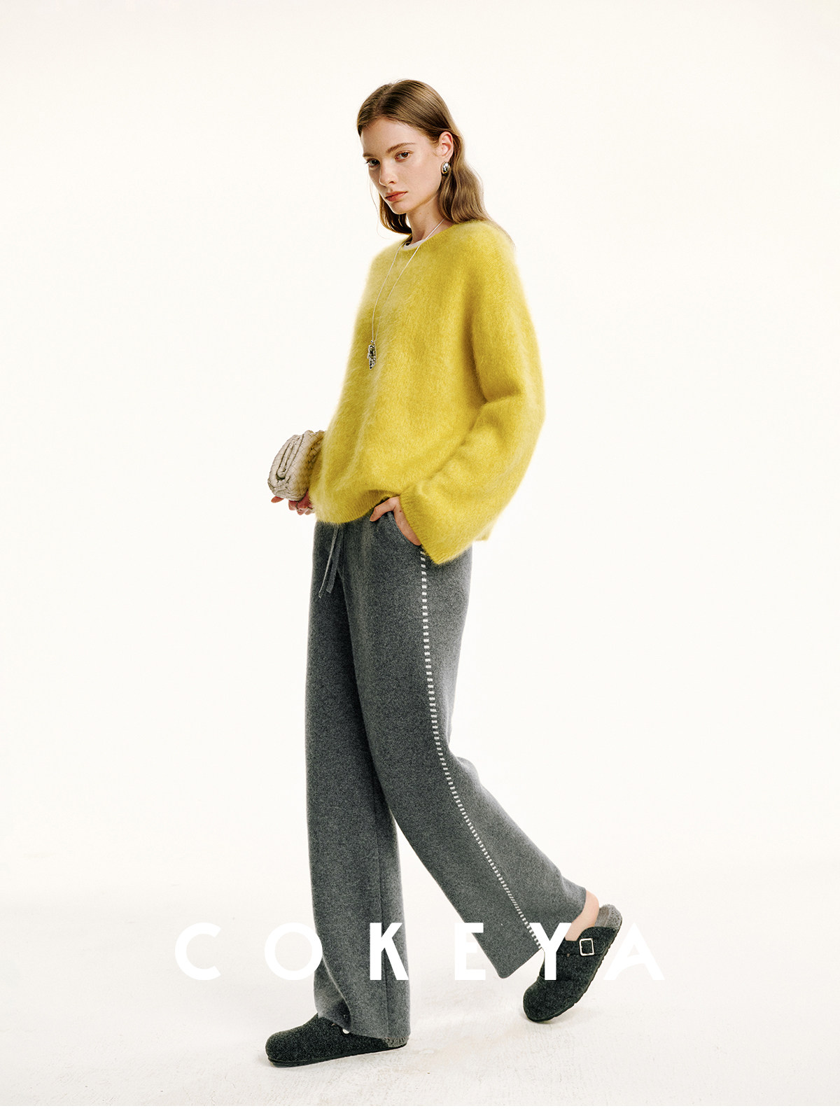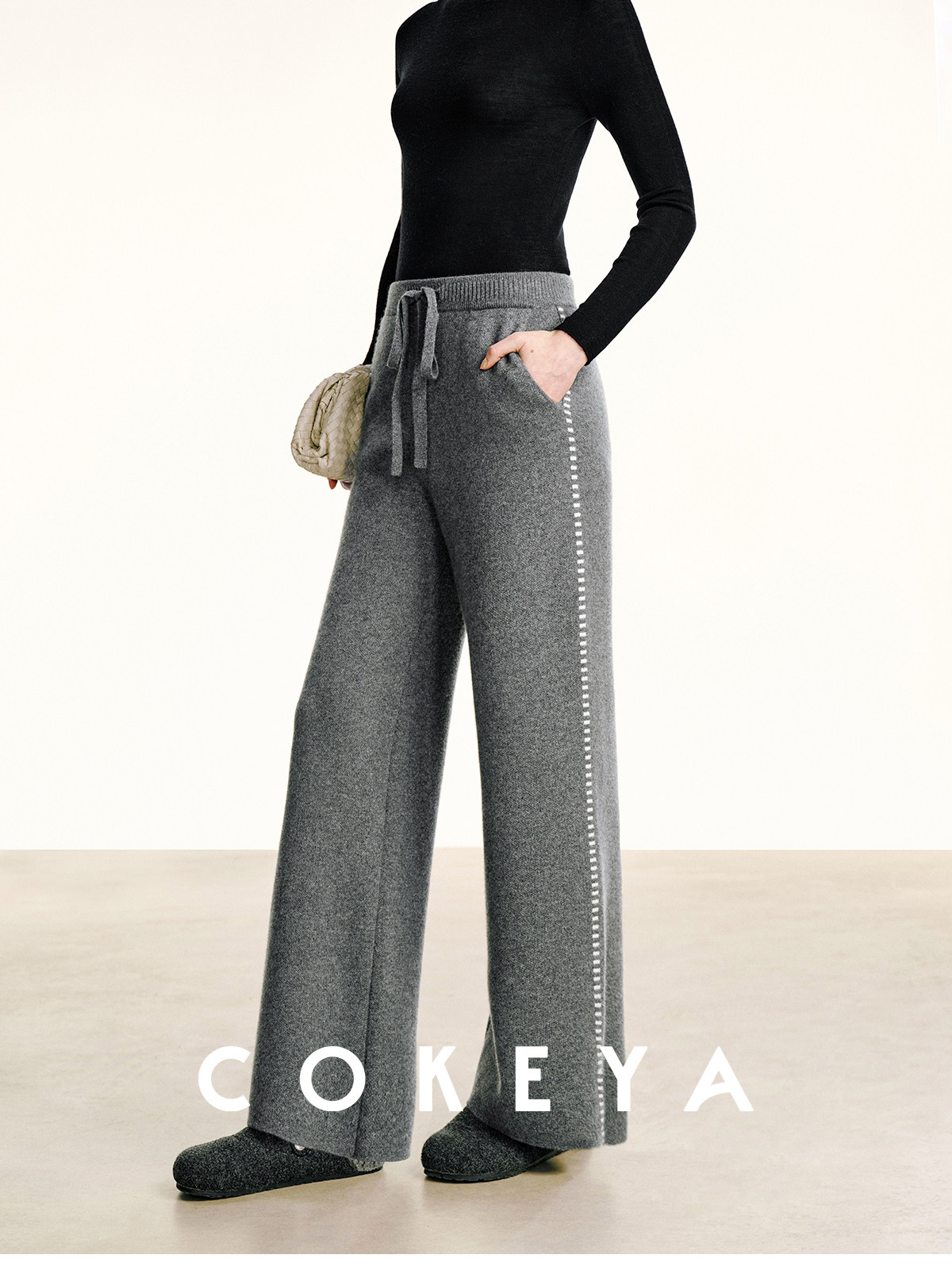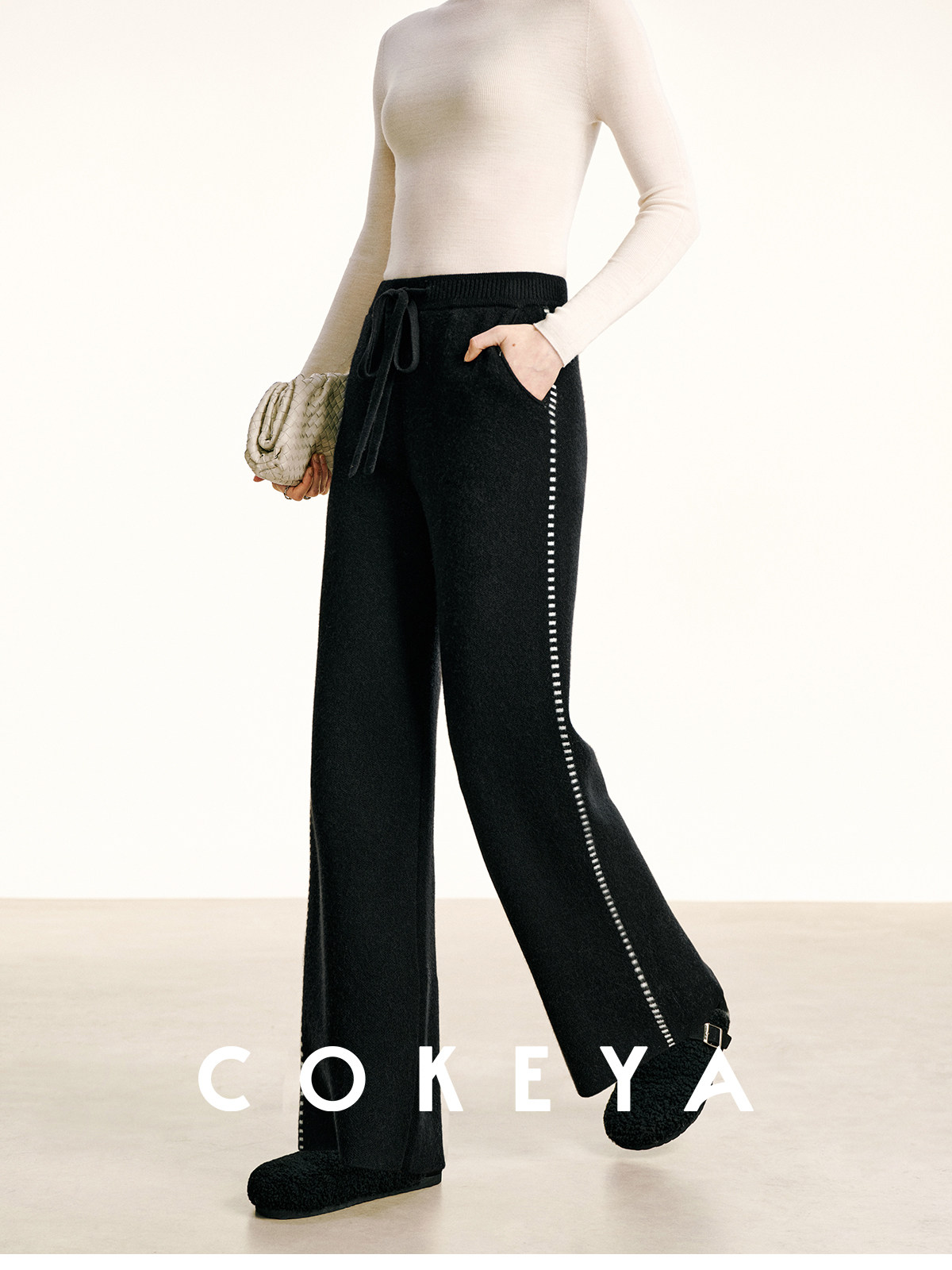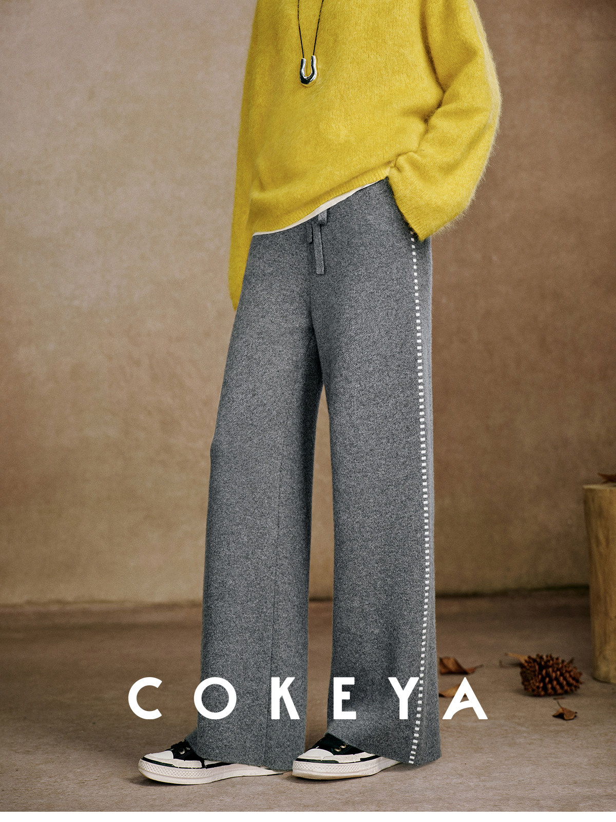 Cokeya/"Warm Pants"~26-Count Cashmere High-Waisted Thickened Knit Wide-Leg Straight Casual Pants for Women in Spring