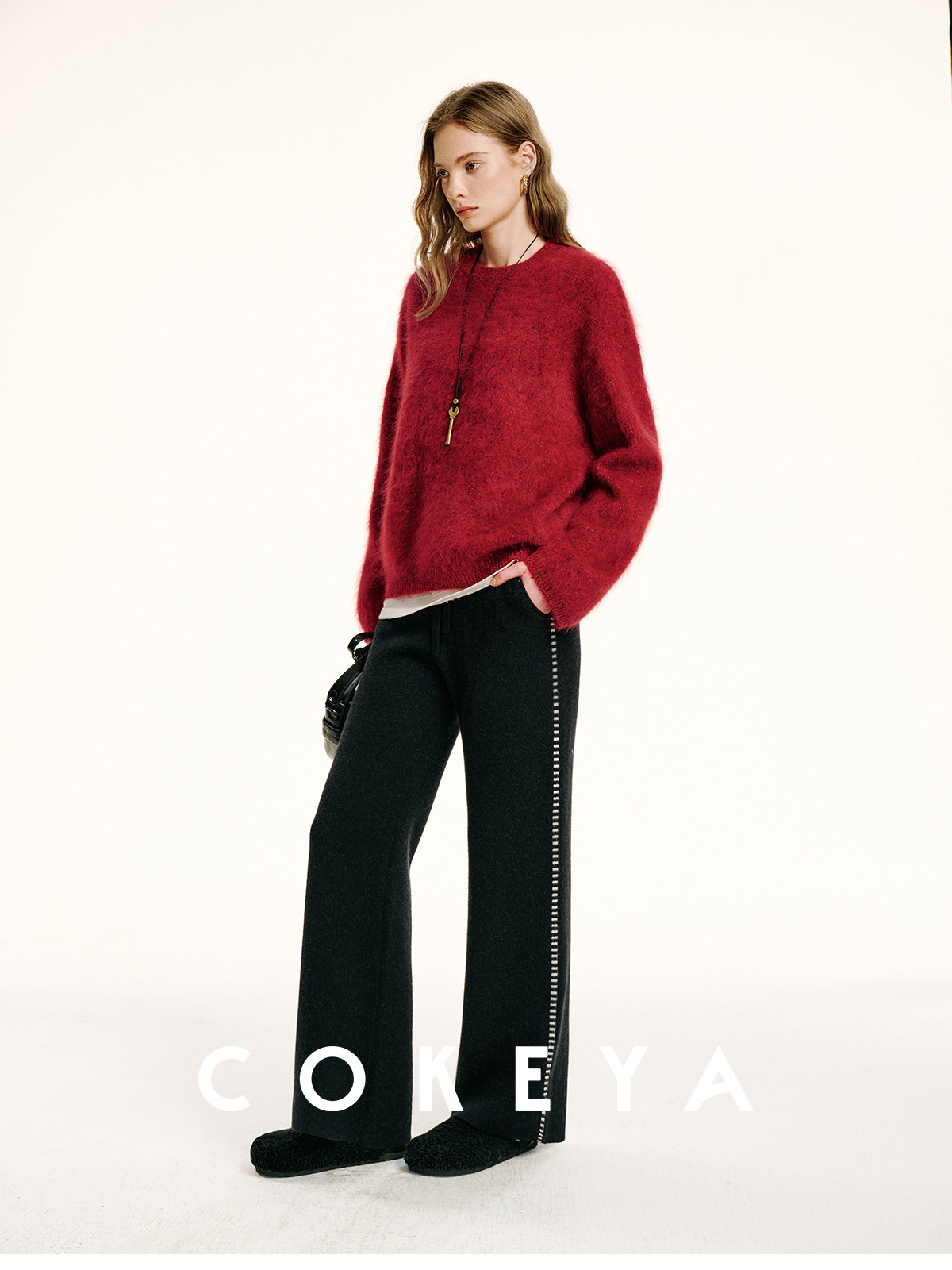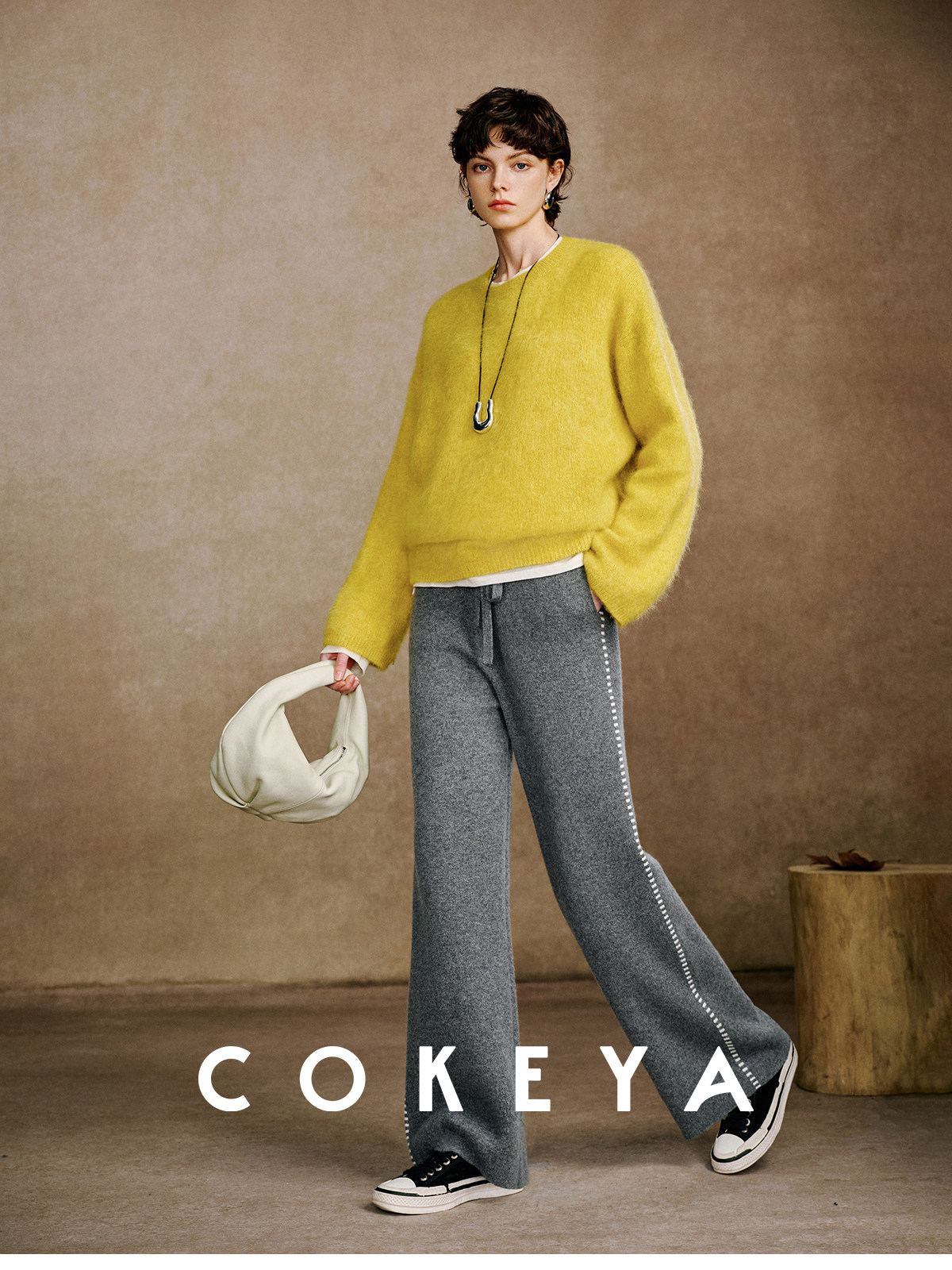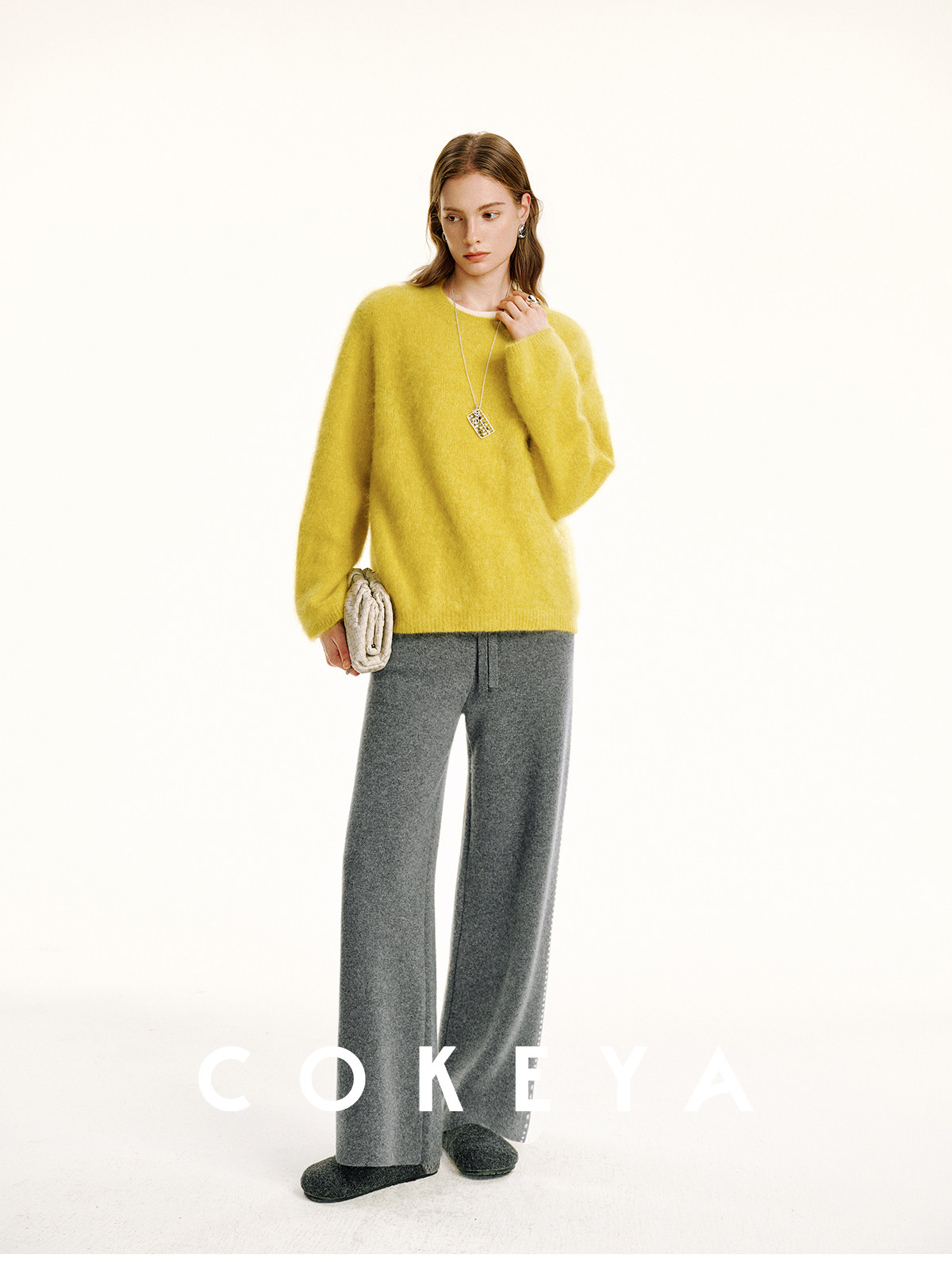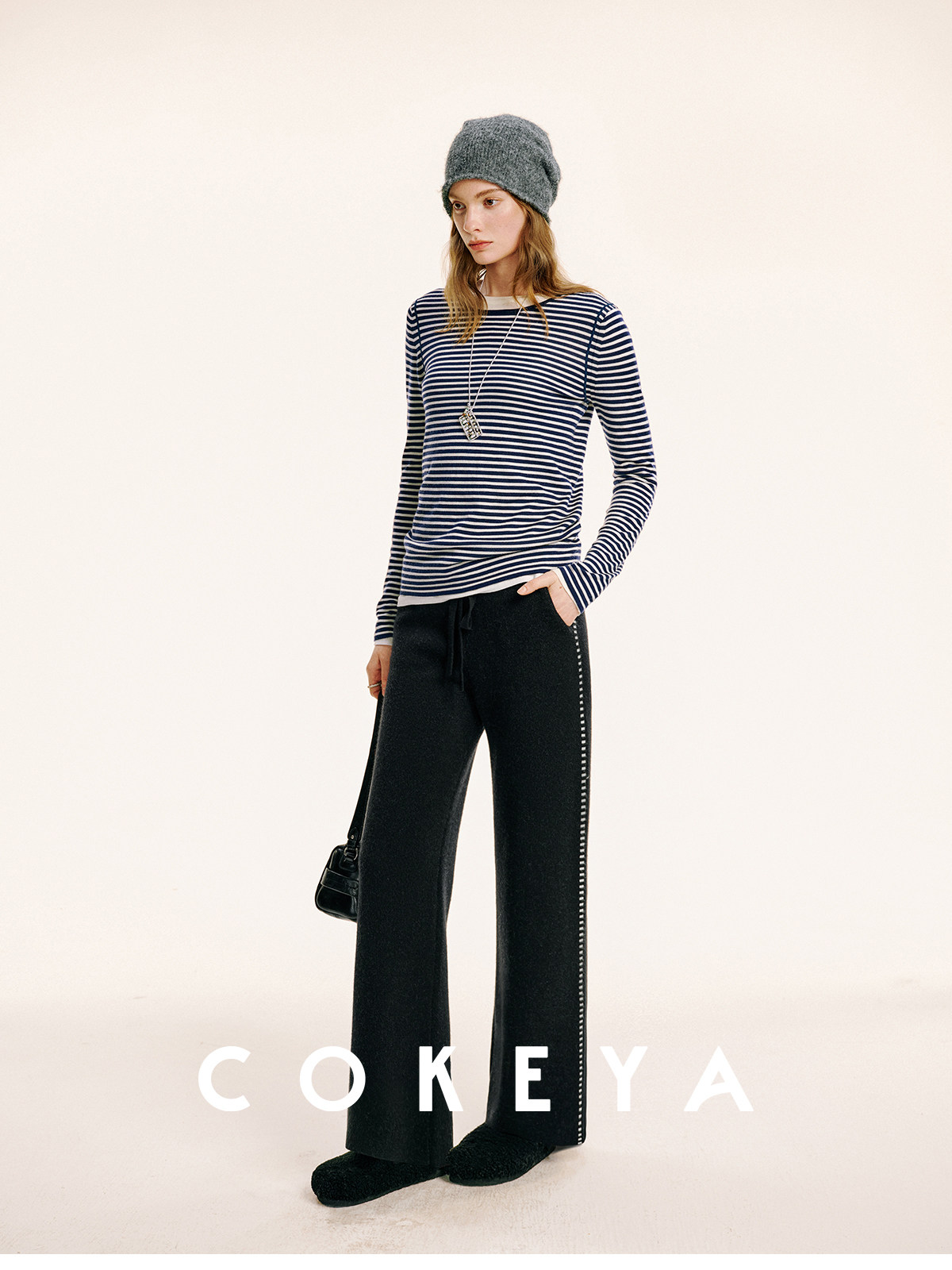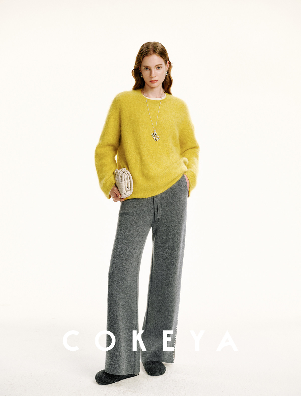 Cokeya/"Warm Pants"~26-Count Cashmere High-Waisted Thickened Knit Wide-Leg Straight Casual Pants for Women in Spring