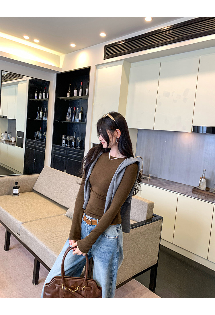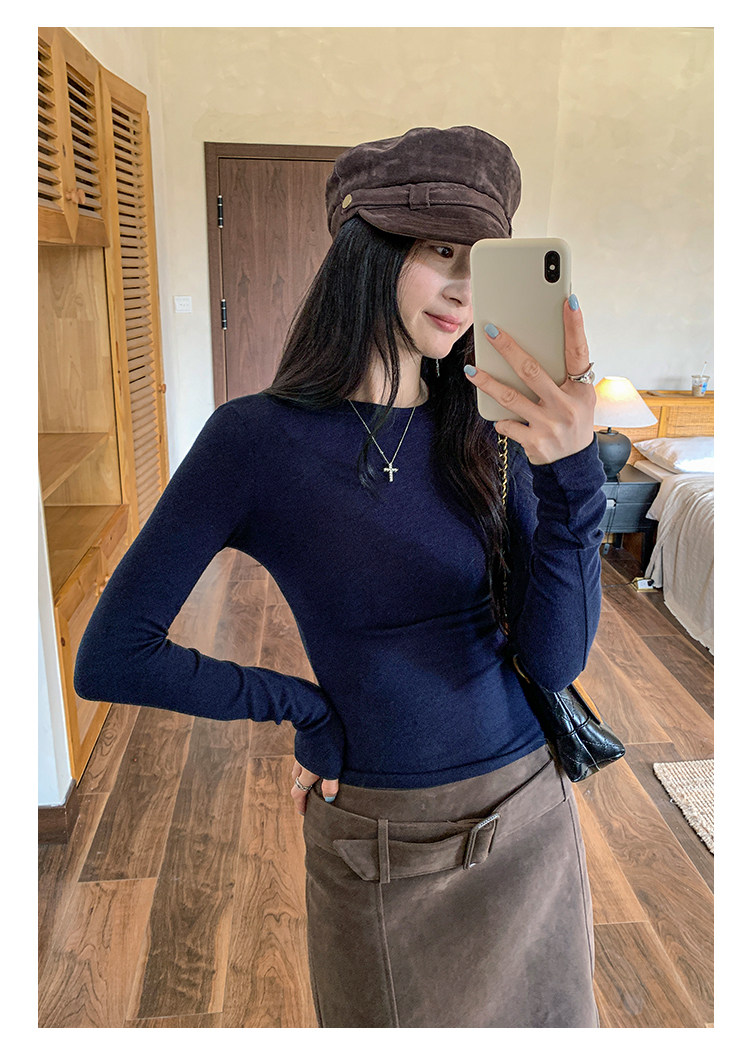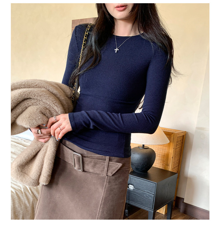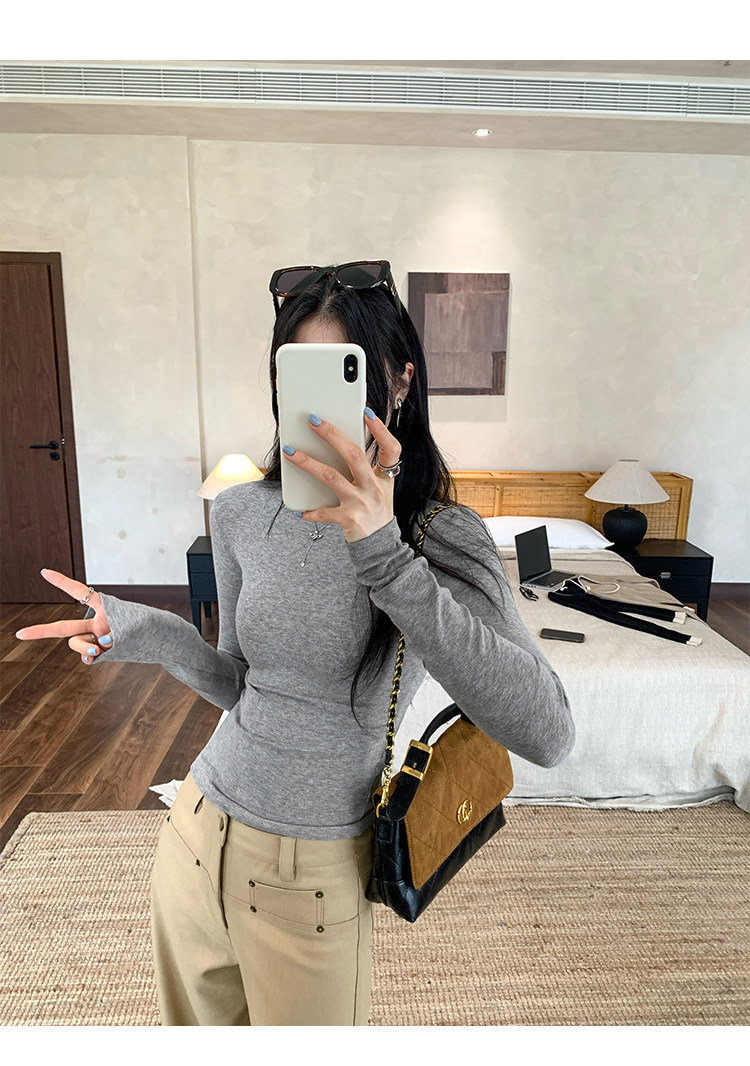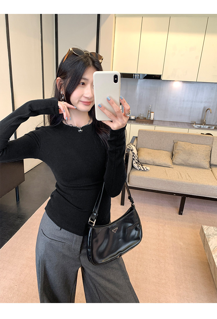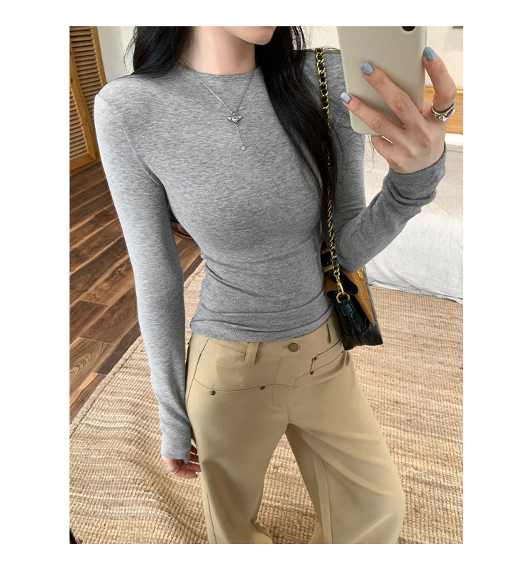 Trendy Tight-Fitting Layered Long-Sleeve T-Shirt for Women, Autumn/Winter 2025 New Style, Figure-Flattering, Slimming, Round-Neck Base Shirt