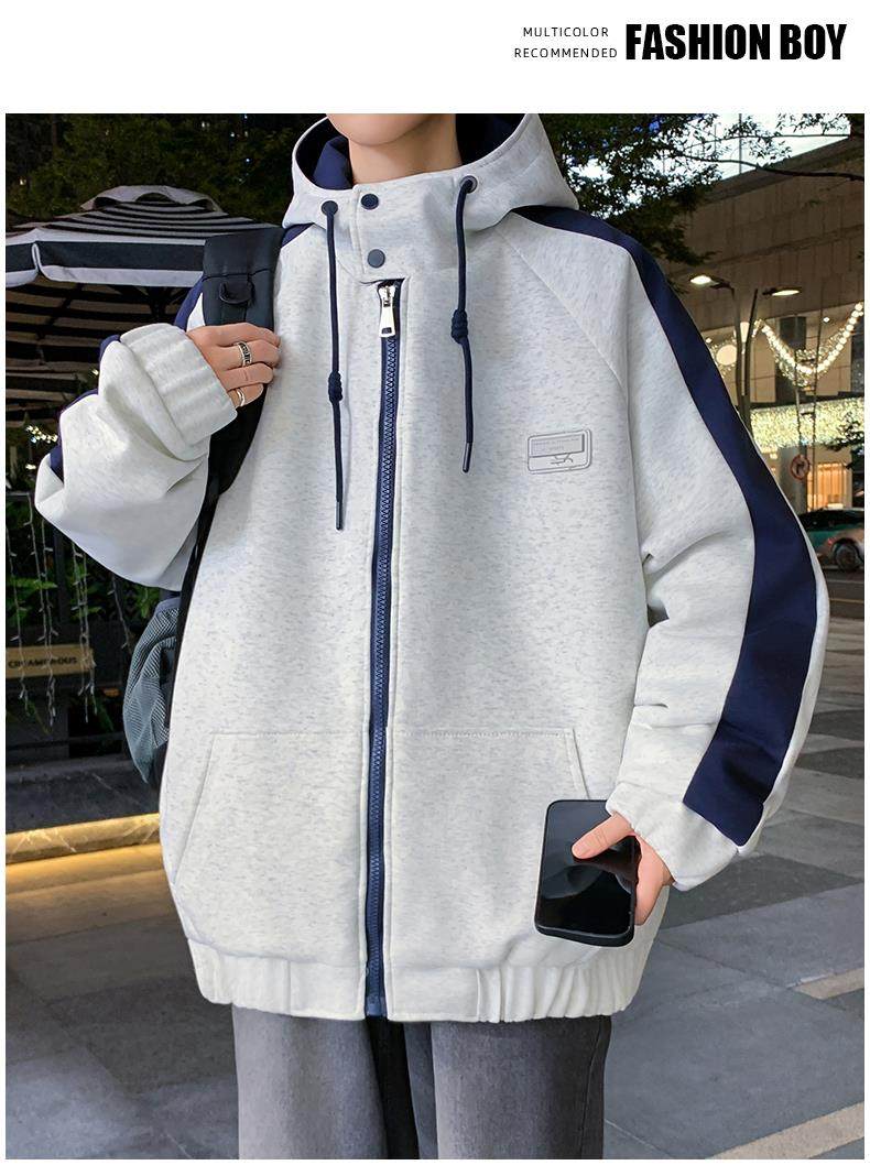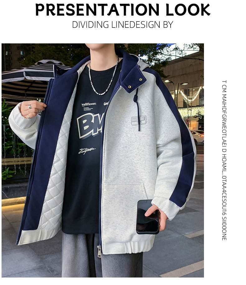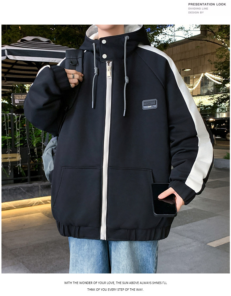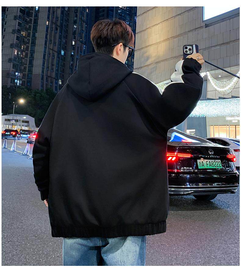 Cotton-Padded Hooded Baseball Jacket for Men, Autumn and Winter Thickened Warm Jacket, Casual Cardigan Sweatshirt for Boys and Teenagers