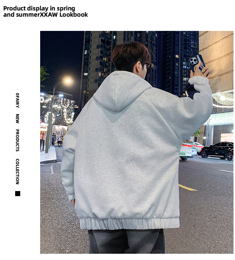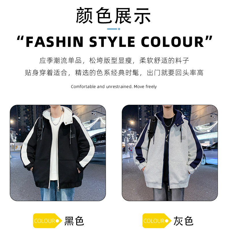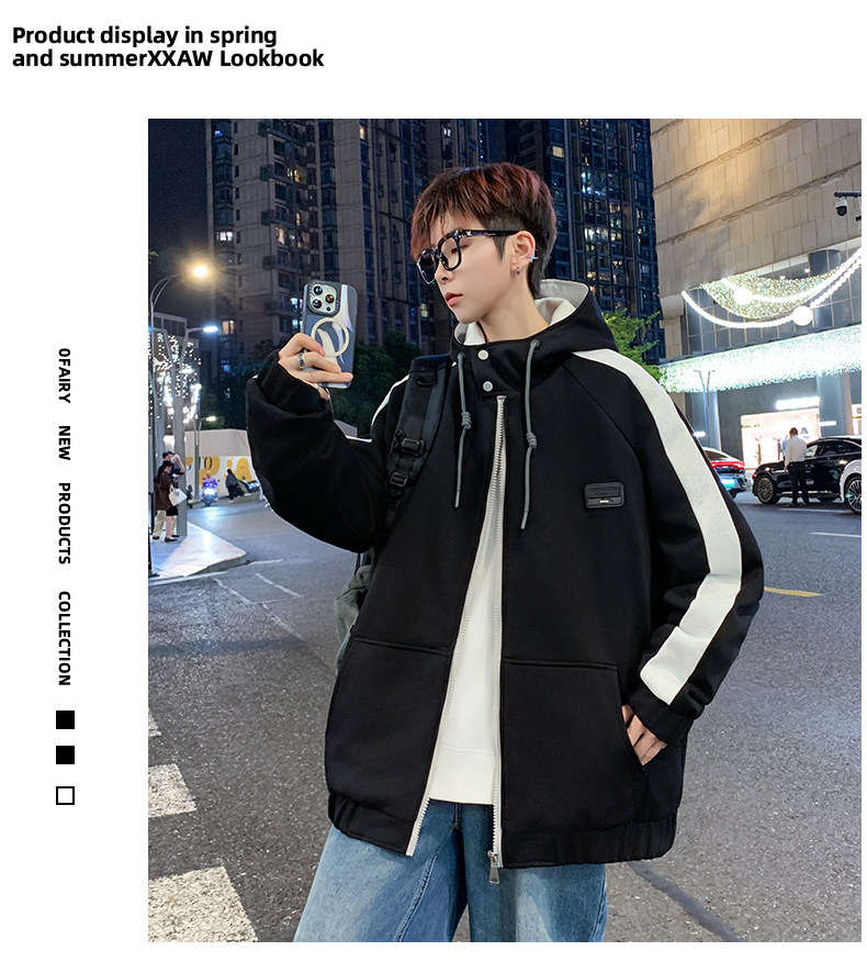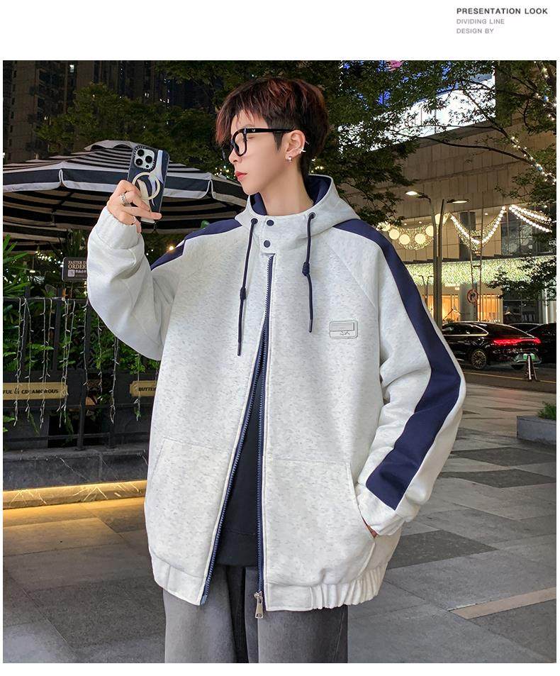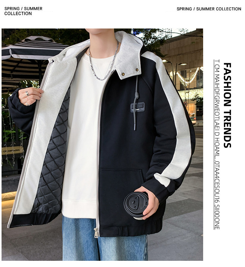 Cotton-Padded Hooded Baseball Jacket for Men, Autumn and Winter Thickened Warm Jacket, Casual Cardigan Sweatshirt for Boys and Teenagers