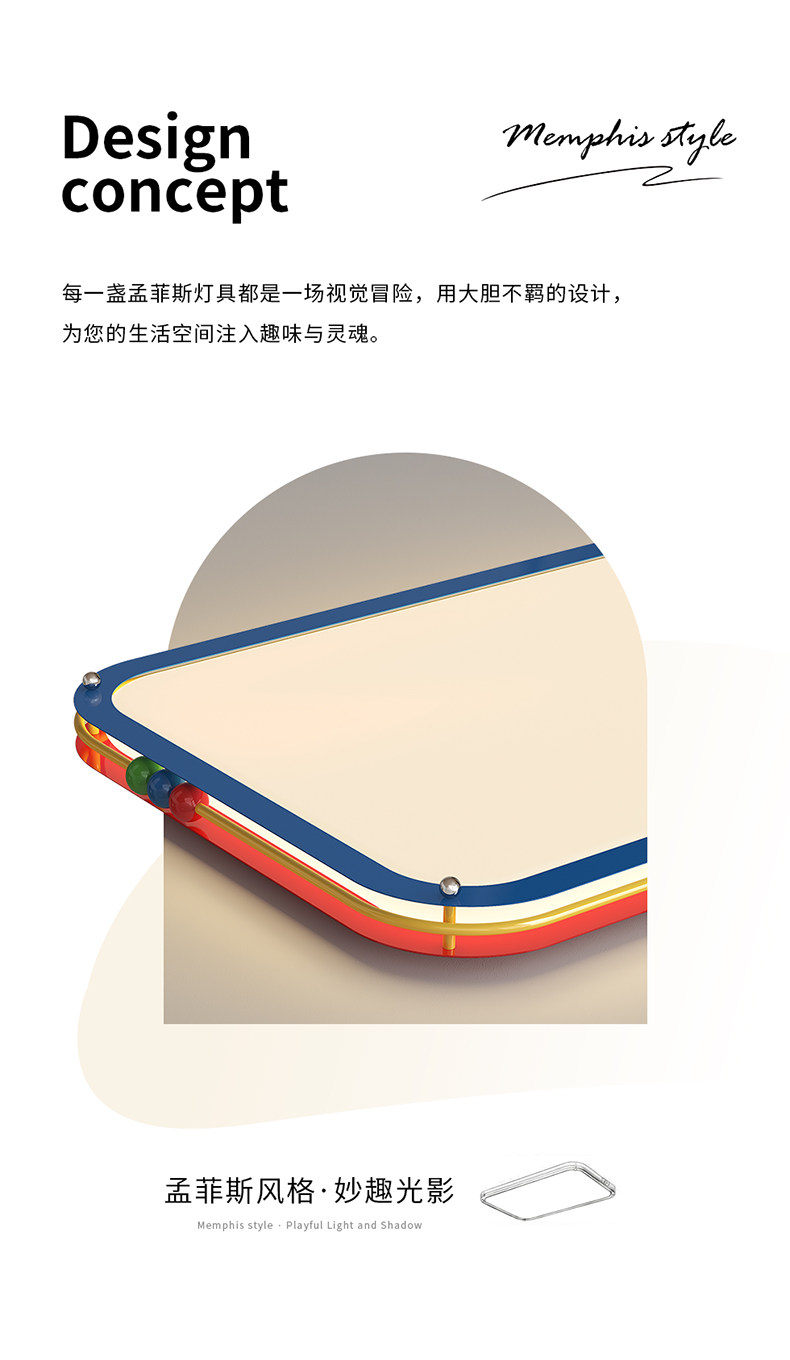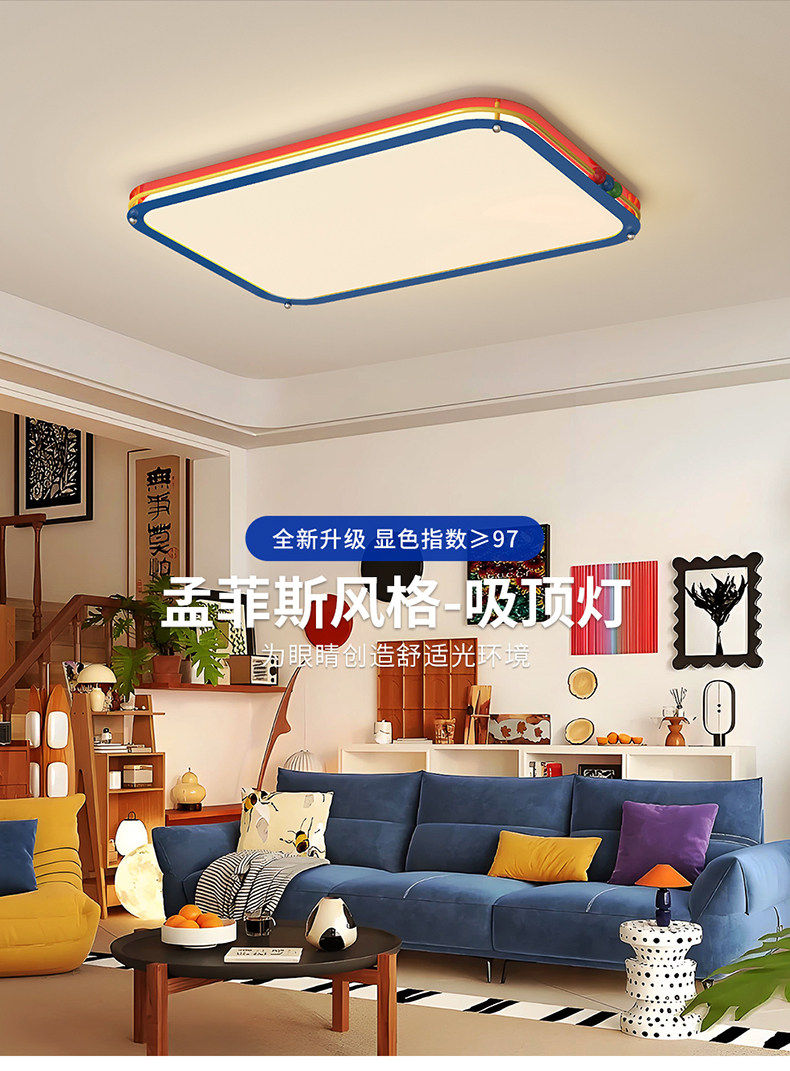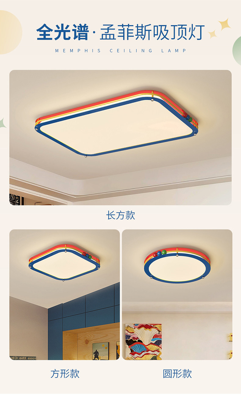 Memphis Bedroom Ceiling Light Dopamine Color Circular Full-Spectrum Eye-Protection Creative Living Room Study Children's Room Lamp