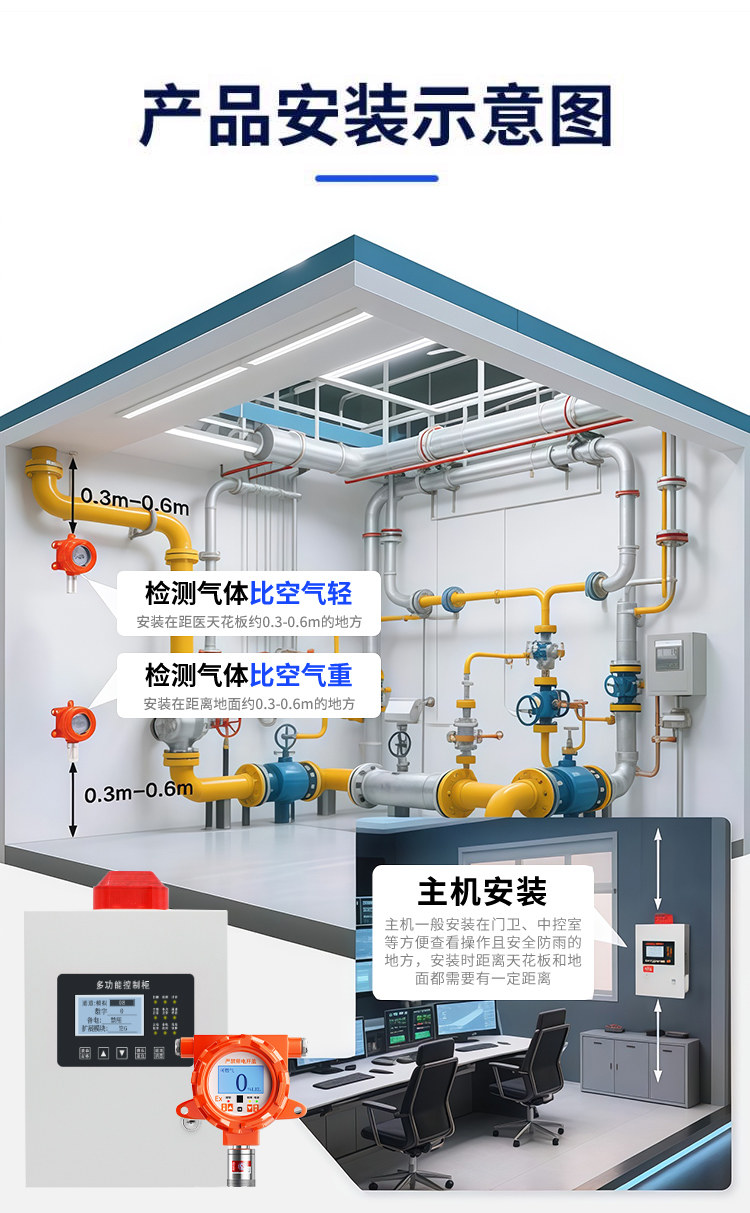 Combustible Gas Detection Alarm Industrial Natural Gas Leak Methane Propane Ozone Ammonia Concentration Detector Paint