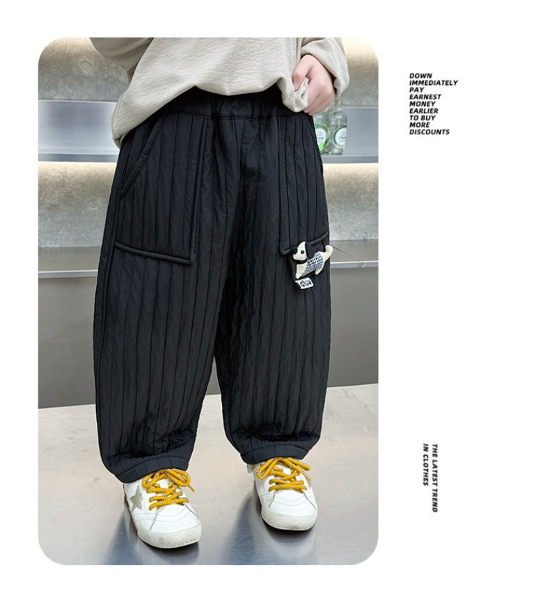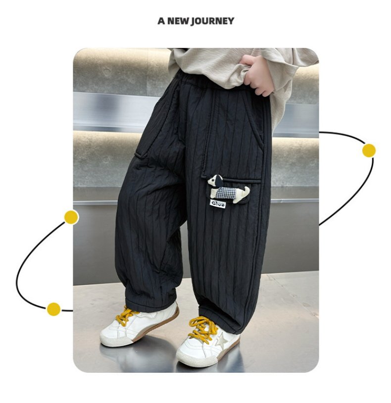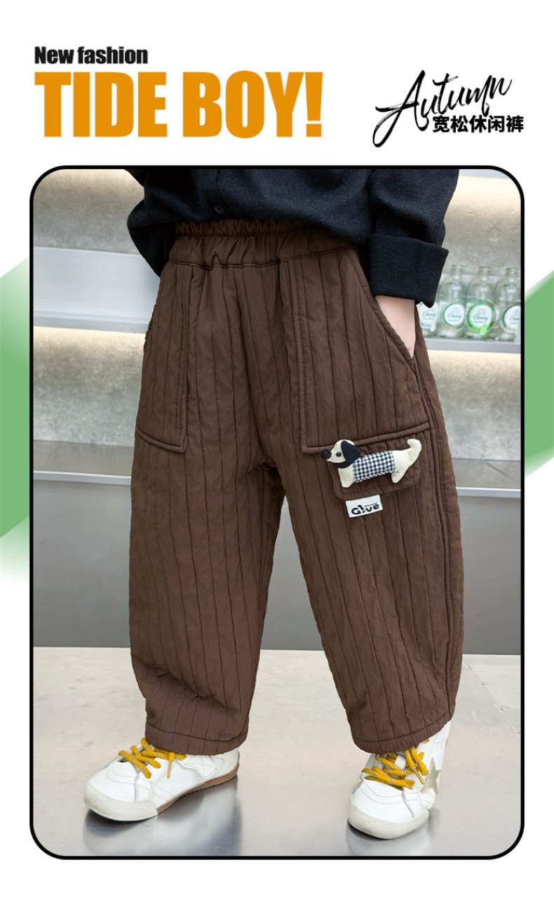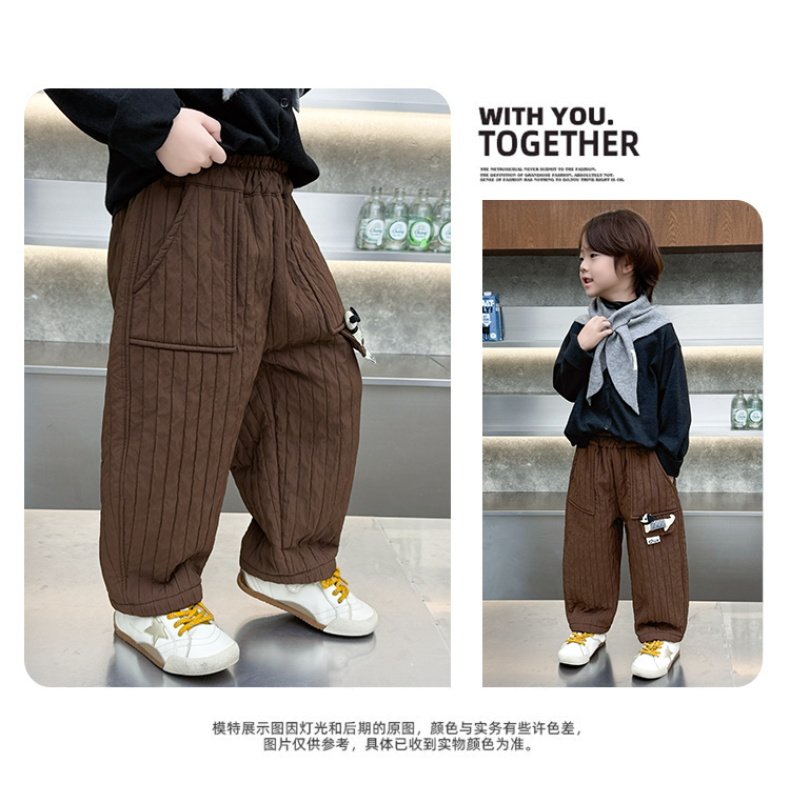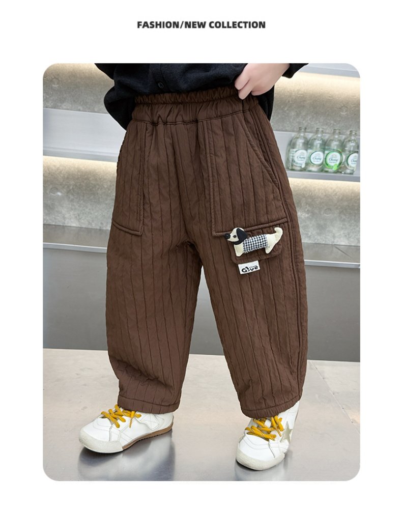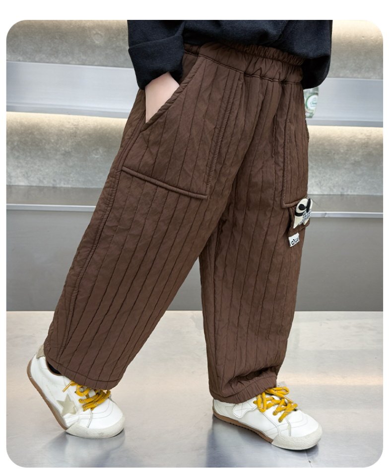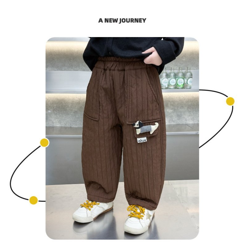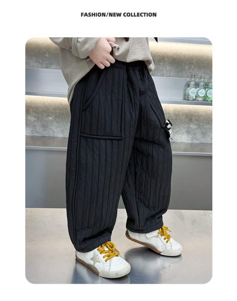 Boys' Fleece-Lined Pants Winter Wear 2025 New Children's Winter Cotton Pants Thickened Casual Scimitar Pants for Little Boys