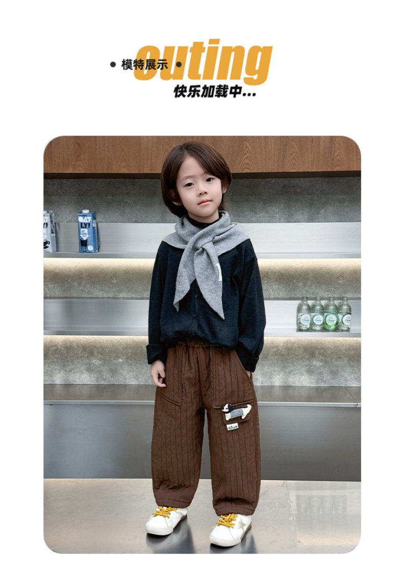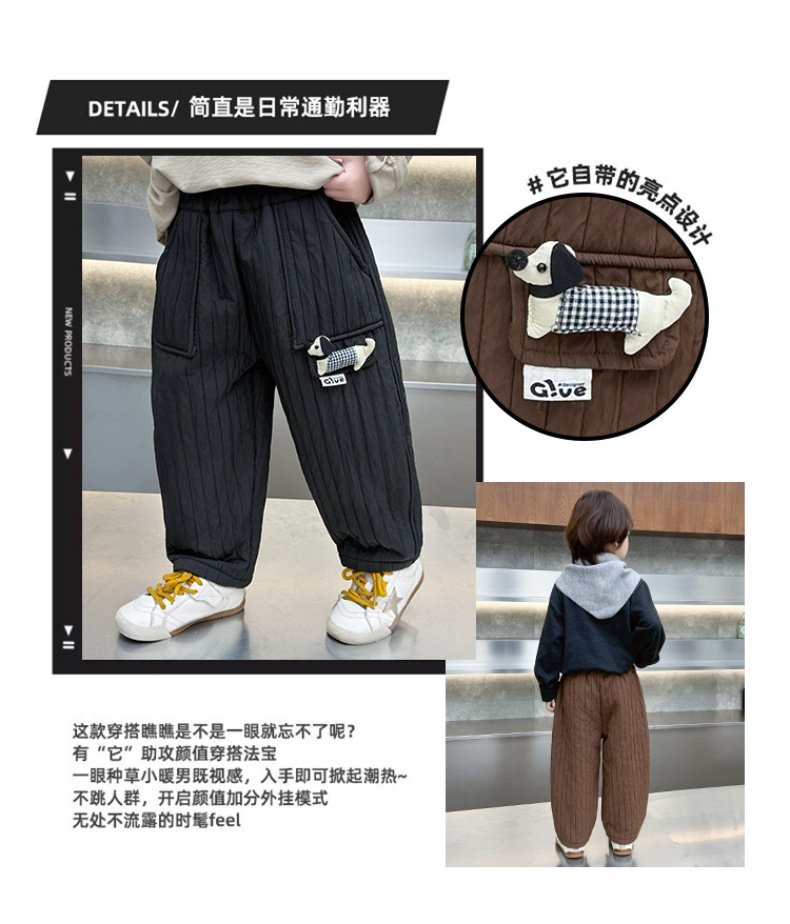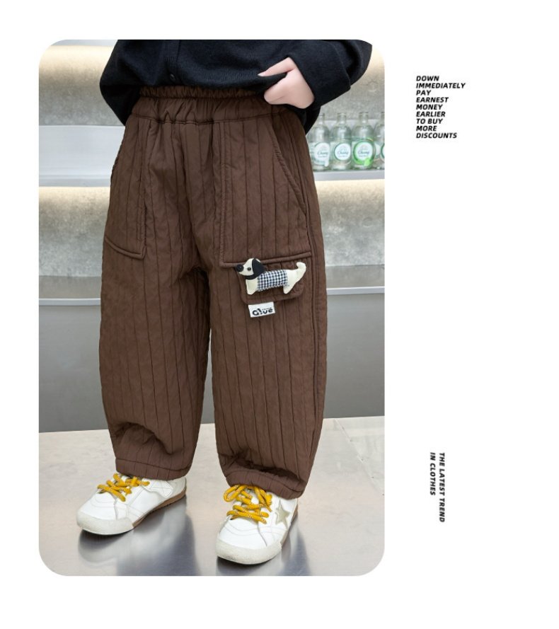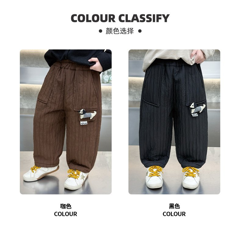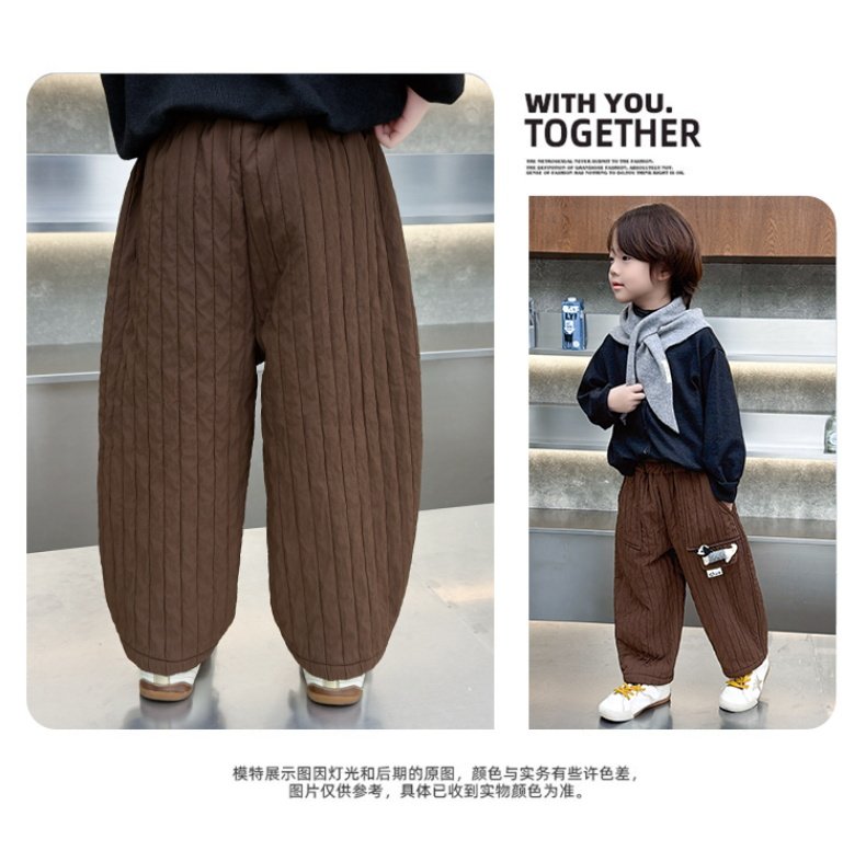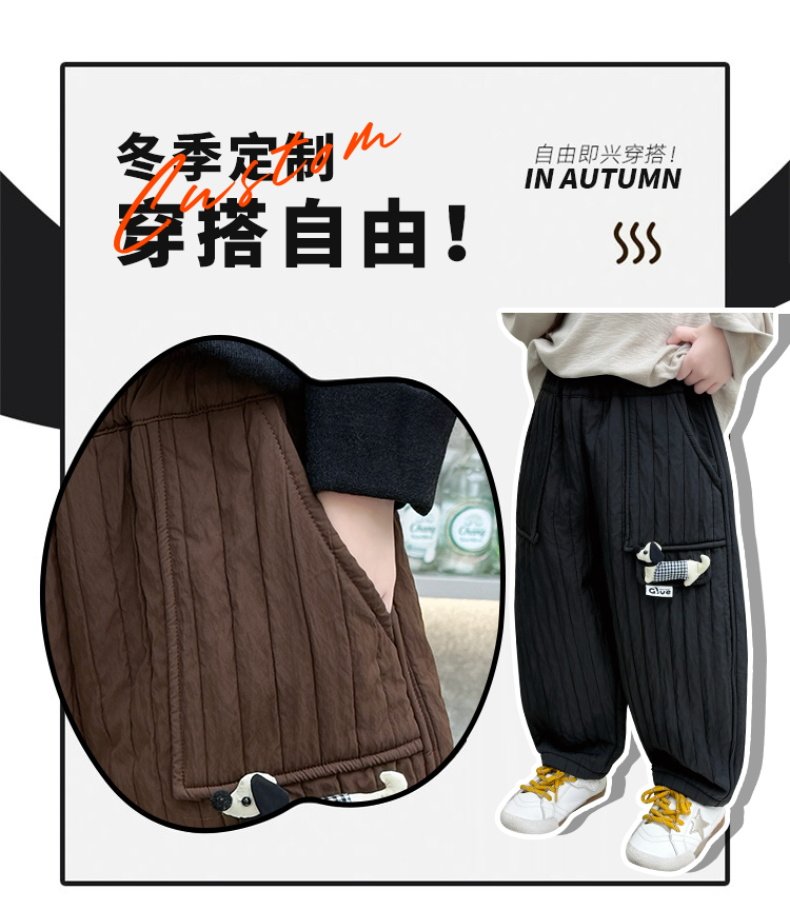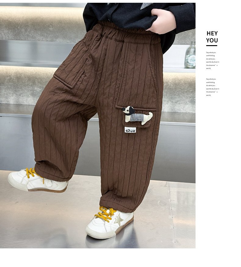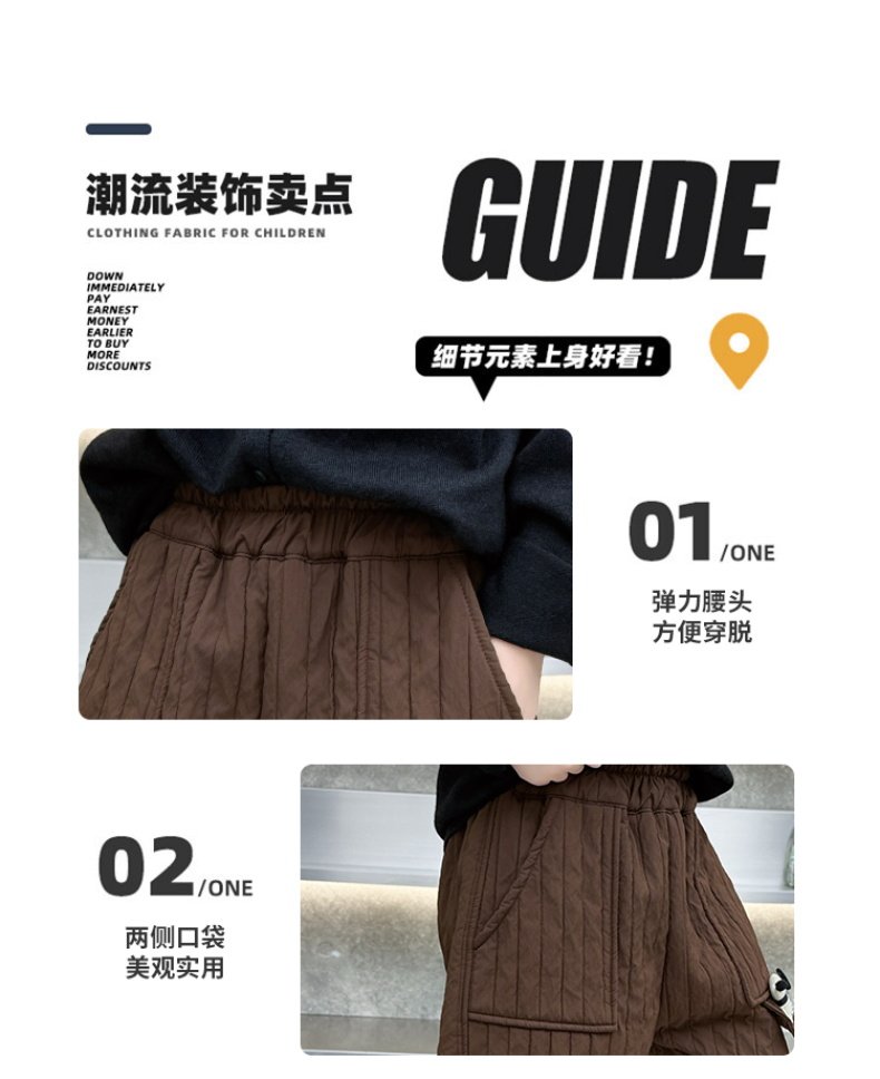 Boys' Fleece-Lined Pants Winter Wear 2025 New Children's Winter Cotton Pants Thickened Casual Scimitar Pants for Little Boys