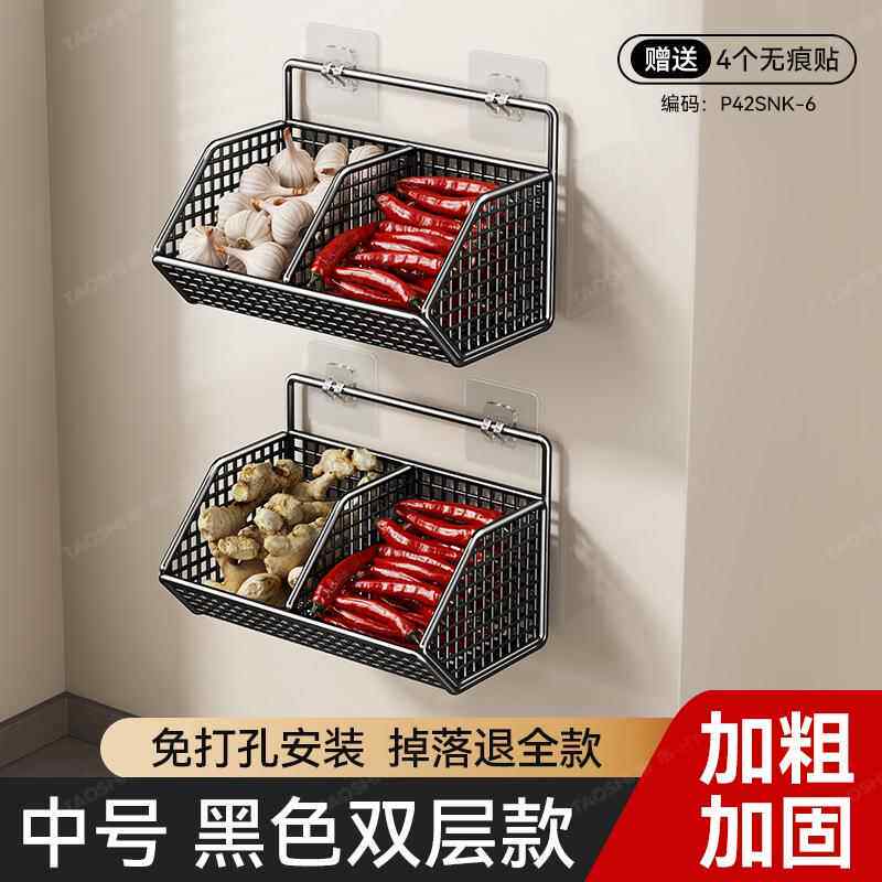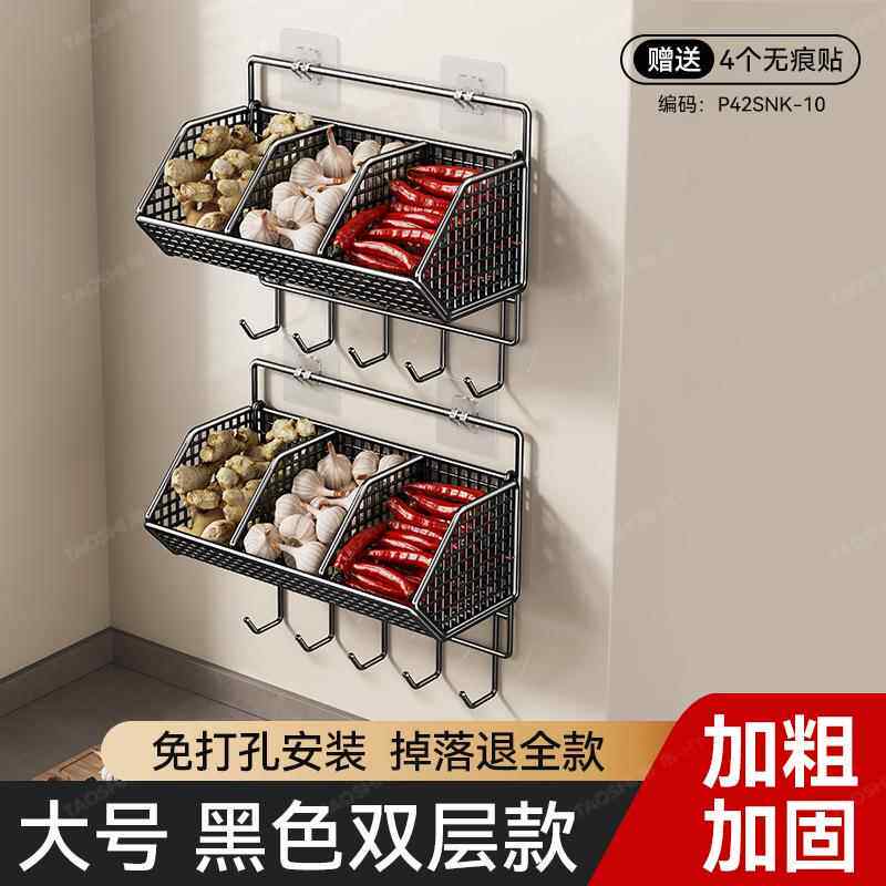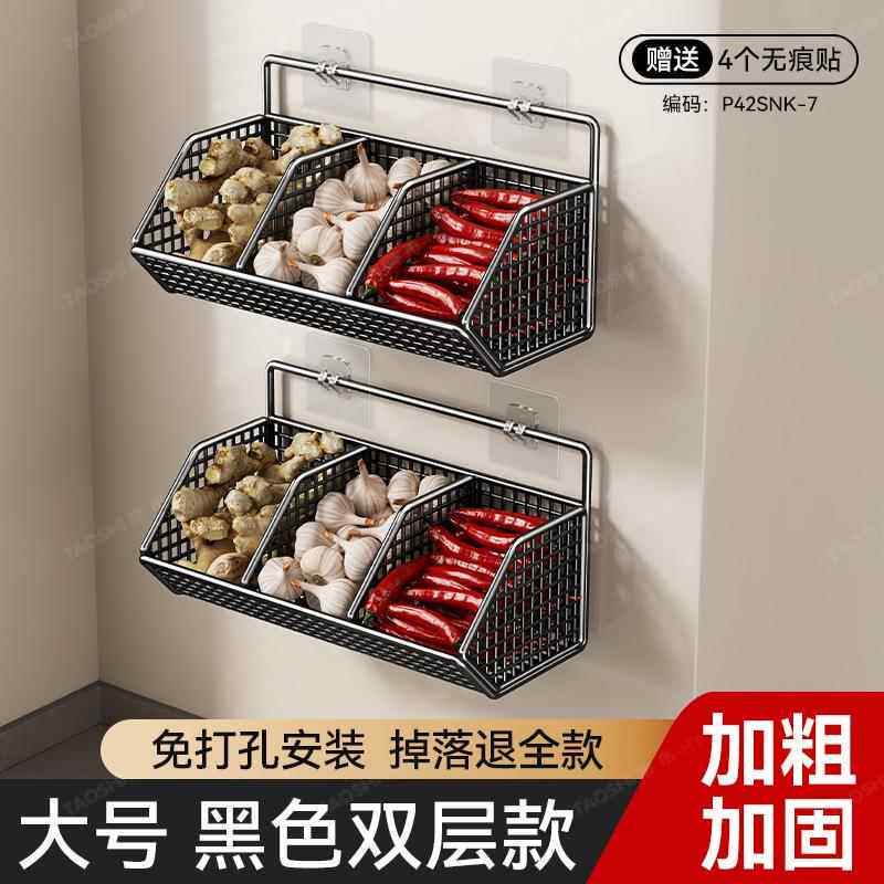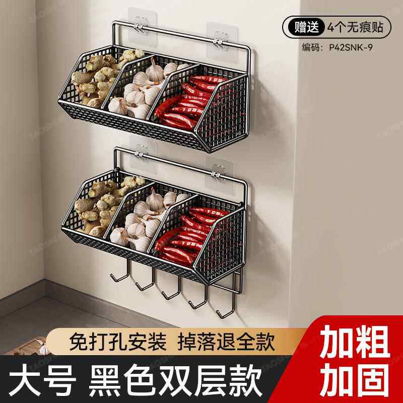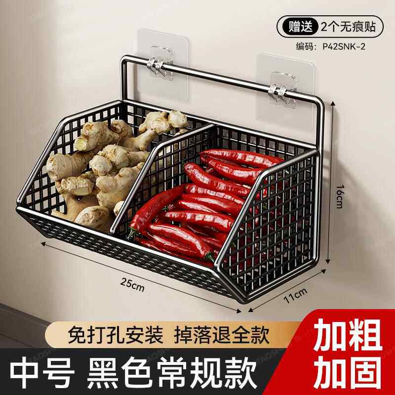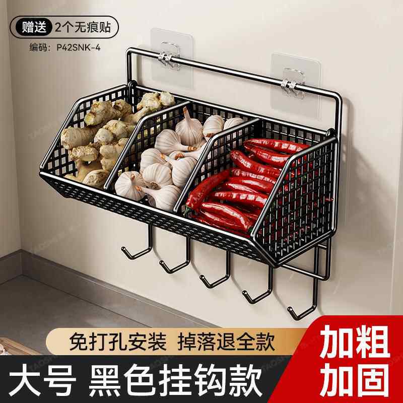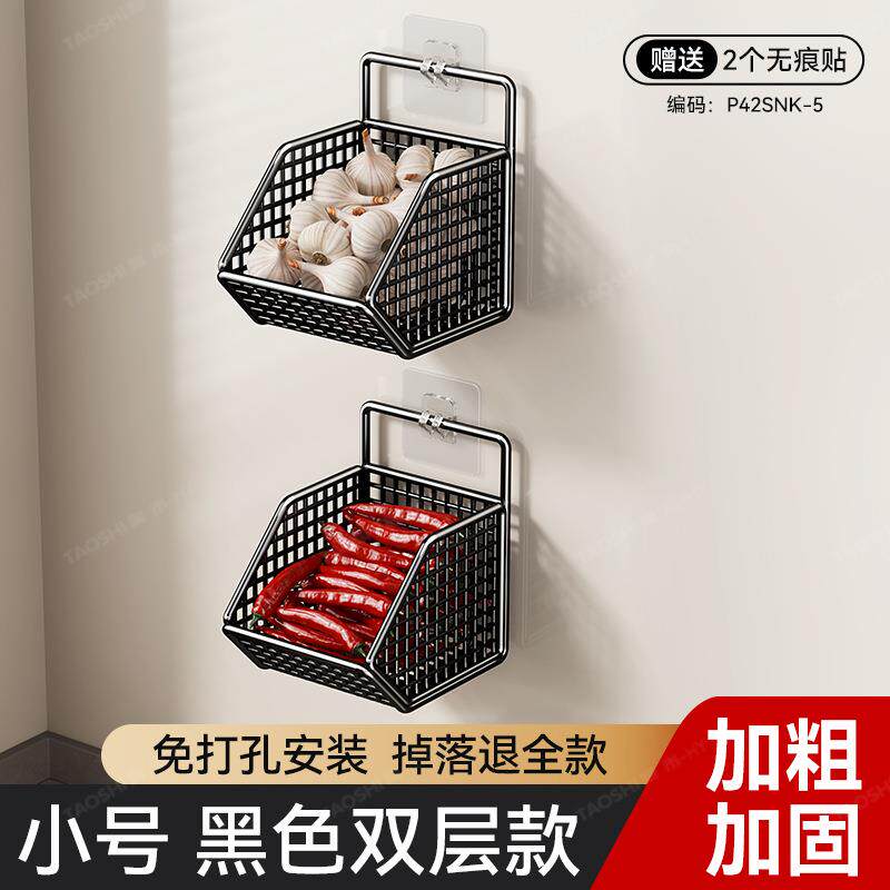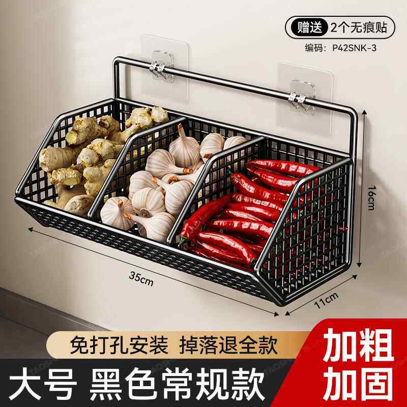 Kitchen onion, ginger and garlic storage basket without punching storage rack wall-mounted inclined thickened storage multi-functional hanging basket