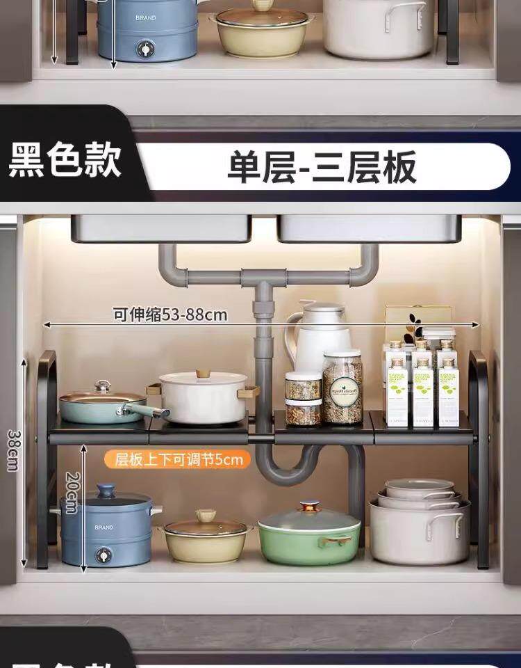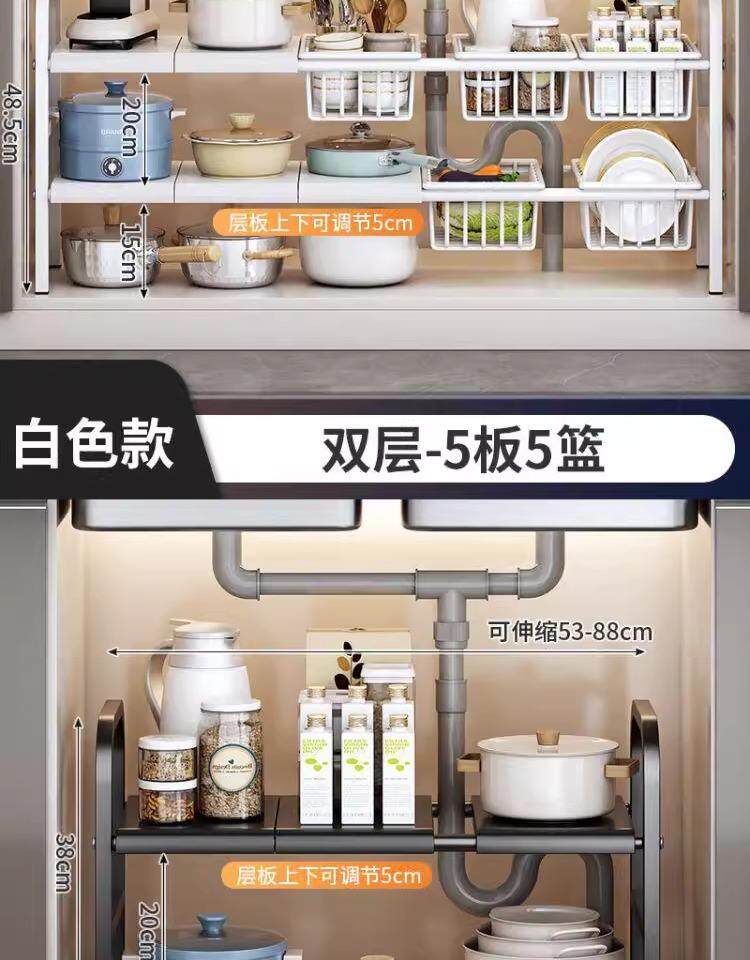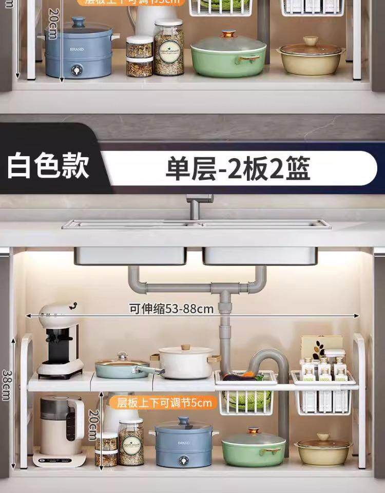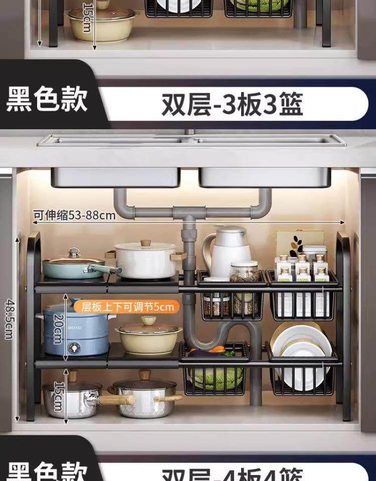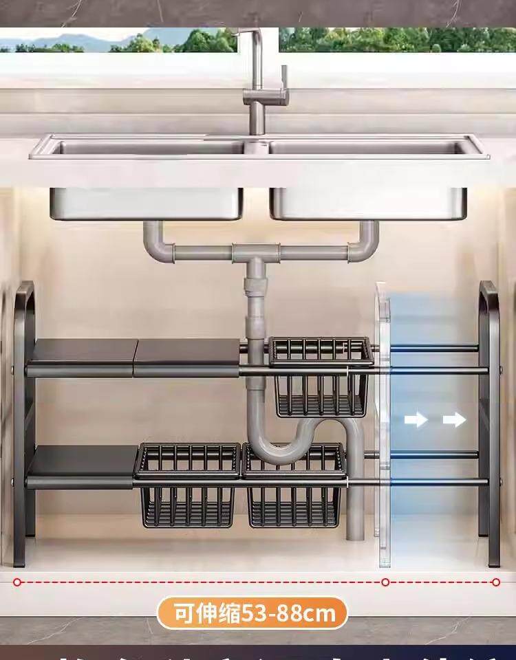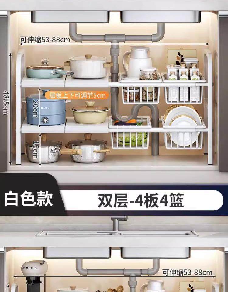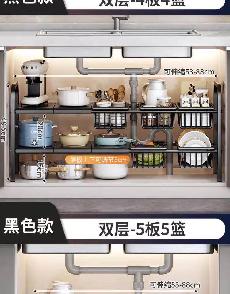 The sink renovation is completed! 2025 new kitchen retractable sink storage rack cabinet layered storage rack