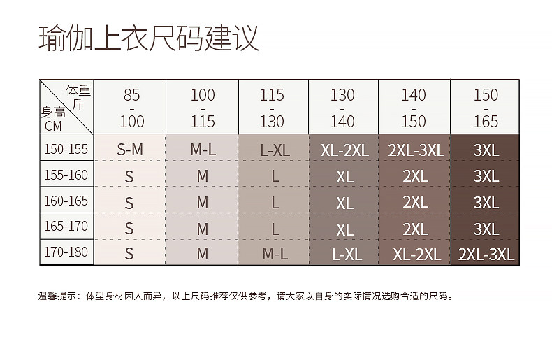 China (cm) 160-165/84-86 165-170 / 88-90 167-172 / 92-96 168-173 / 98-102 170-176 / 106-110