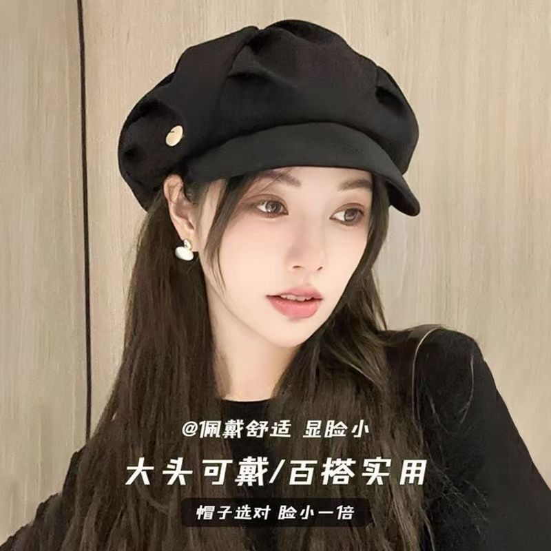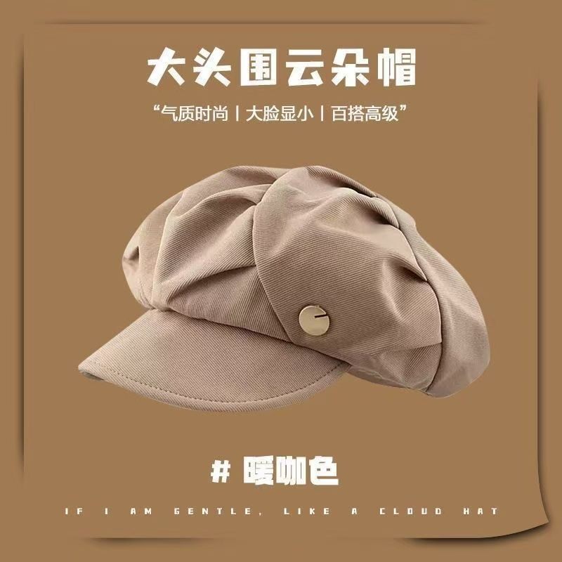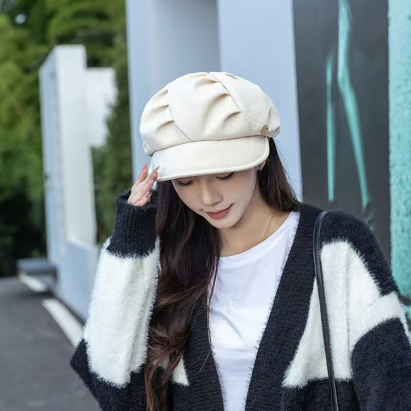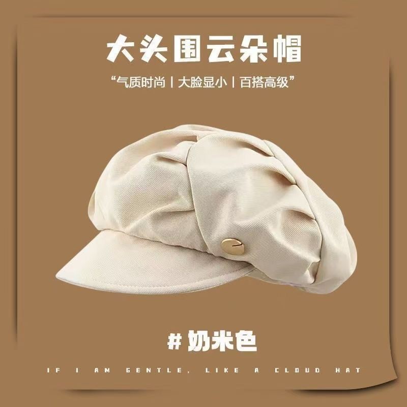 Octagonal Hat That Makes the Face Look Smaller, Painter's Travel Korean Style Beret, New Casual Cloud-Like Versatile Hat with Pleats