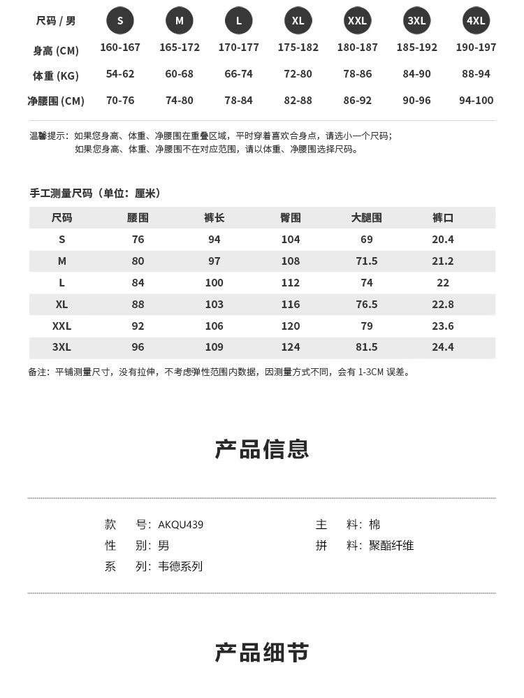Outseam (cm) 99 cm 101.5 cm 104 cm 106.5 cm 109 cm