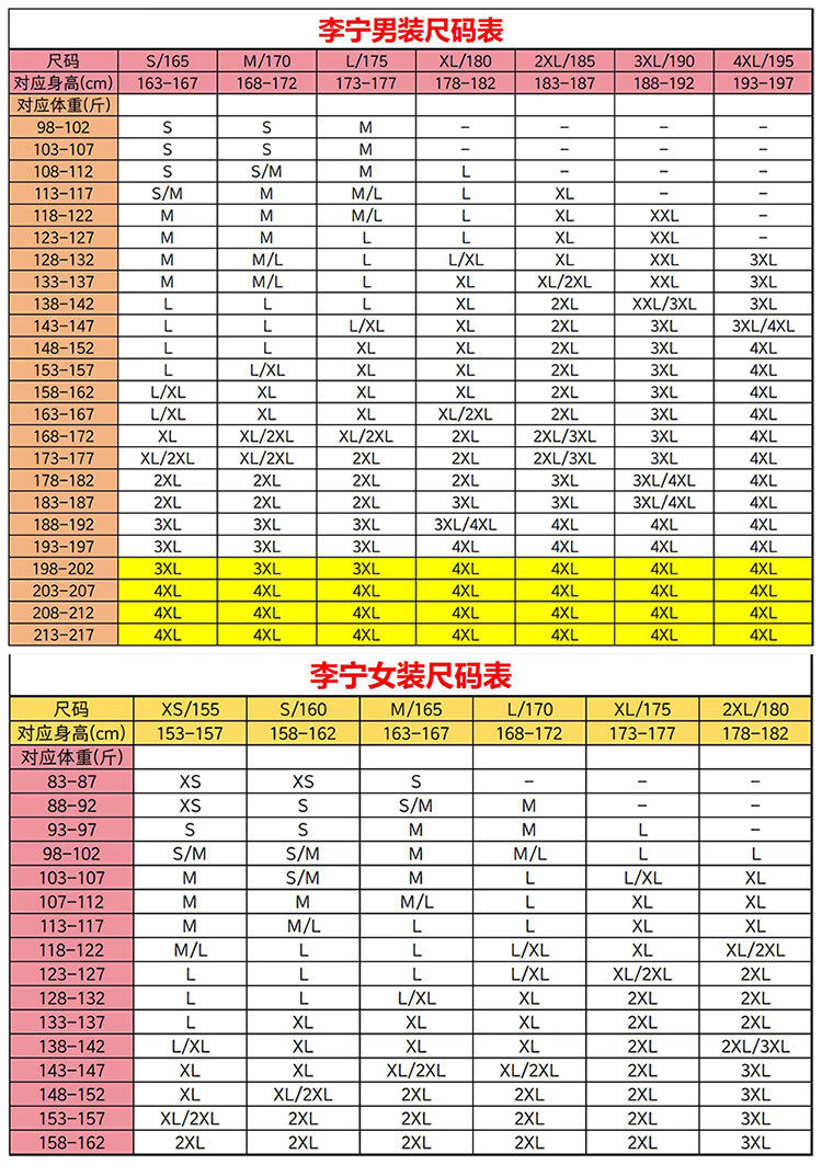 China (cm) 160-165/84-86 165-170 / 88-90 167-172 / 92-96 168-173 / 98-102 170-176 / 106-110