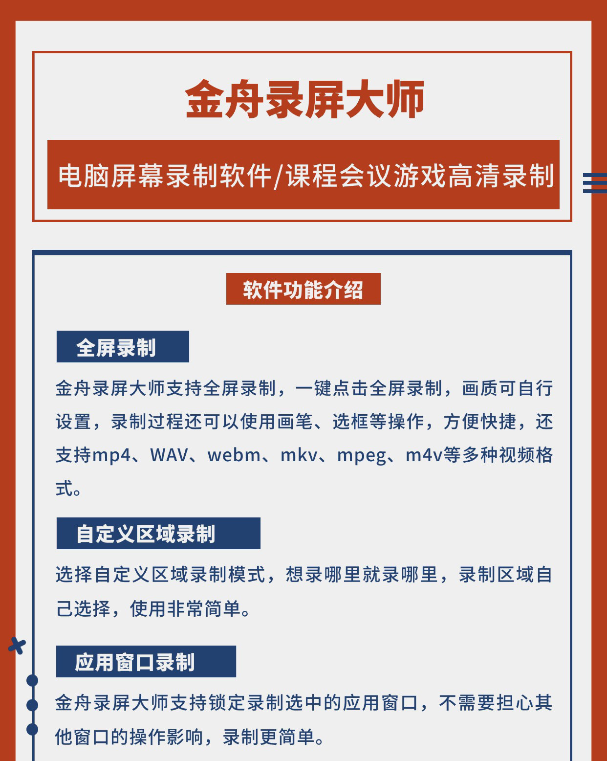 Jinzhou Screen Recording Master Member Computer Screen Recording Software Customizes the Recording of High-Definition Screens from Windows and Cameras