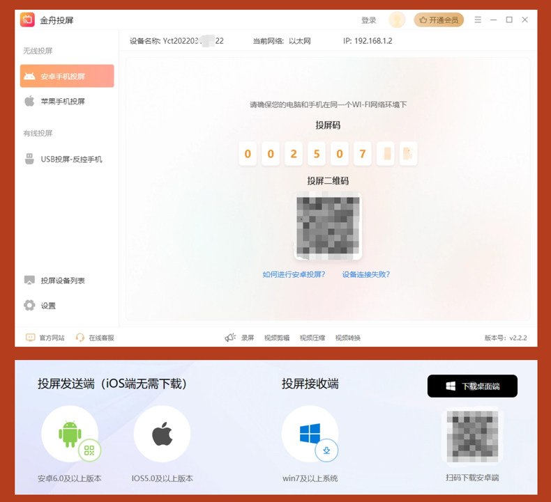 Jinzhou Screen Casting Membership Computer Software for Android and Apple Phones: High-Definition Screen Casting from Phone to Computer, and Reverse Control from Android Phone to Computer