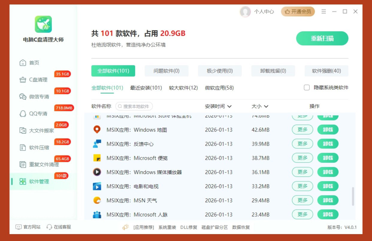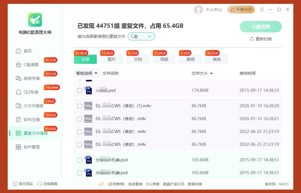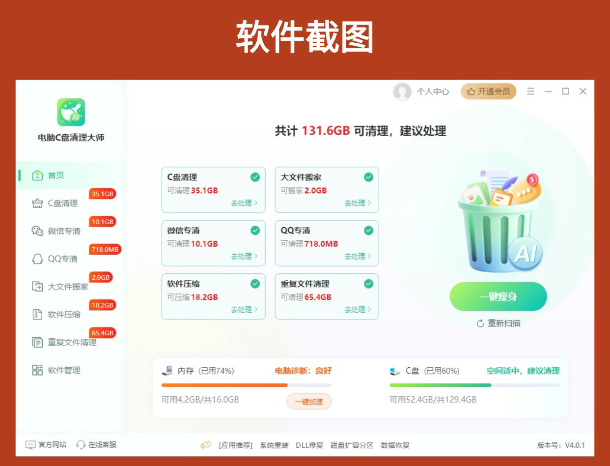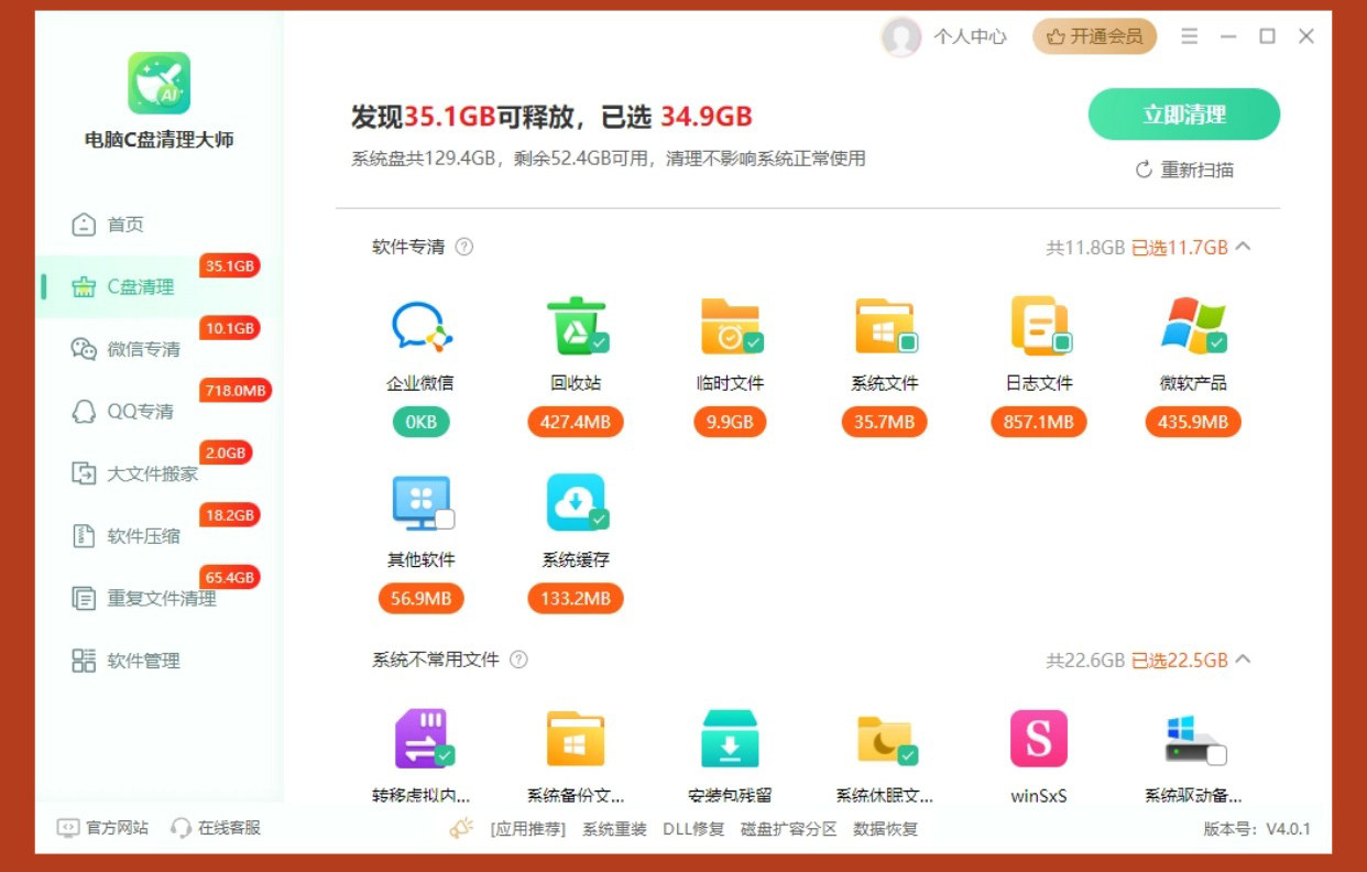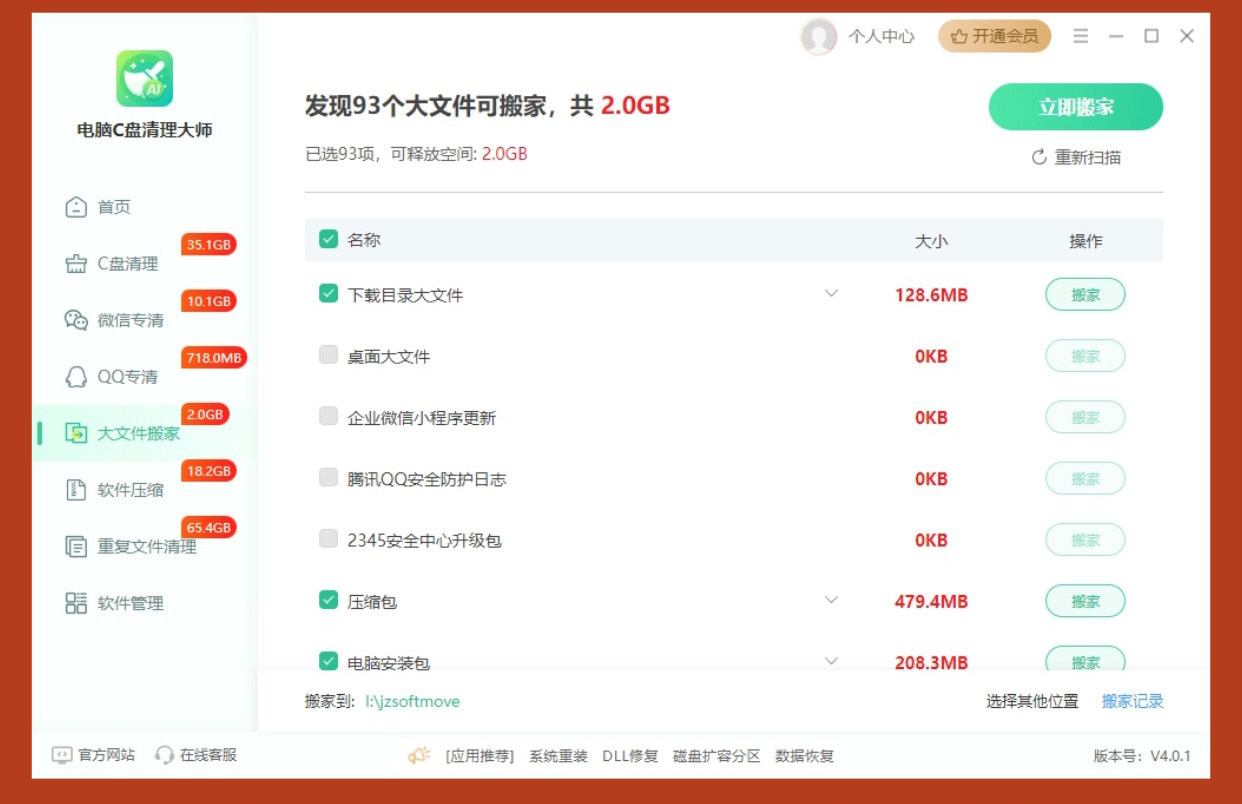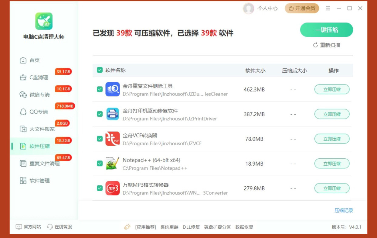 Jinzhou Computer C Drive Cleaner Master Membership C Drive Junk File Cleaning Software Duplicate File Deletion Tool File Transfer