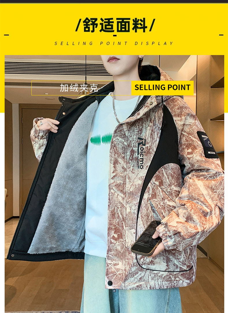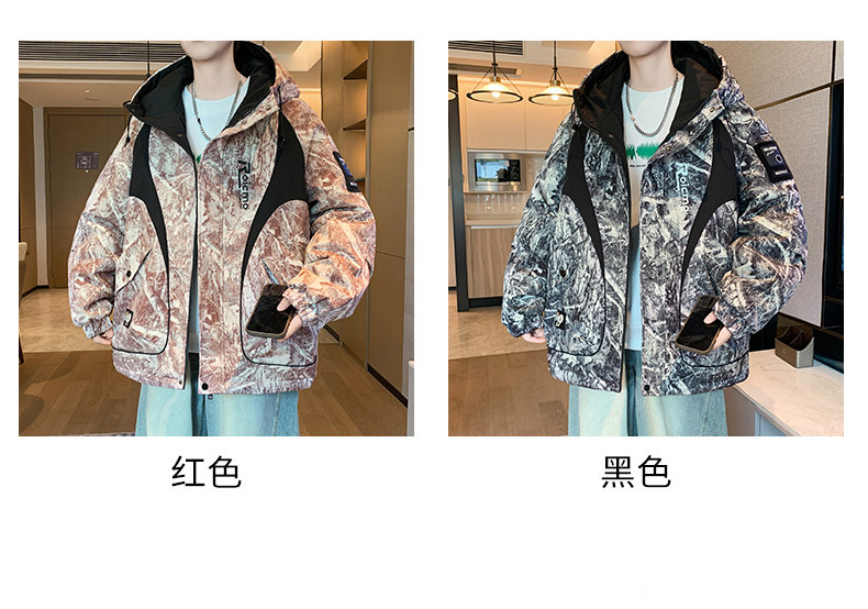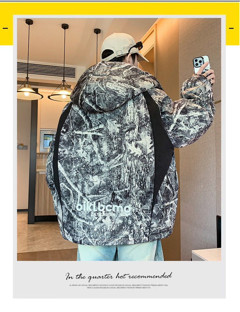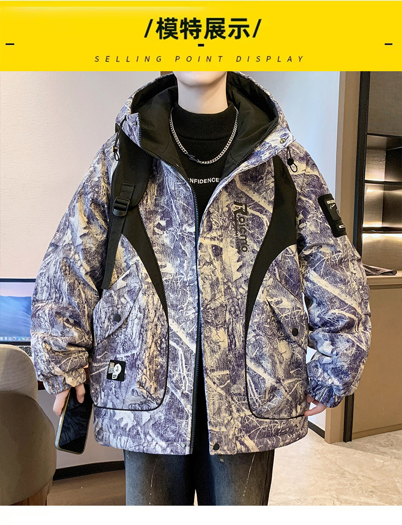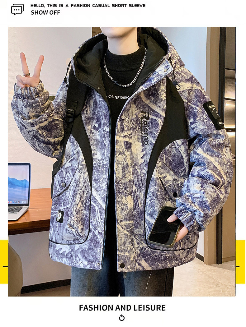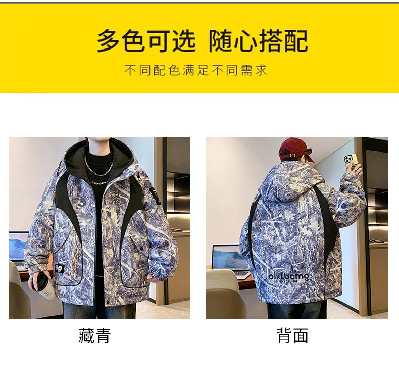 Plush jacket men's 2025 new autumn and winter thickened warm hooded cotton jacket American tie-dye style to overcome the trend