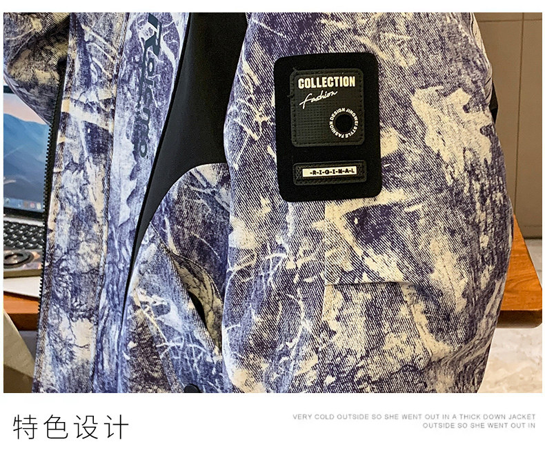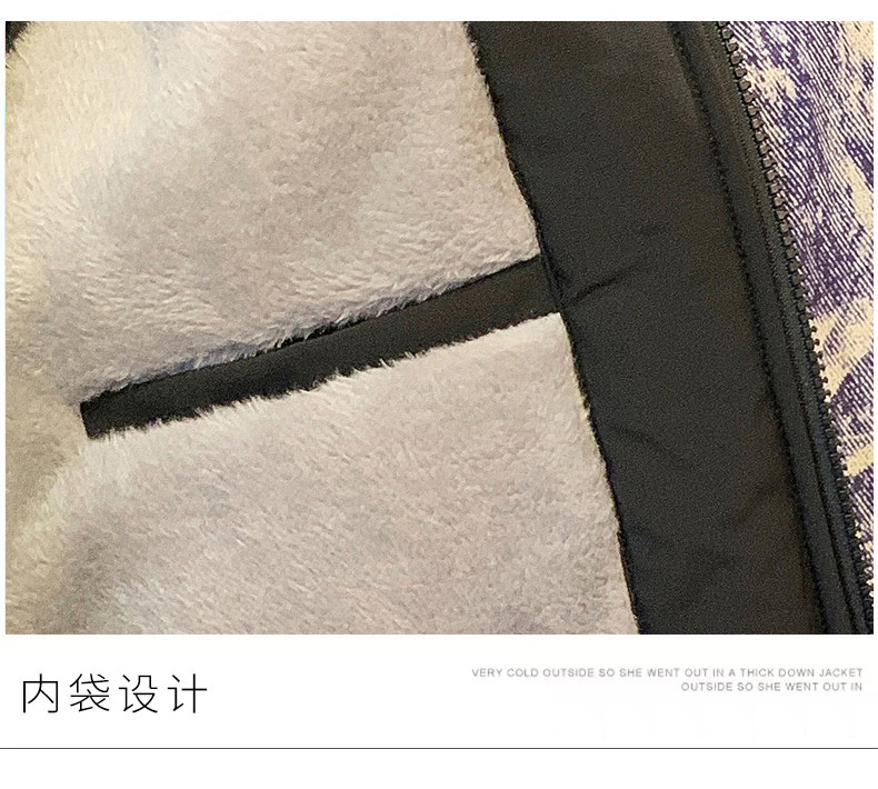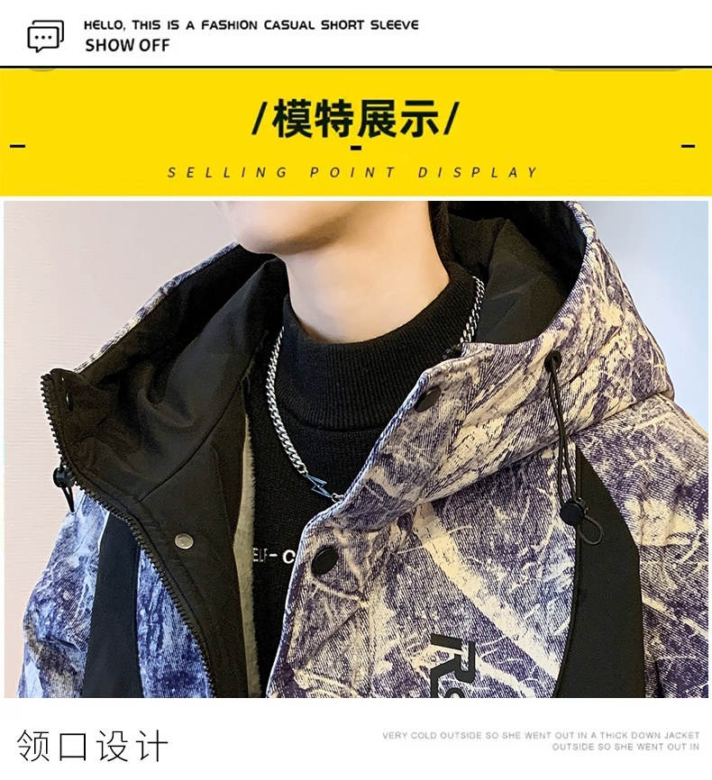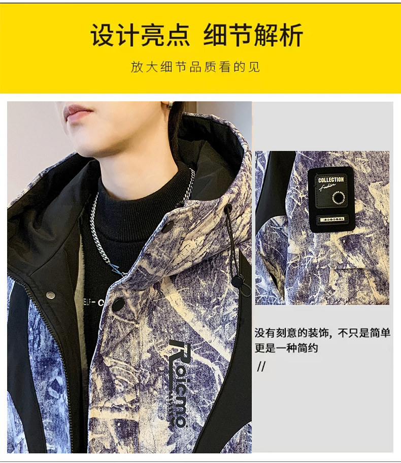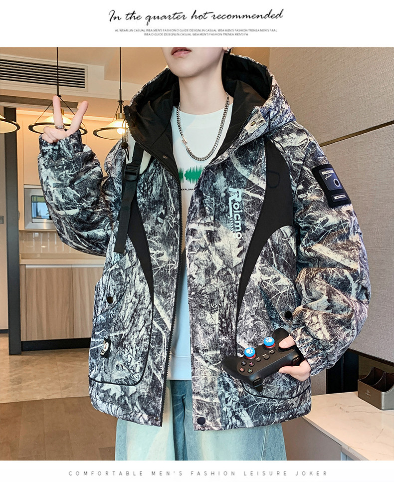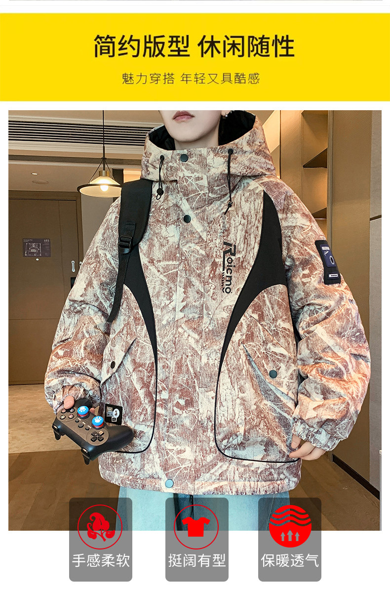 Plush jacket men's 2025 new autumn and winter thickened warm hooded cotton jacket American tie-dye style to overcome the trend
