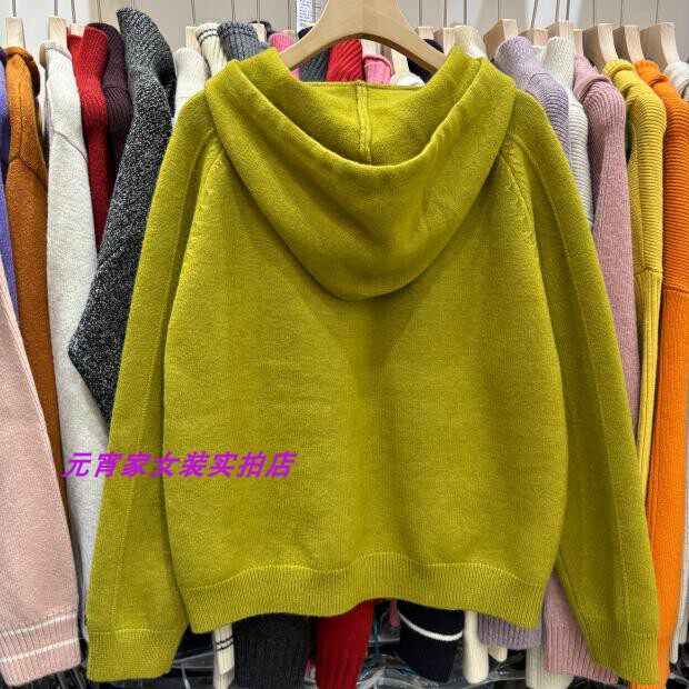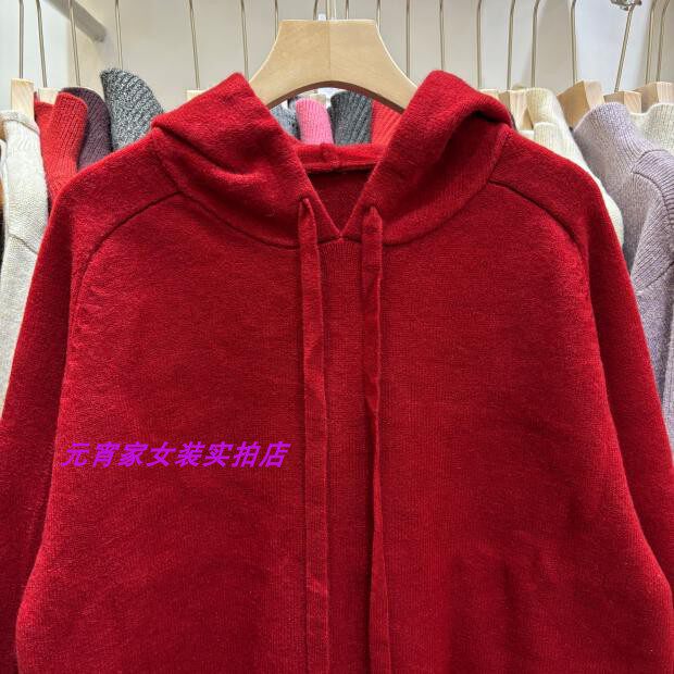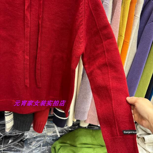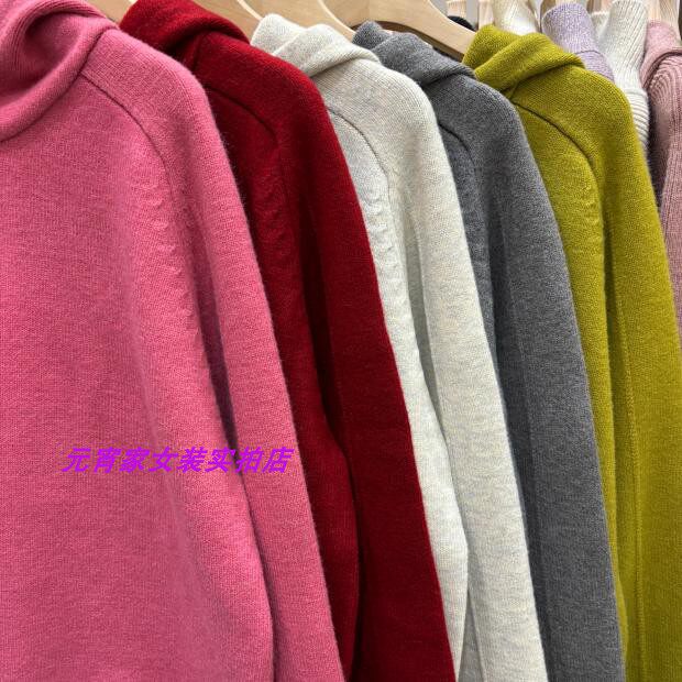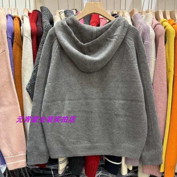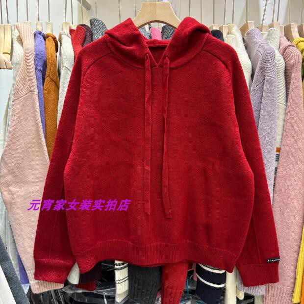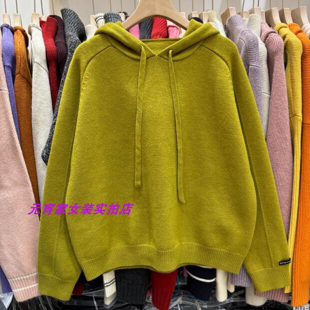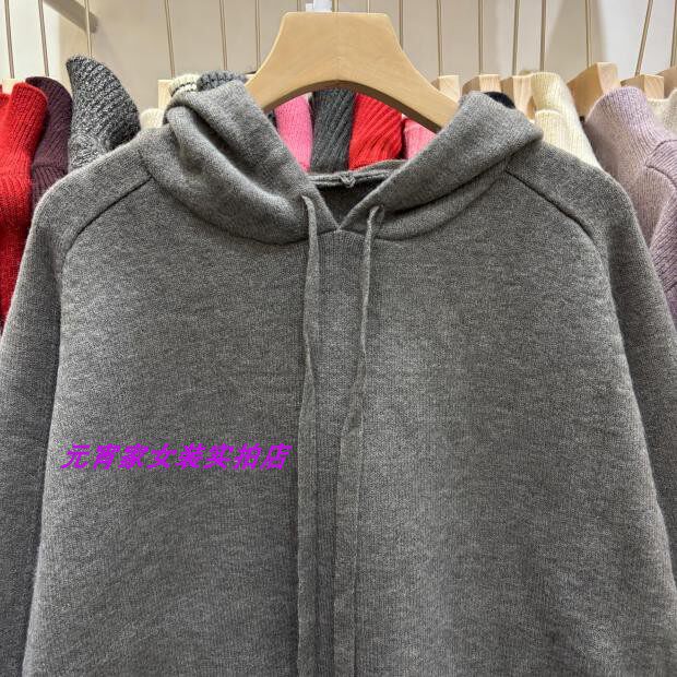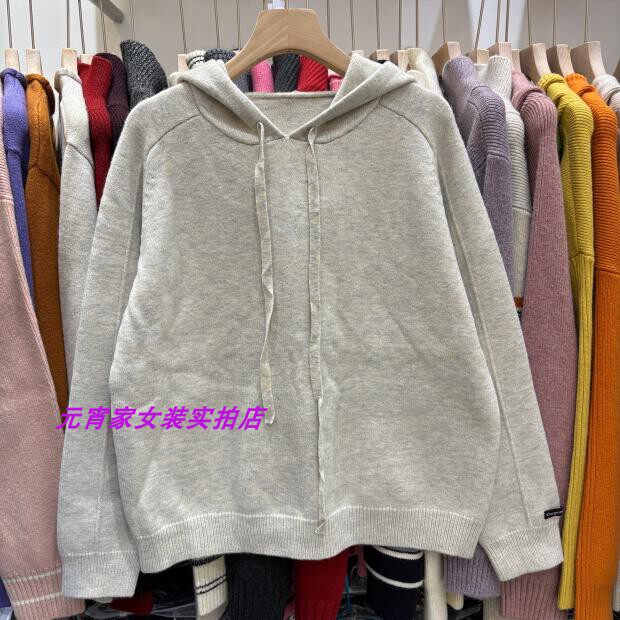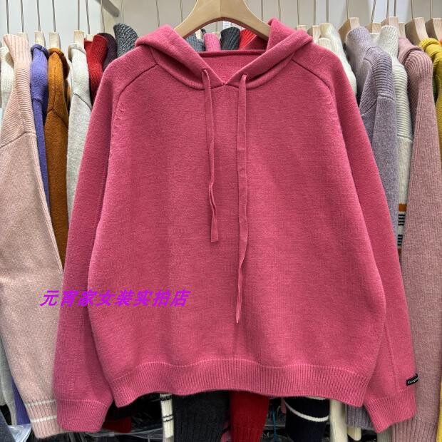 Autumn and Winter Style Hooded Pullover Sweater with Sleeve Patchwork Design and Solid Color Plain Hooded Blend Knit Top