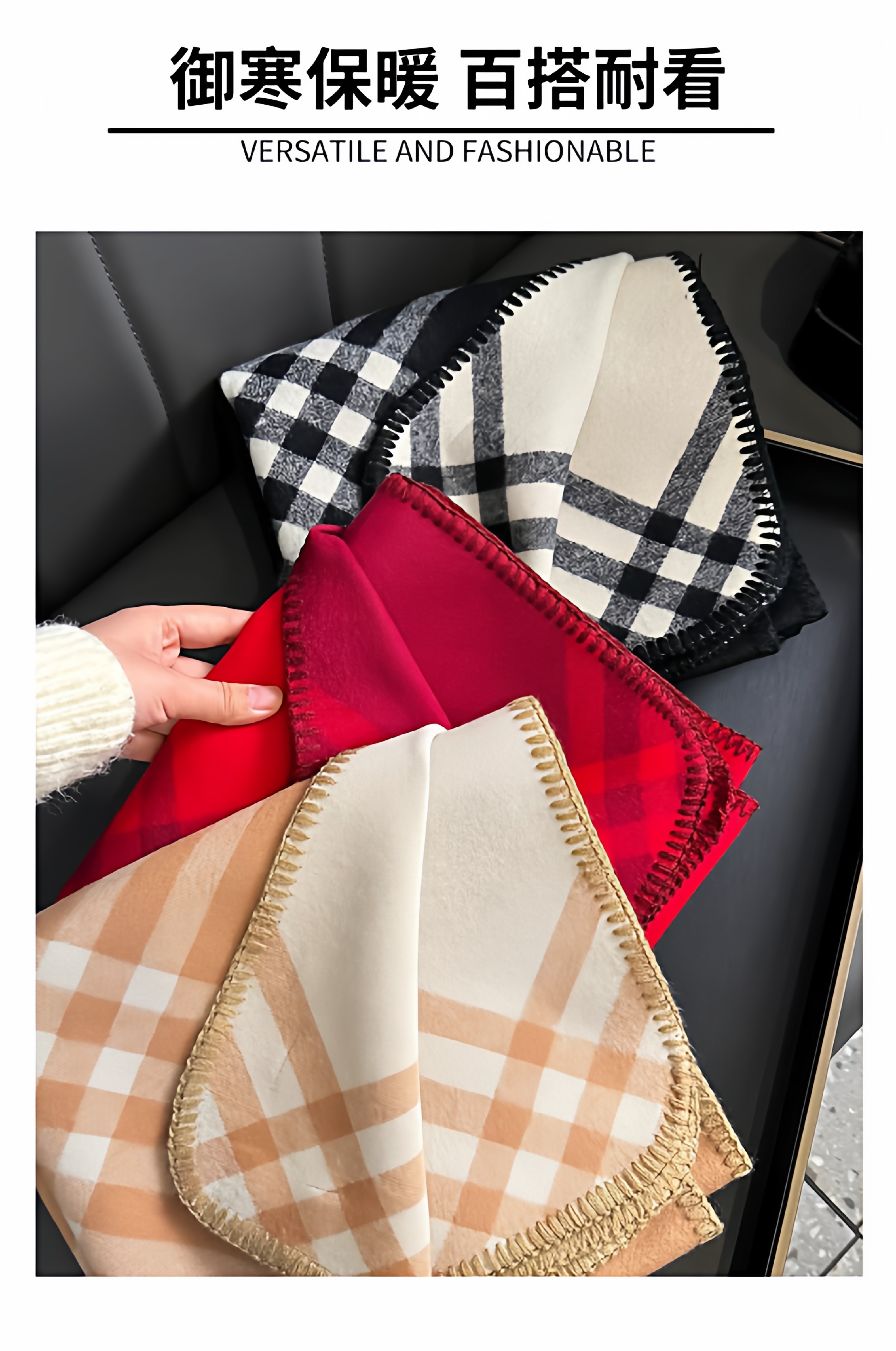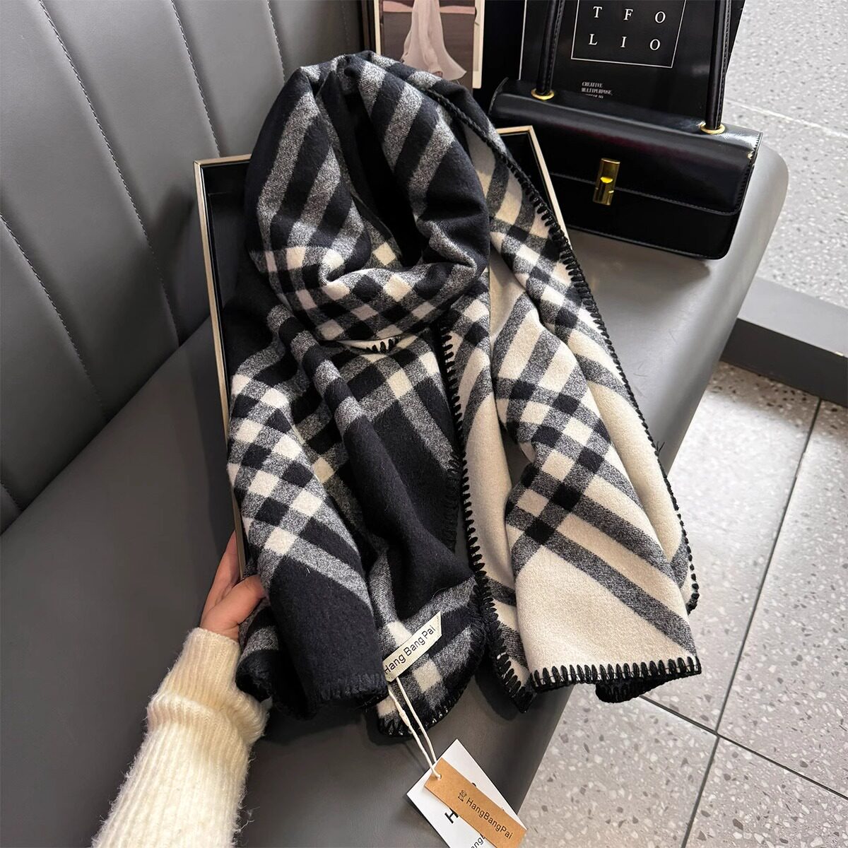 Scarves in the Same Style as Jun Ji-Hyun, Black and White Striped Plaid, Women's Winter High-End 2025 New Faux Cashmere Shawl and Neck Warmer