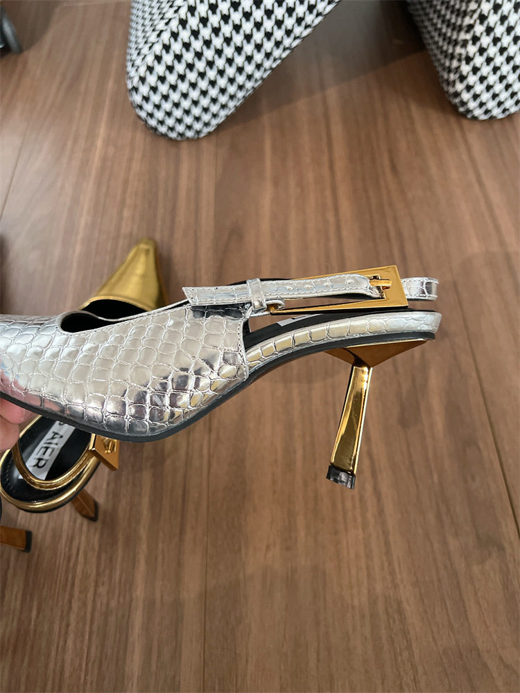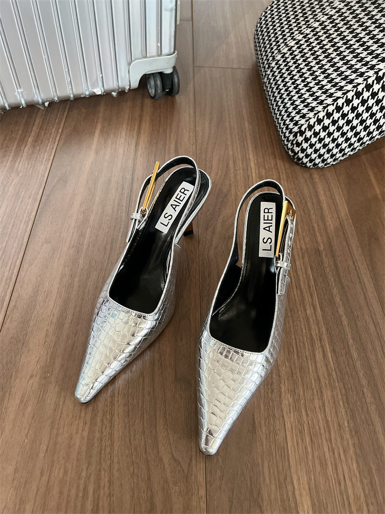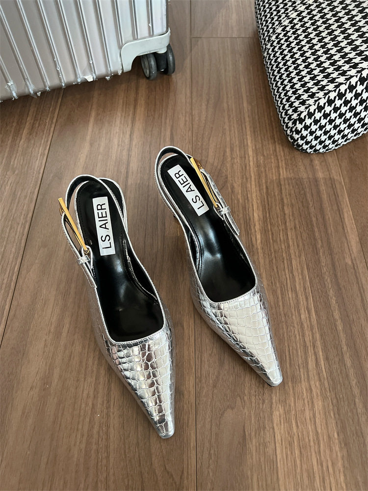 Summer New Patent Leather Crocodile Pattern Sandals, Feminine Stiletto Heels, Small Square Toe, Elegant High Heels, Backless Single Shoes