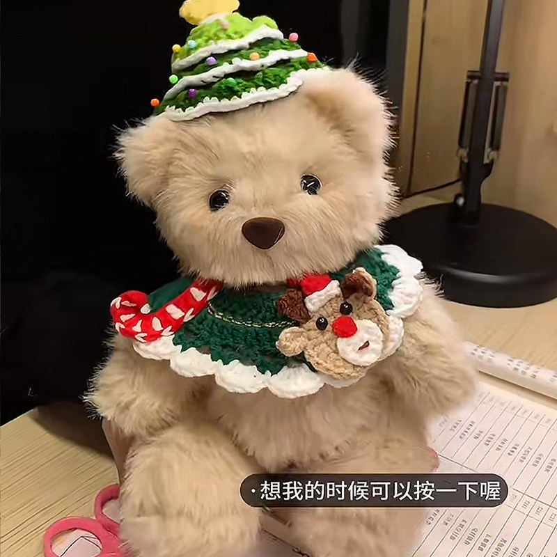 Christmas Bear Handmade DIY Plush Toy, Cute Stuffed Doll with Recording Function, Self-Made Qixi Gift for Girlfriend