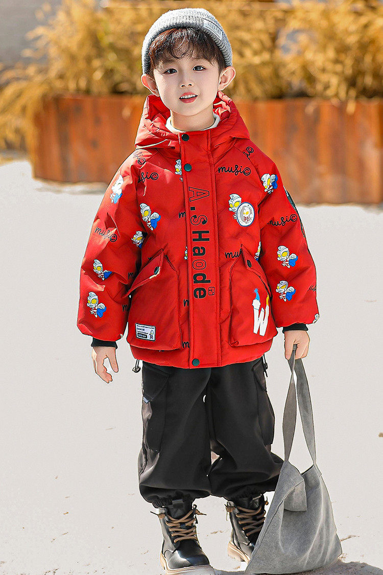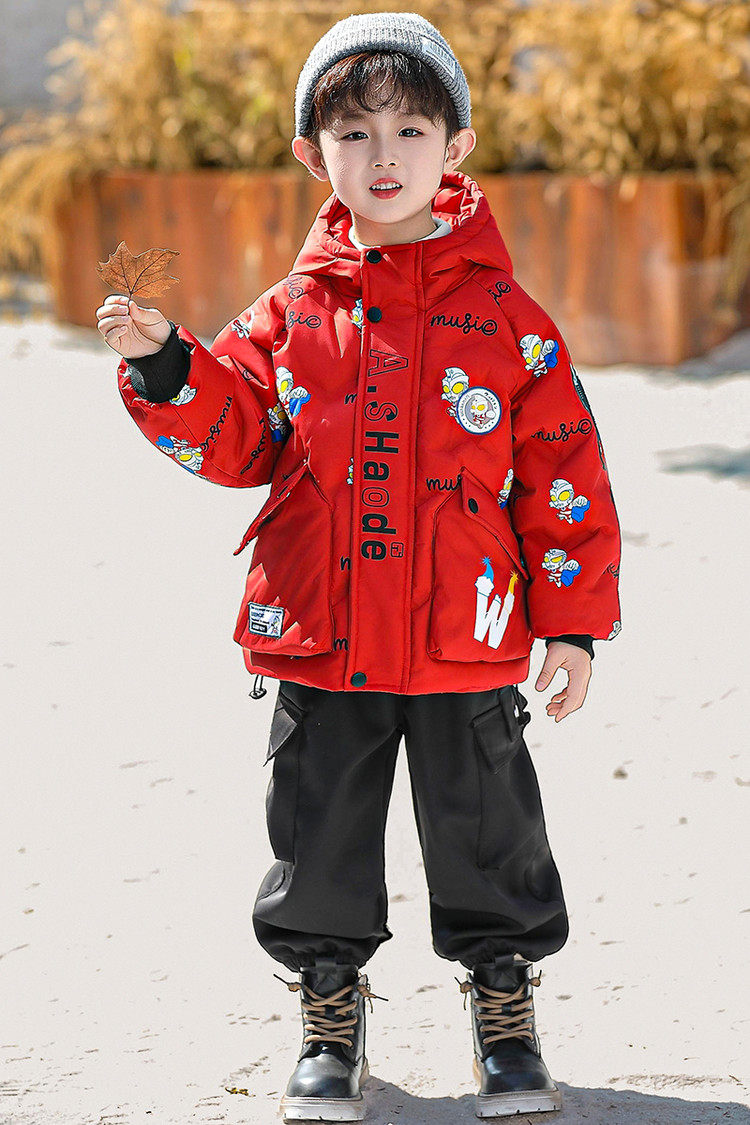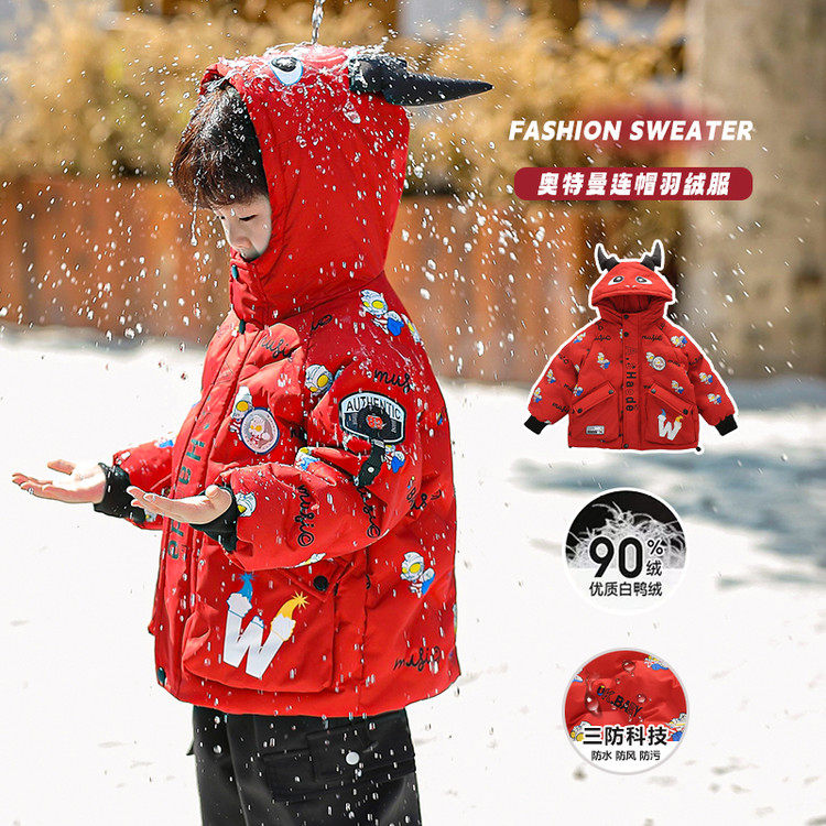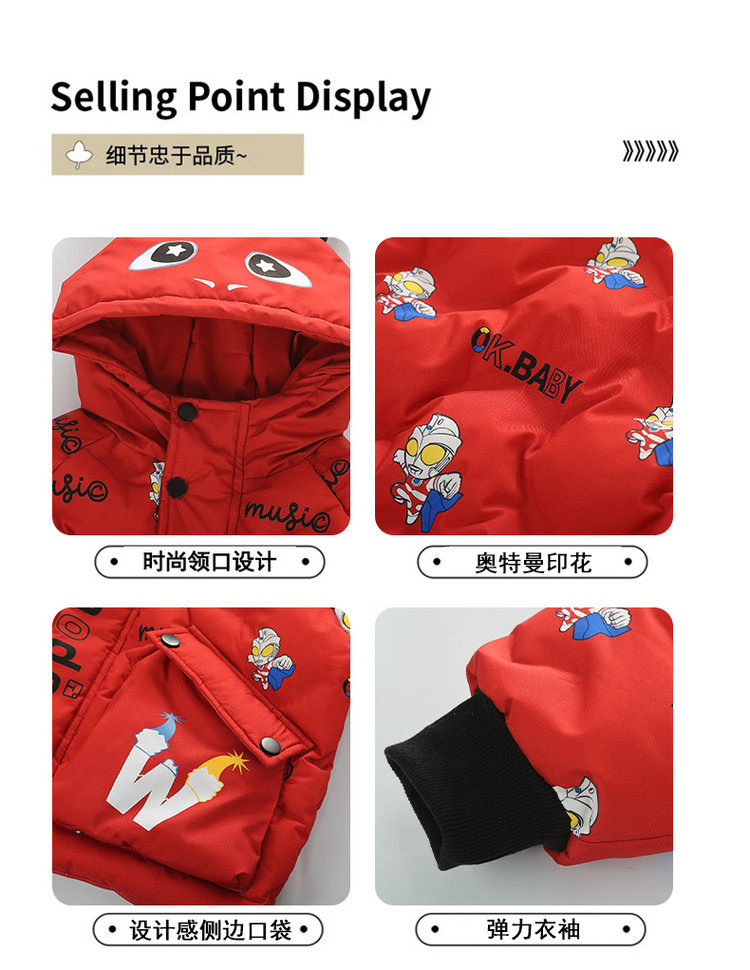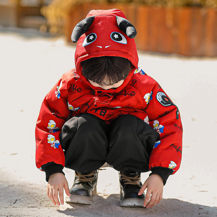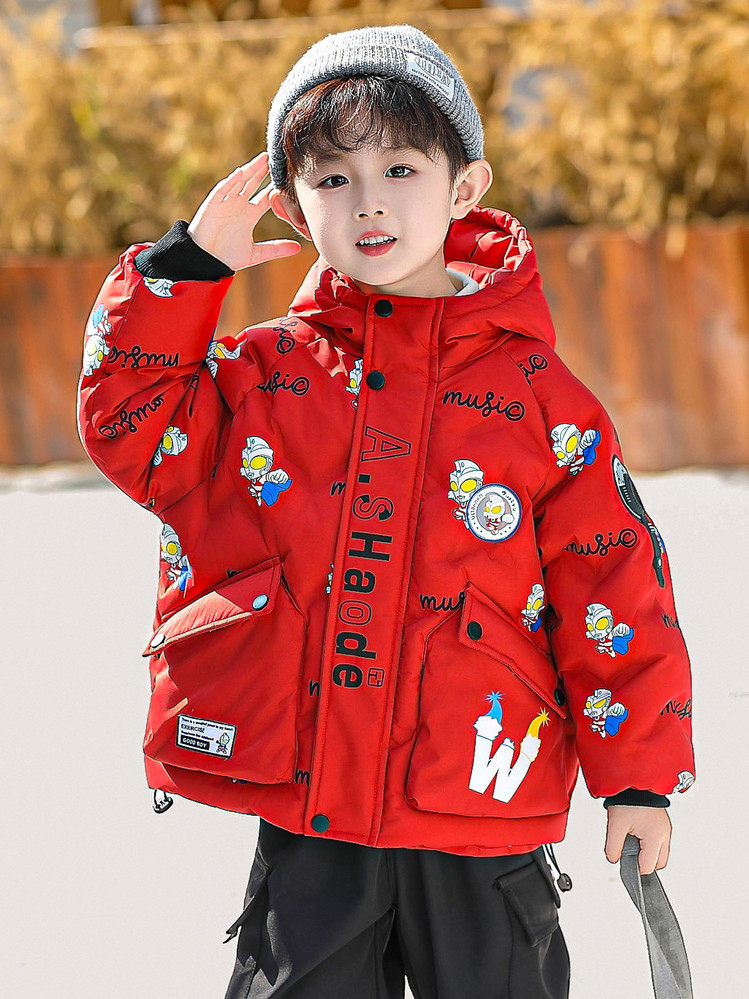Ultraman Boys' down Jacket Winter Coat Cool and Stylish 2025 New Year Children's Red Thickened Jacket