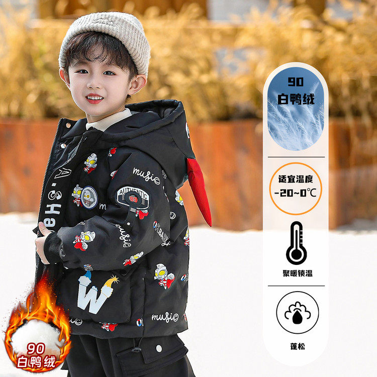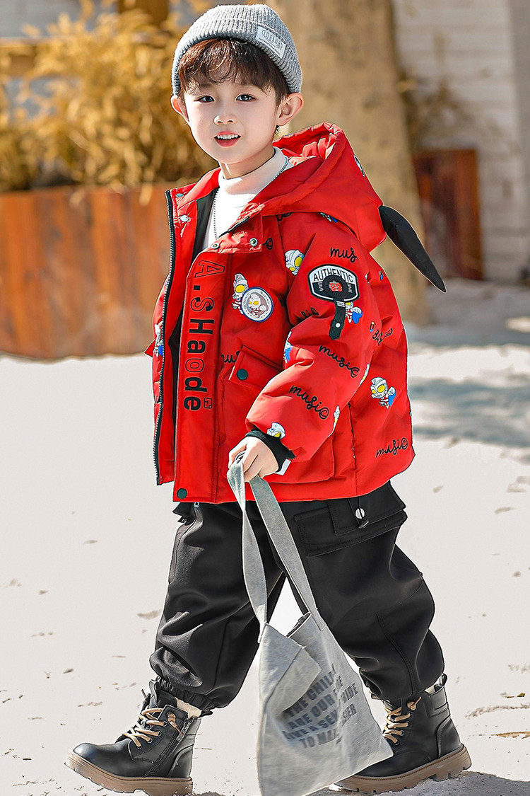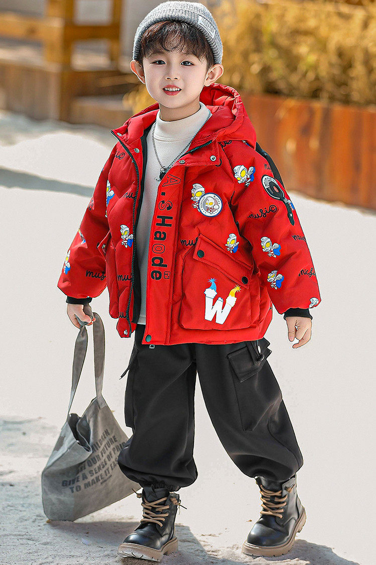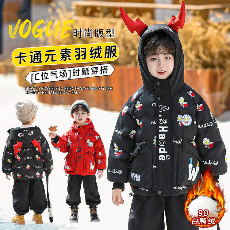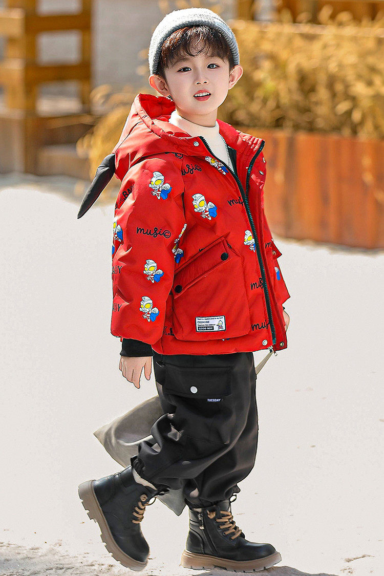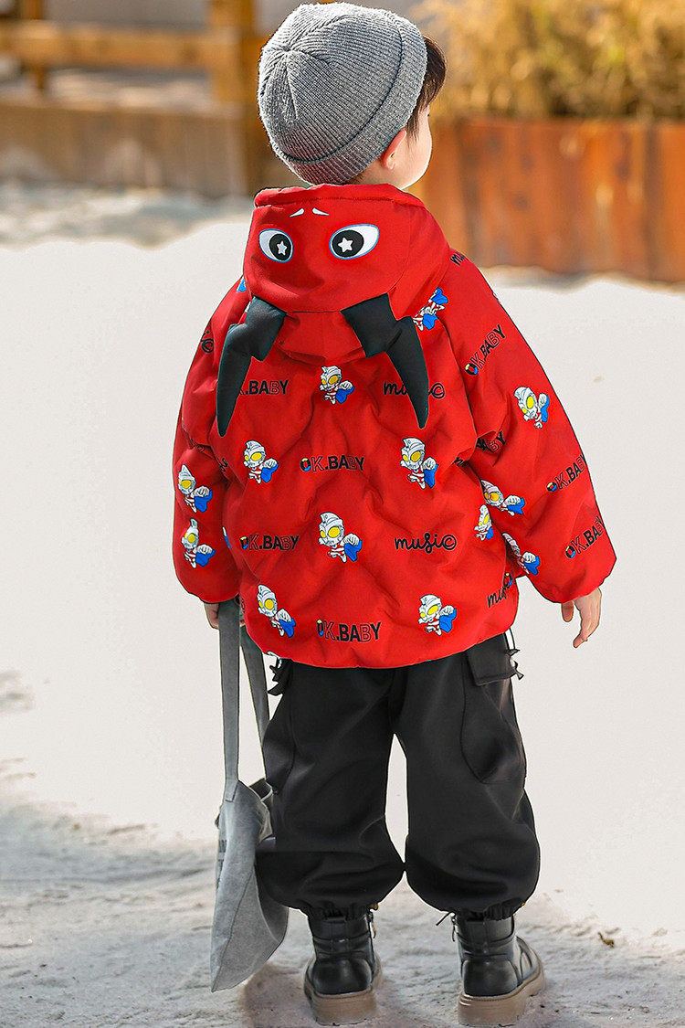 Ultraman Boys' down Jacket Winter Coat Cool and Stylish 2025 New Year Children's Red Thickened Jacket