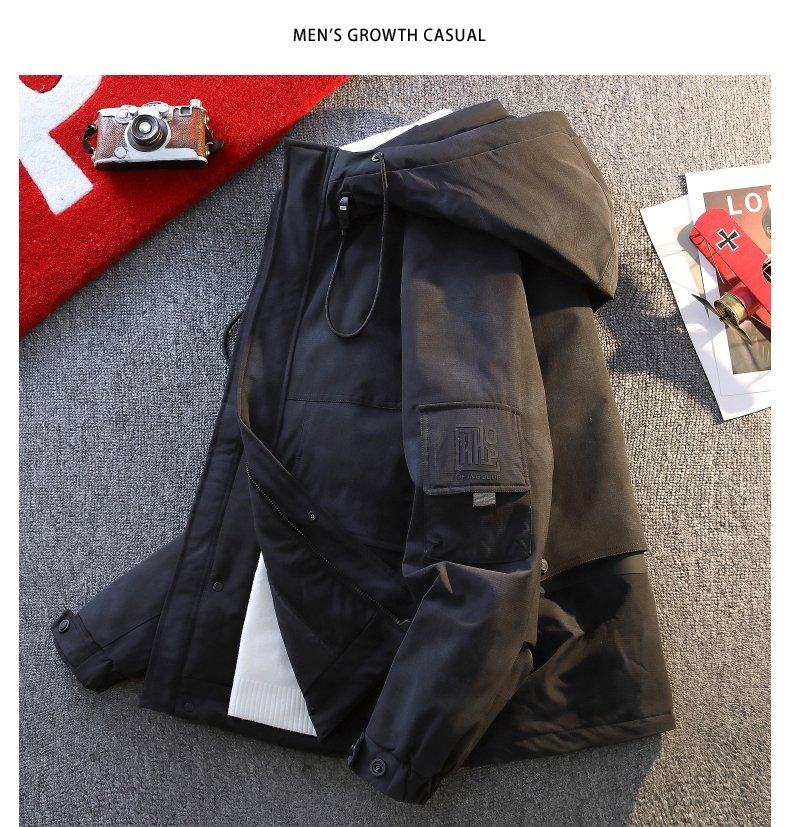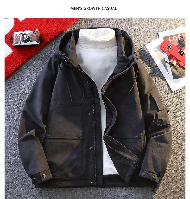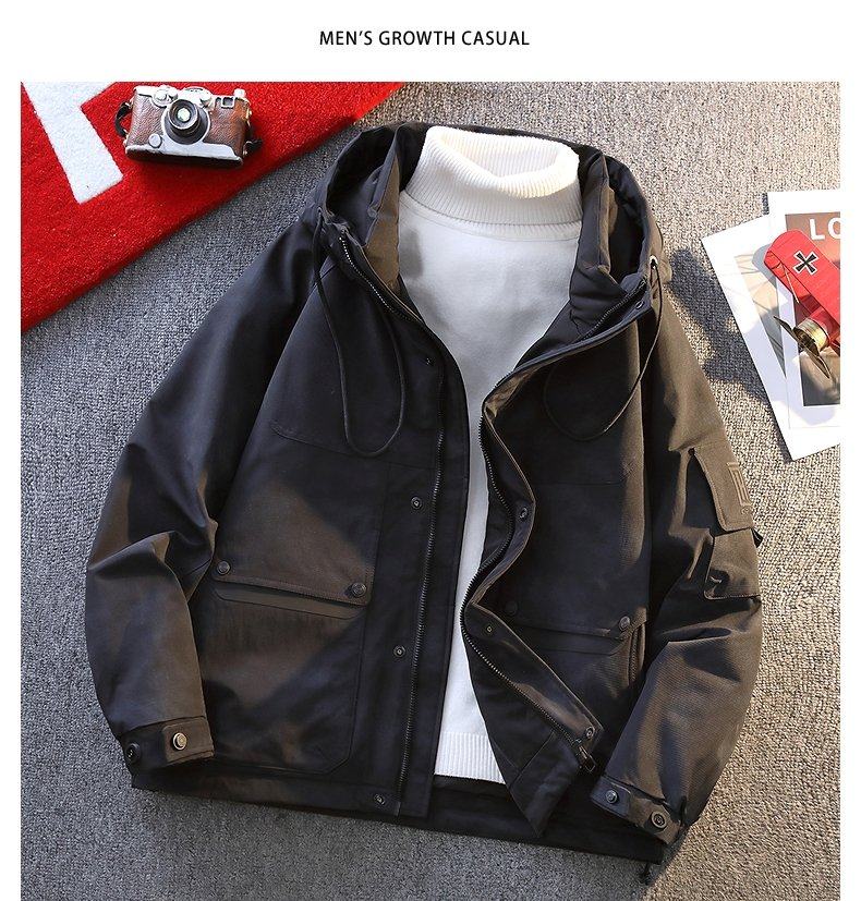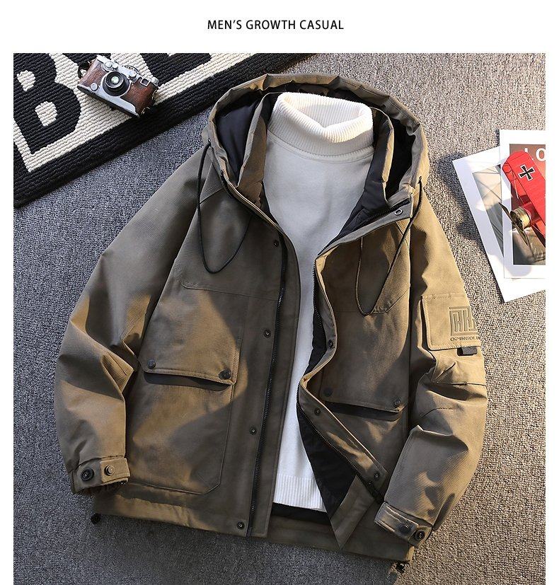 American style workwear down jacket for men and teenagers winter new outdoor hooded cold-proof clothing for boys 90 velvet warm bread jacket