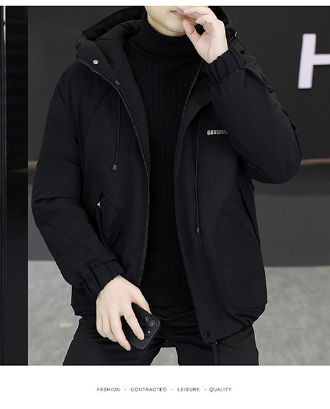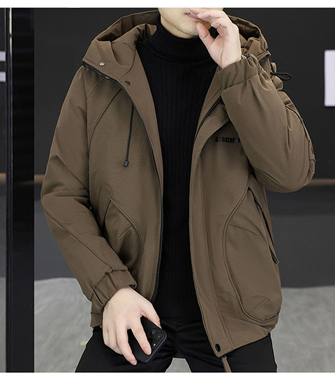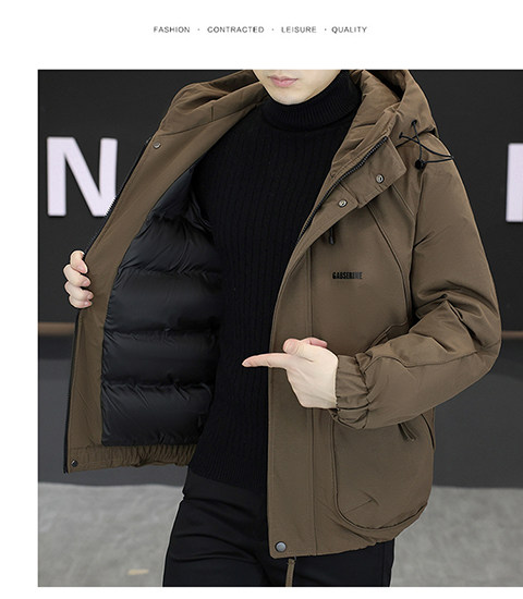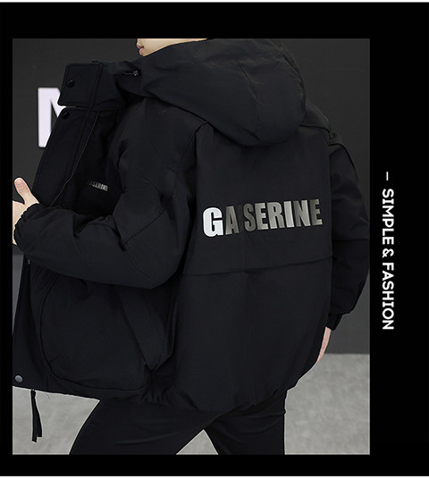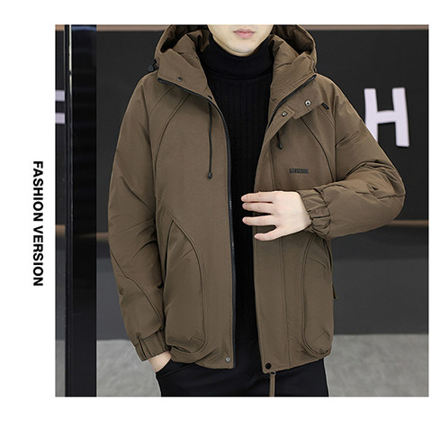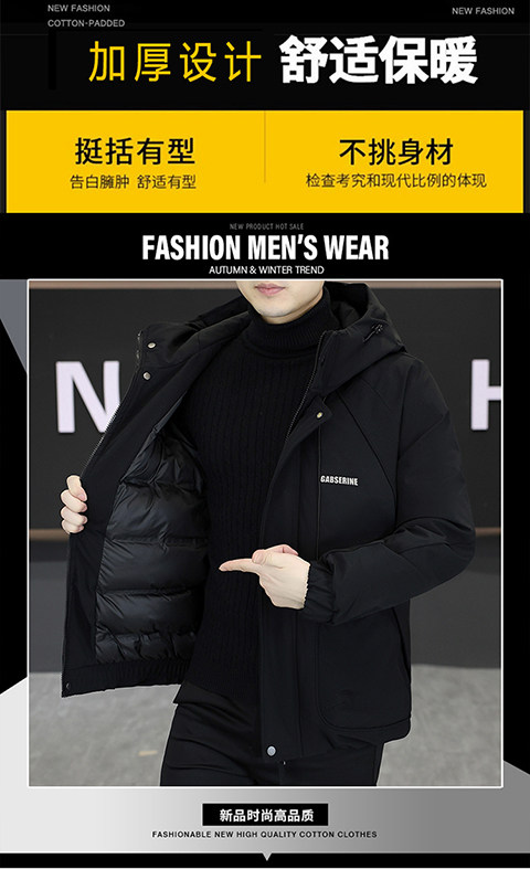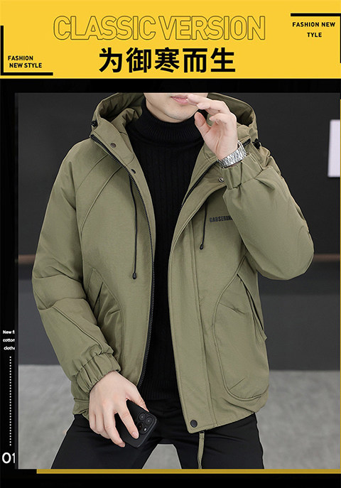 2025 Winter New Short Hooded Workwear Thickened Cotton Jacket Men's Youth Warm Jacket Cotton Jacket
