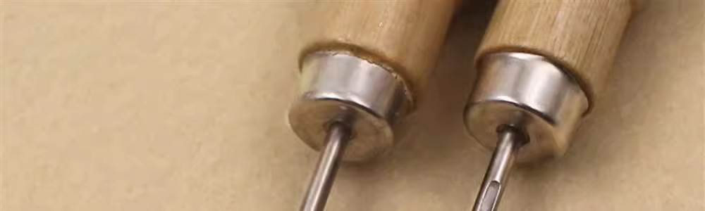 Wooden Handle Awl, Stainless Steel Pointed Hook Needle for Sewing Shoe Soles, Shoe Repair Hook Needle, Shoe Repair Tool with Hole, Straight Awl