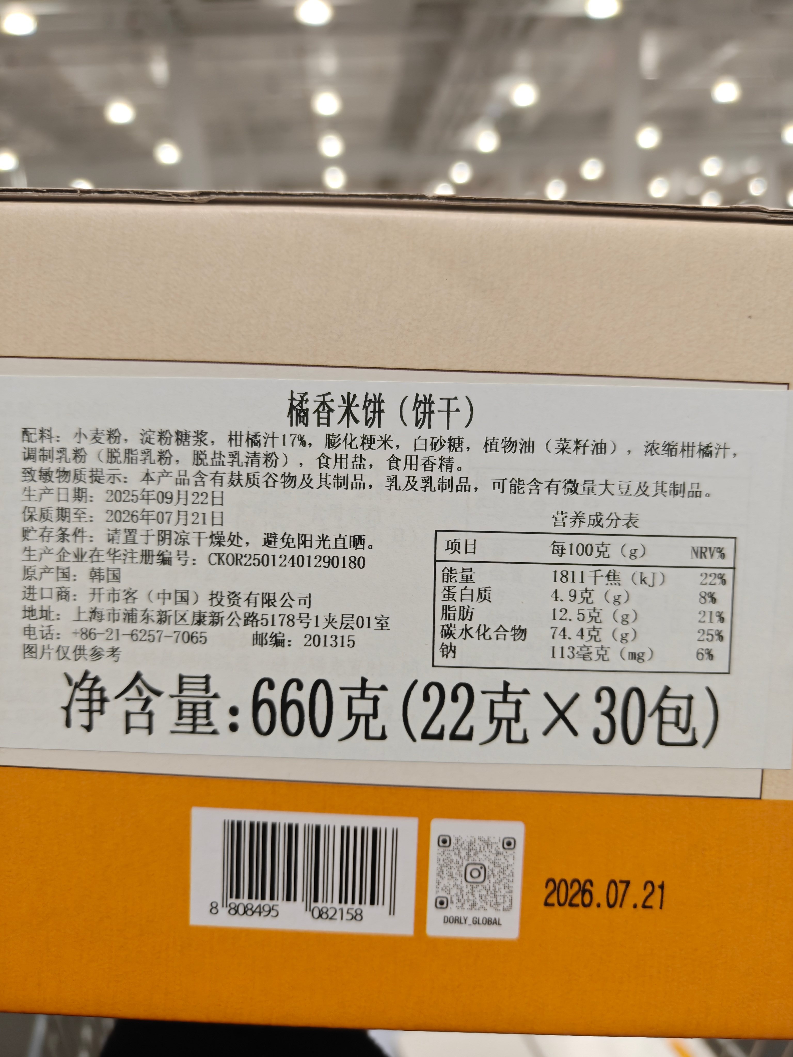 Costco Dorly Korean Orange Rice Crackers 660g Orange Flavored Crispy Biscuits 30 Packs Imported Snacks