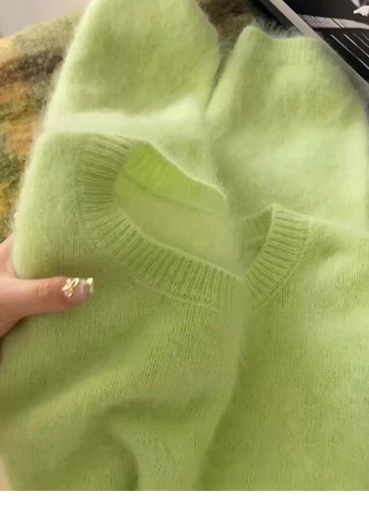 White Mohair Round-Neck Sweater for Women, Autumn and Winter Korean Style, Lazy Loose Soft Knitwear, Outerwear, Fluffy Top