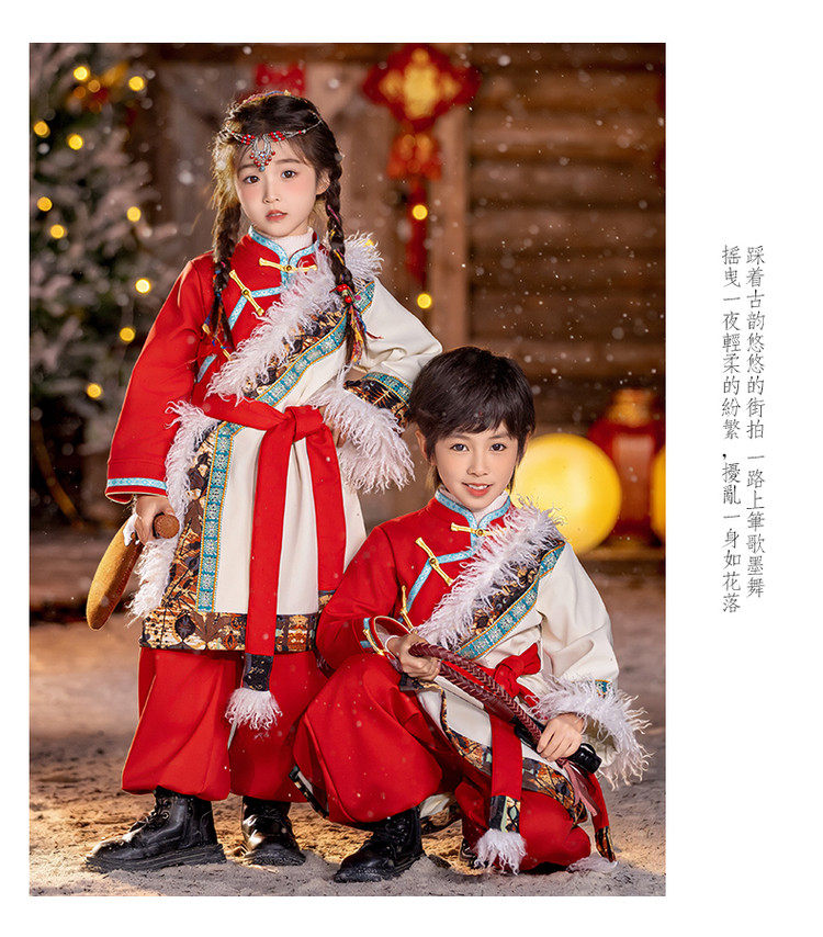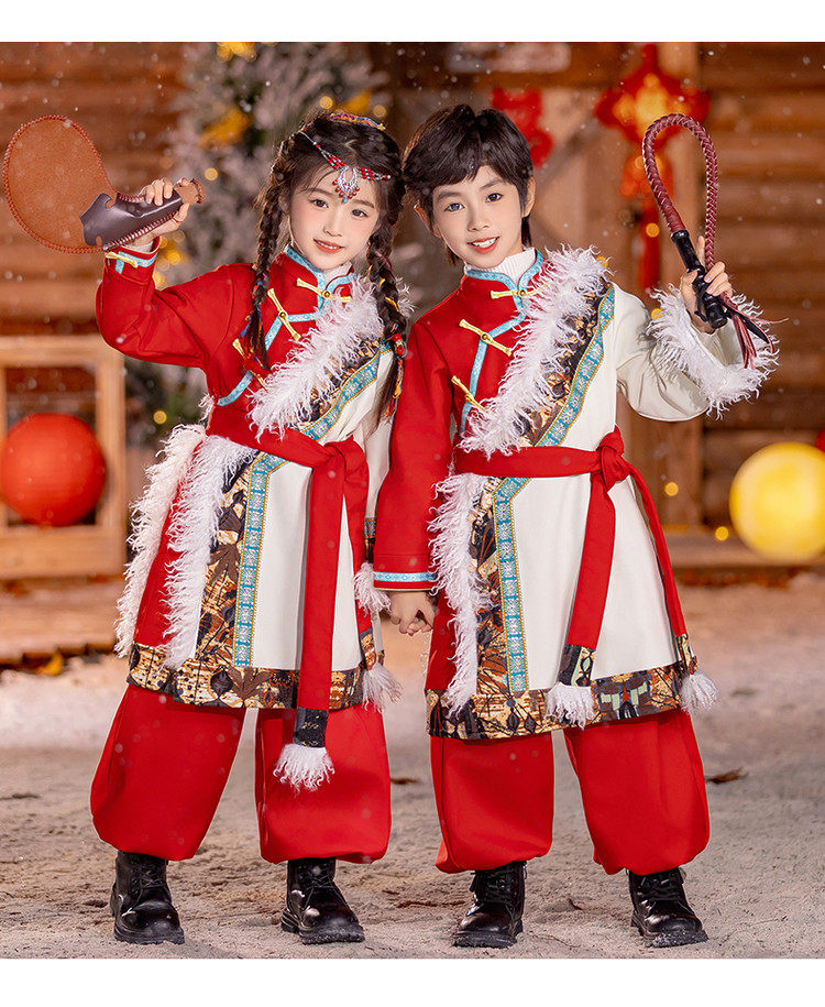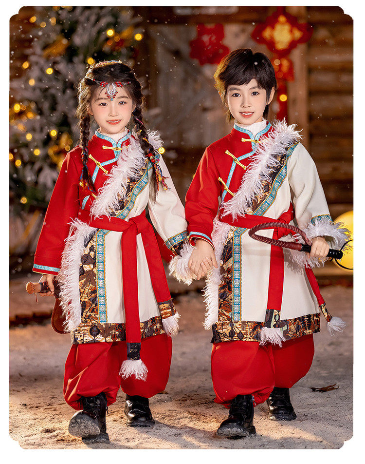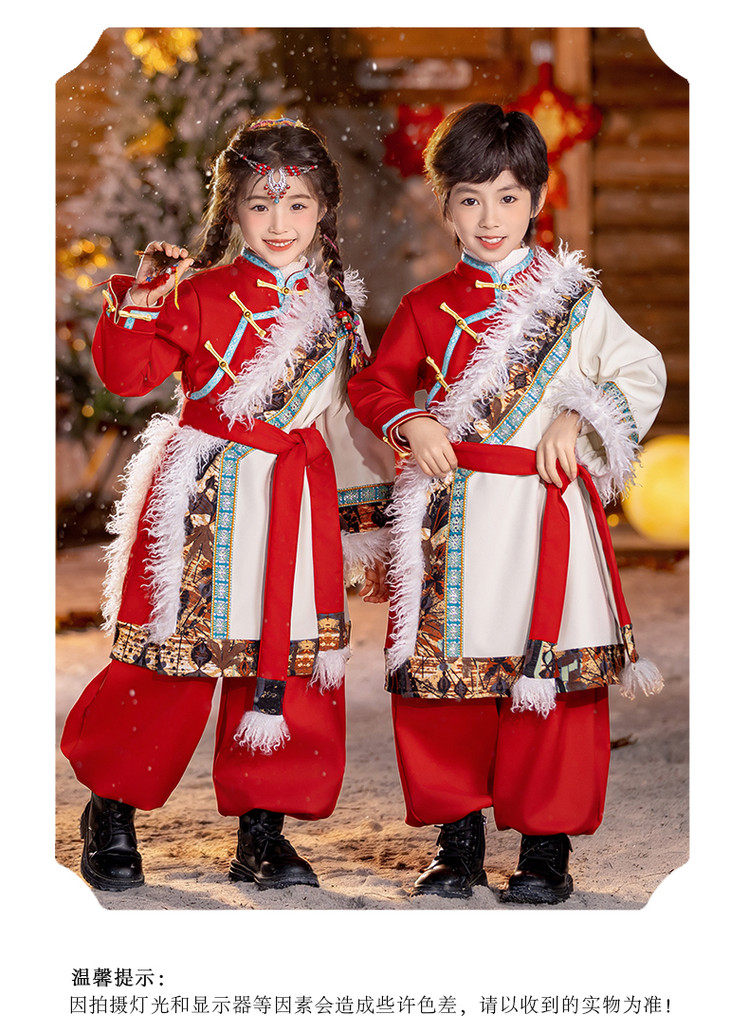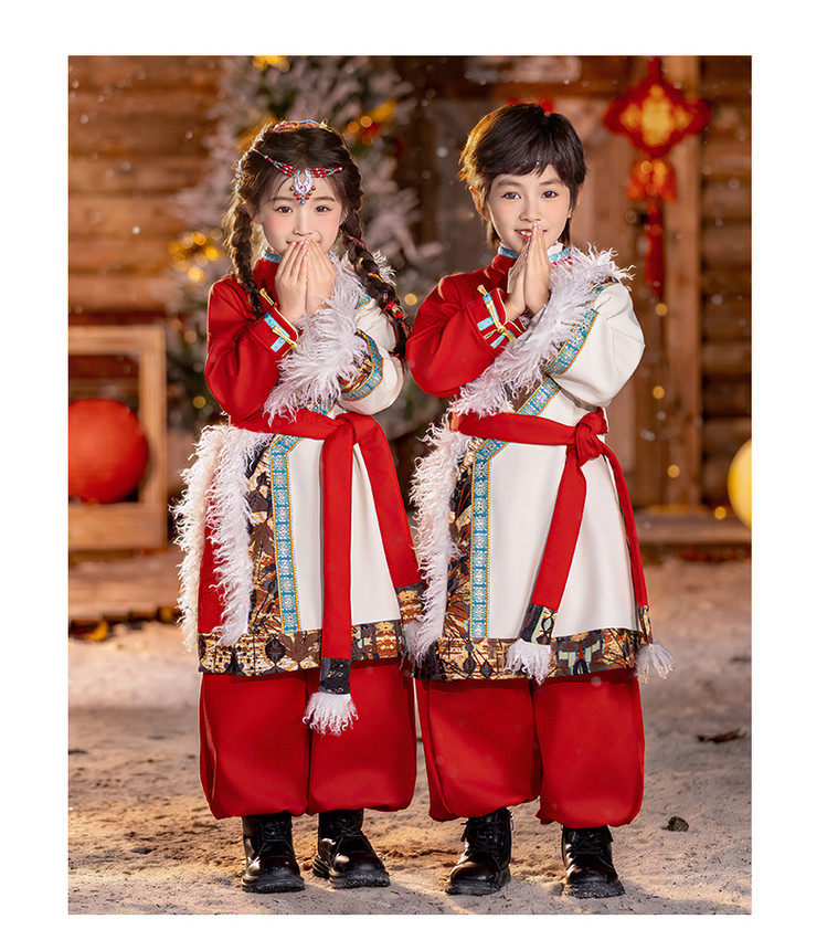 Children's Tibetan clothing, autumn and winter thick velvet boys' ethnic style Mongolian dance costumes girls' Tibetan robes