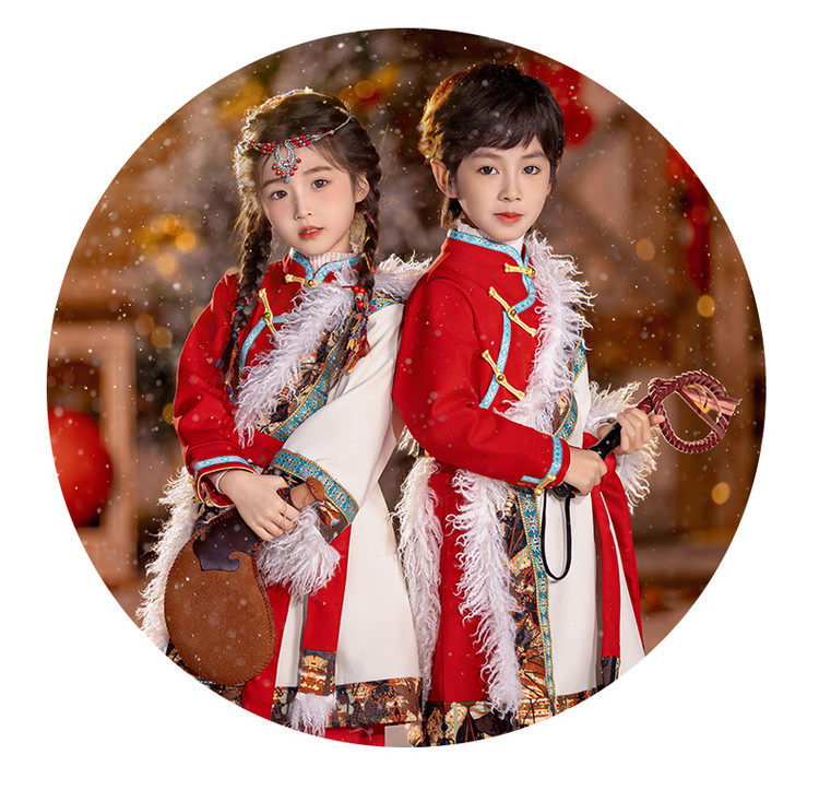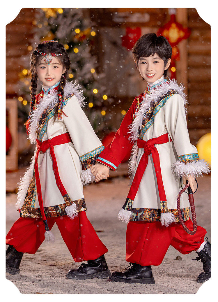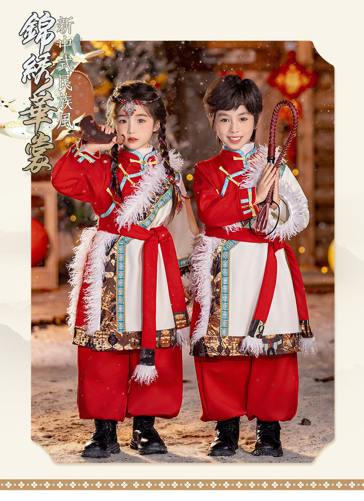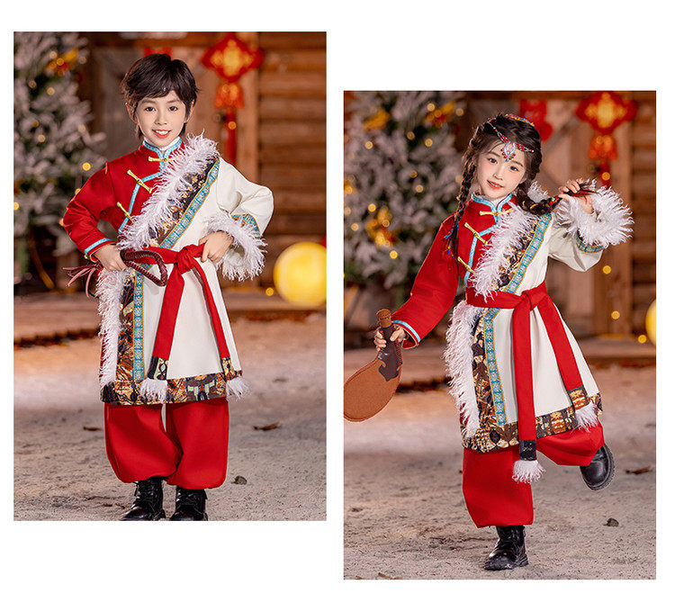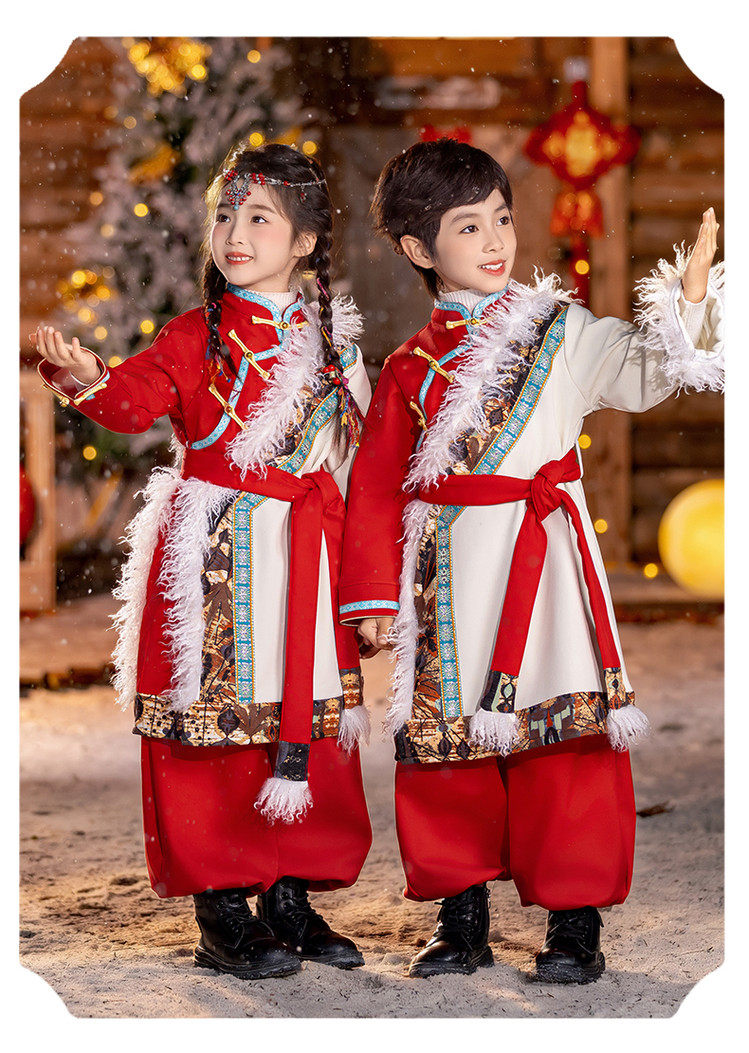 Children's Tibetan clothing, autumn and winter thick velvet boys' ethnic style Mongolian dance costumes girls' Tibetan robes