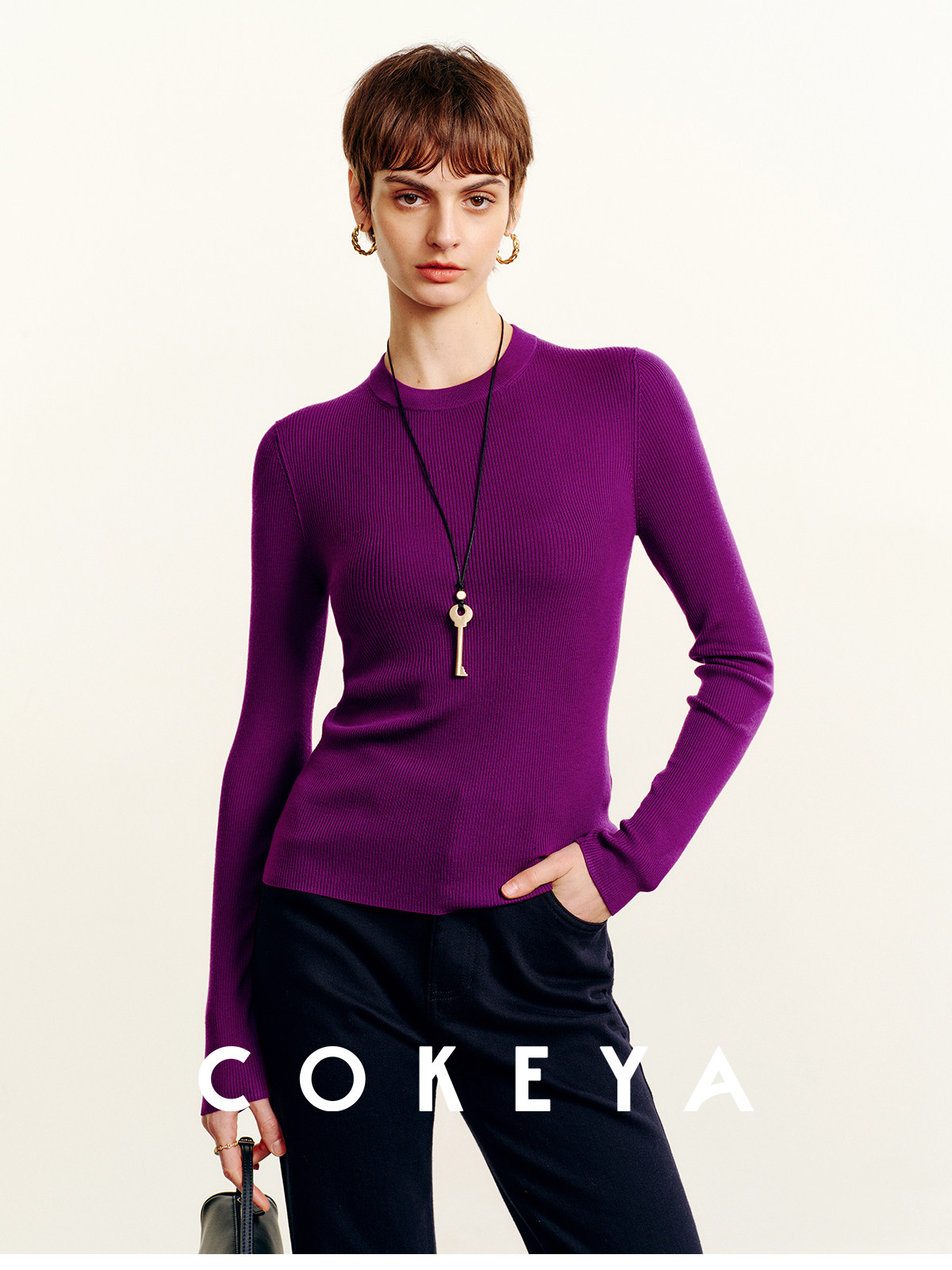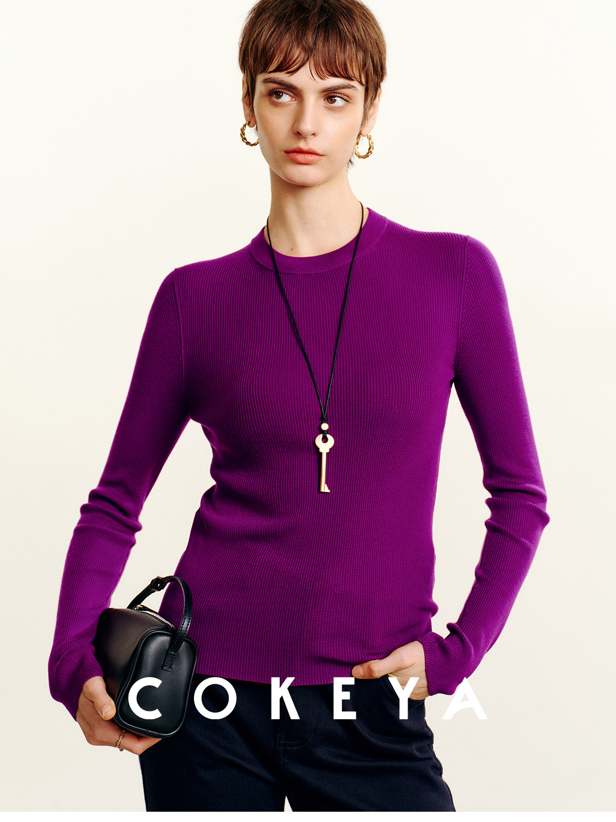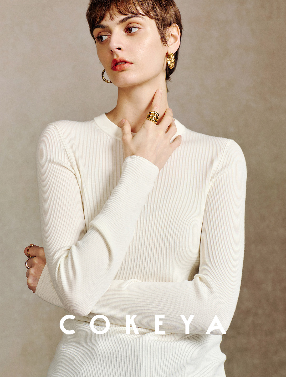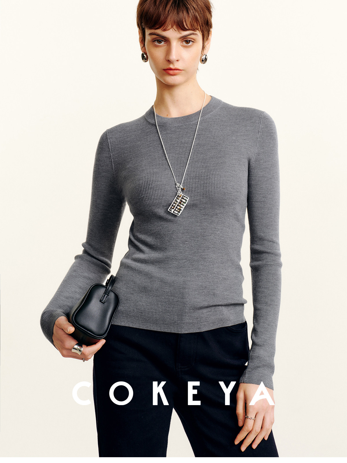 Cokeya/Shop's Signature Pure~13.5Μm Diamond Wool Thickened Round Neck Long Sleeve Knitted Base Shirt for Women Spring Season