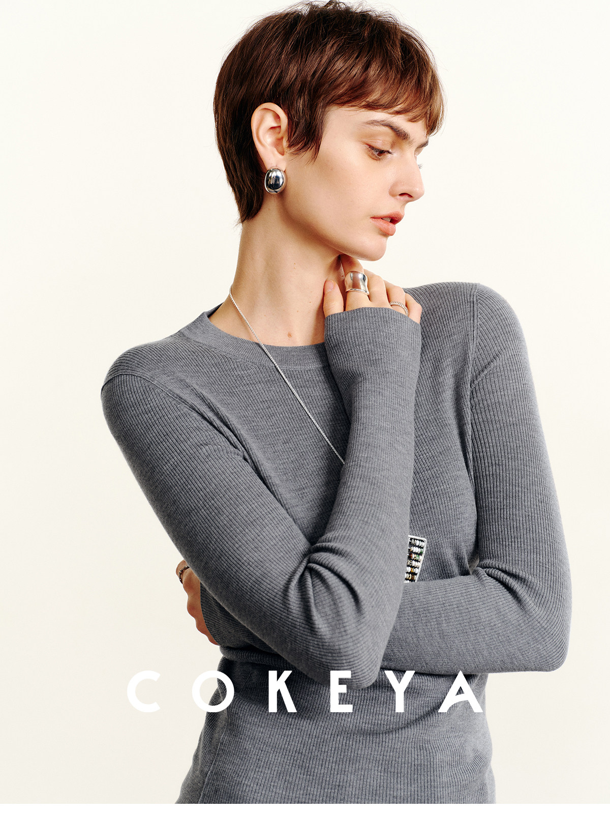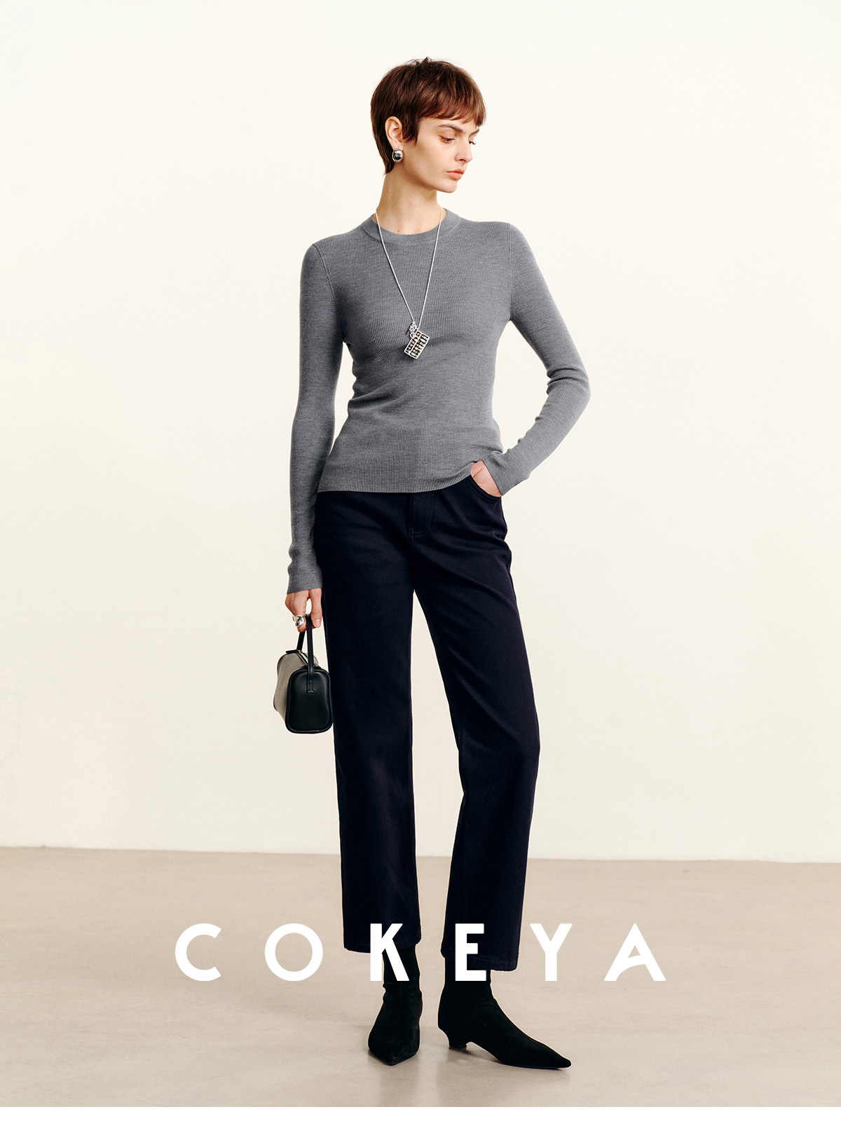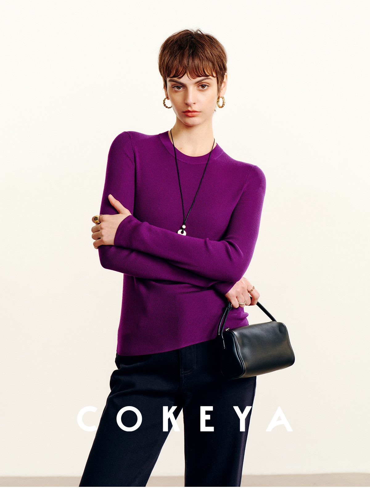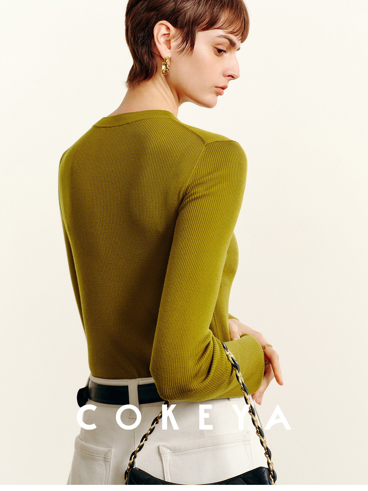 Cokeya/Shop's Signature Pure~13.5Μm Diamond Wool Thickened Round Neck Long Sleeve Knitted Base Shirt for Women Spring Season