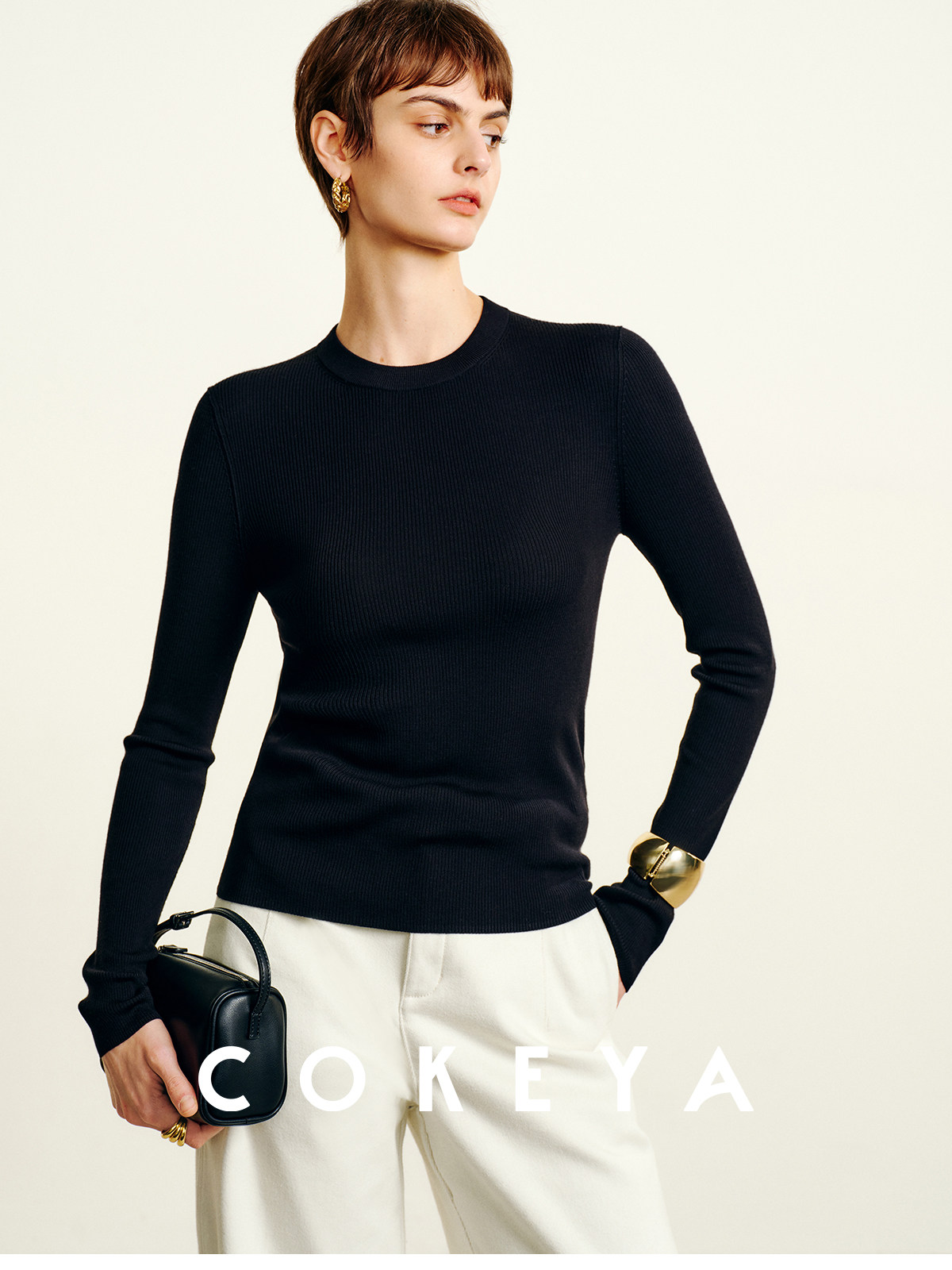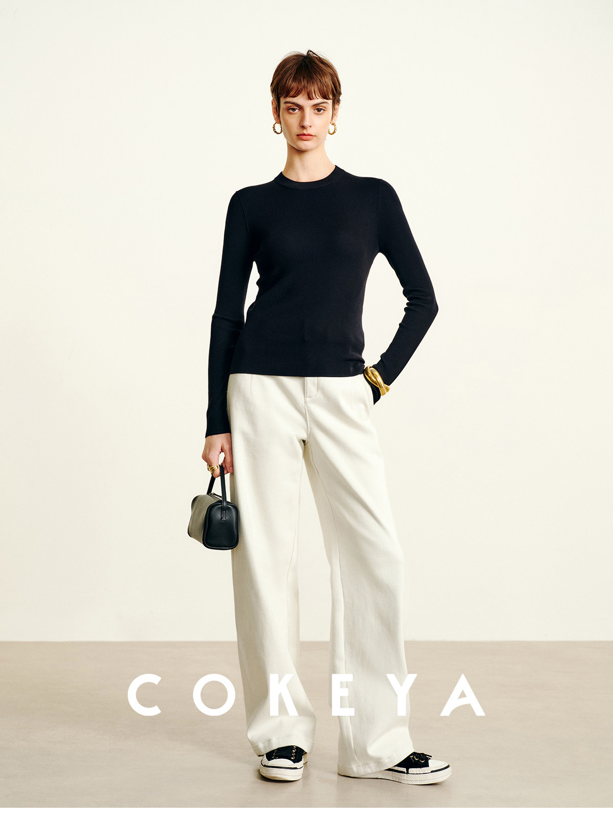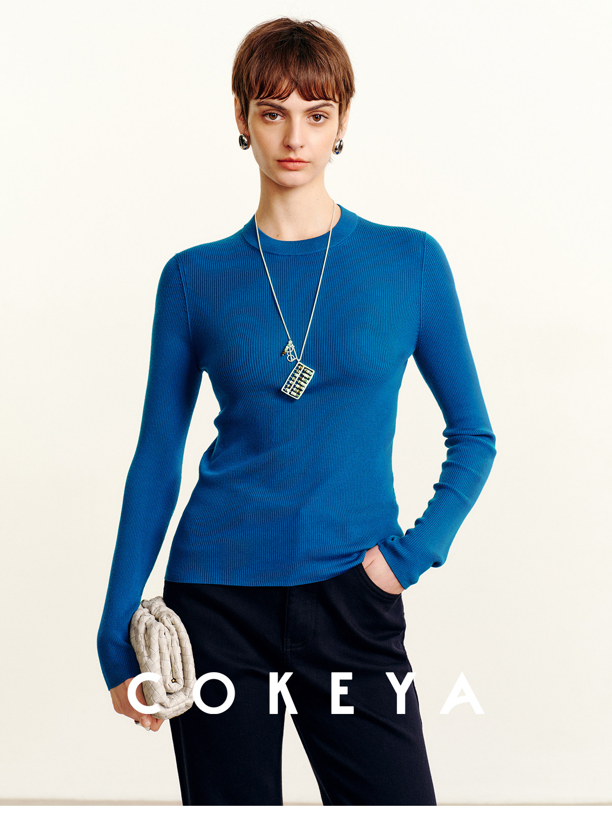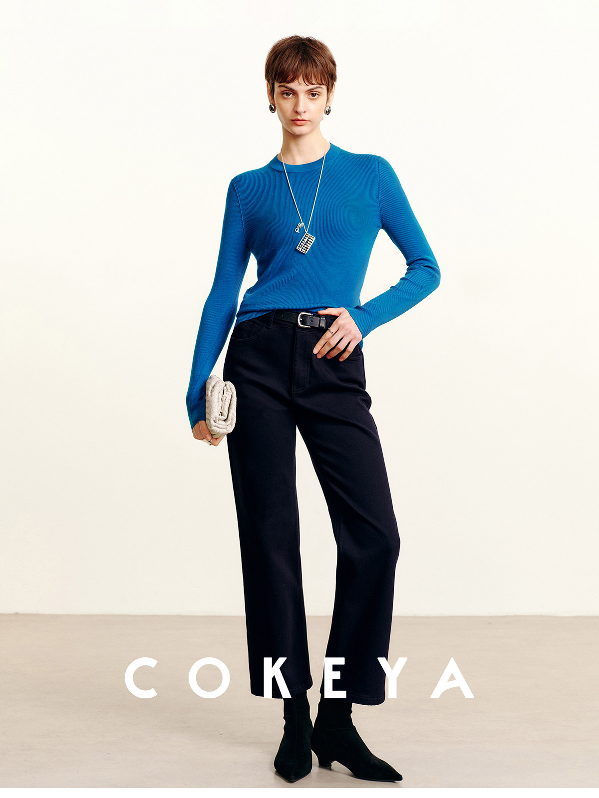 Cokeya/Shop's Signature Pure~13.5Μm Diamond Wool Thickened Round Neck Long Sleeve Knitted Base Shirt for Women Spring Season
