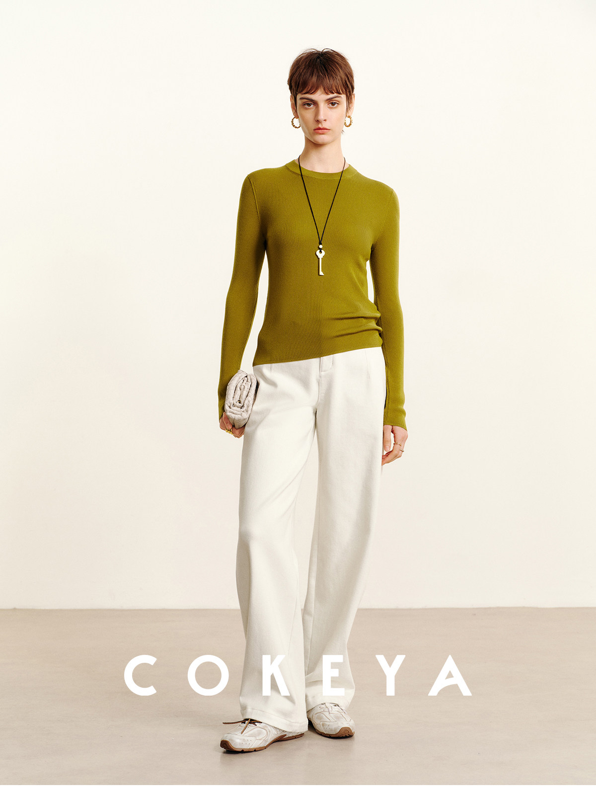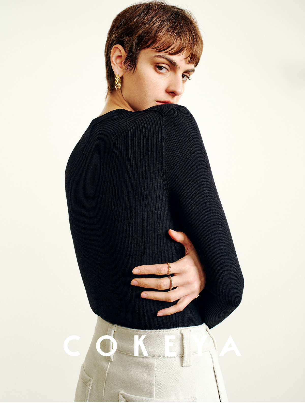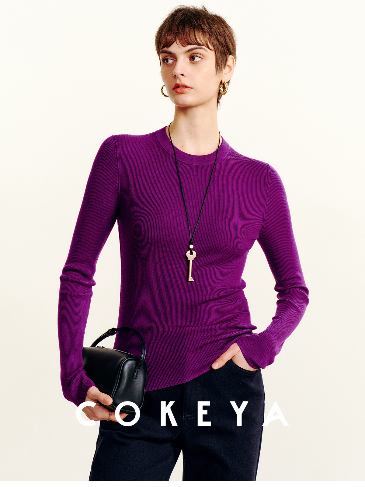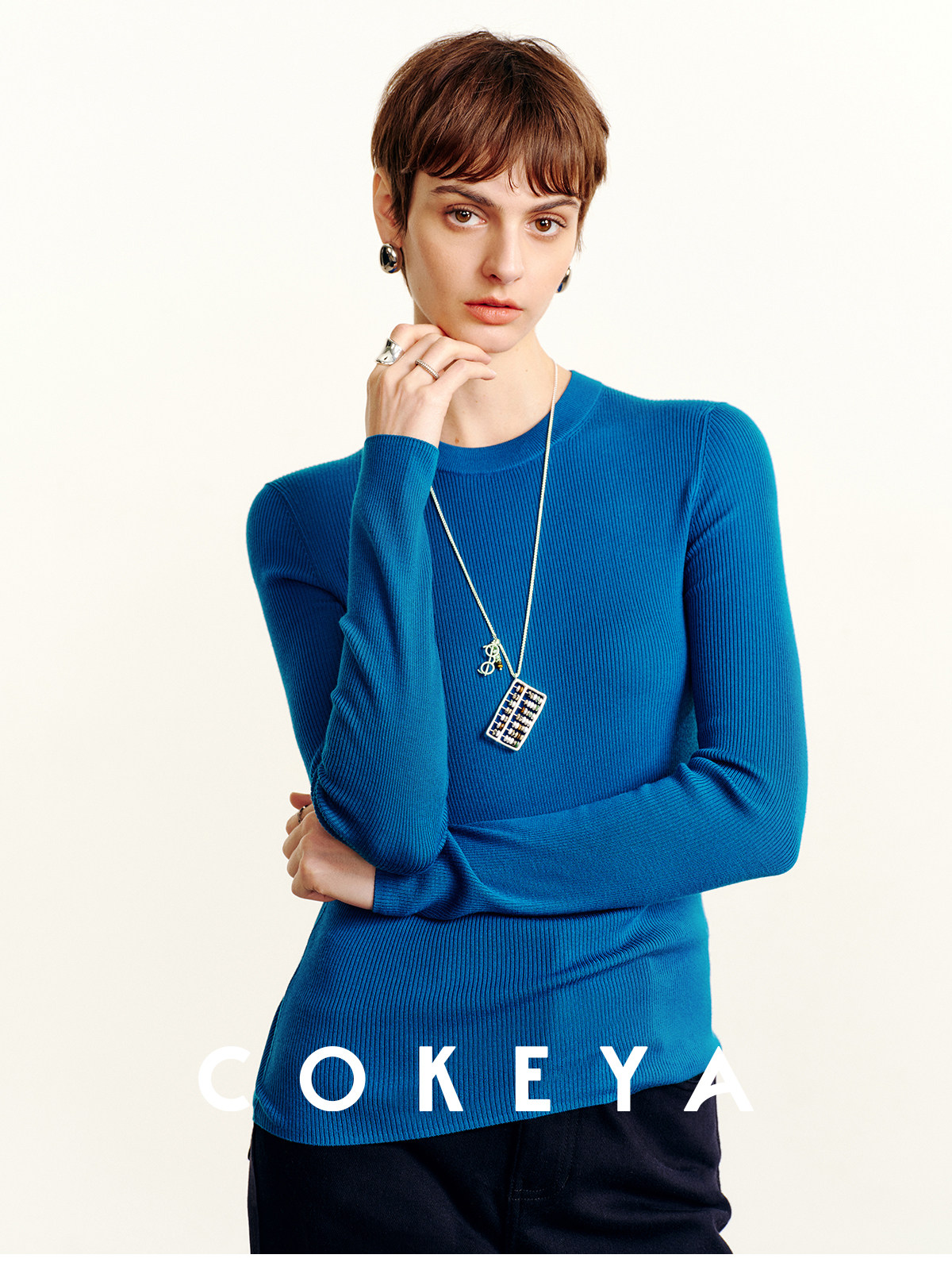 Cokeya/Shop's Signature Pure~13.5Μm Diamond Wool Thickened Round Neck Long Sleeve Knitted Base Shirt for Women Spring Season