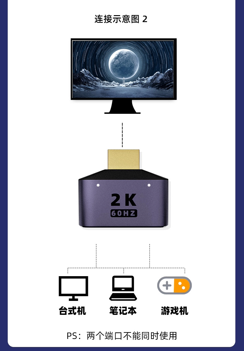 Color Classification HDMI 2-in-1 Screen Splitter★2K Hd★With Indicator Light,HDMI 2-in-1 Screen Splitter ★ 1080P Hd Picture Quality